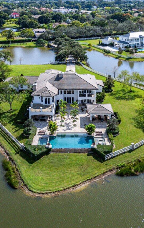 Set on 5.23 acres within an exclusive gated community of just 78 homes, this exceptional estate offers breathtaking lakefront views and unparalleled privacy. Designed in a transitionally modern style, the residence makes a striking first impression with a grand two-story entryway, soaring ceilings, and floor-to-ceiling glass windows that flood the interiors with natural light.Perfect for entertaining, the expansive outdoor oasis features a covered lanai, summer kitchen, fire pit, and a stunning infinity-edge pool overlooking the serene lake. Additional highlights include a five-car garage complete with workspace and full bath, as well as a dumbwaiter for added convenience. Offering both elegance and seclusion, this estate is a true sanctuary for discerning homeowners.