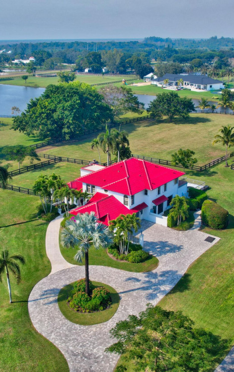 Discover unparalleled luxury in this breathtaking estate, nestled within an exclusive 24 hr. man gated community on 5 pristine acres. Offering panoramic lake views. This magnificent residence is a masterpiece of elegance and tranquility. Designed for both refined living and equestrian pursuits, the property features a beautifully appointed newly built 2700 SF CBS hurricane rated barn, ideal for horse or versatile use. The estate seamlessly blends timeless sophistication with modern comforts, boasting expansive living spaces, high-end finishes and outdoors areas perfect for entertaining. Downstairs office with 1/2 bath. A rare opportunity to own a sanctuary where luxury meets nature, just minutes from the Boca Raton Mall, fine dinning restaurants, top rated golf courses and AAA schools