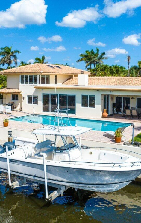 Welcome to your tropical waterfront paradise with something for everyone. Fish or boat your day away from this fabulous waterfront home with 90' of seawall and a 10K+ pound lift. Enjoy your huge 40ft+ heated lap pool year round with its southern exposure offered all day or just watch marine life from your private tropical backyard to the privacy of your living room. A wide-open floor plan that is ideal for entertaining with modern stone flooring, impact windows and wood burning fireplace. Huge master suite upstairs with his & her closets/vanities, Jacuzzi tub and dual shower- separate sleeping quarters with separate office. Enjoy all the local shops & restaurants that Delray Beach has to offer. Only a mile to the beach & 5 minute drive to Delray's famed Atlantic Avenue. This home is fun..