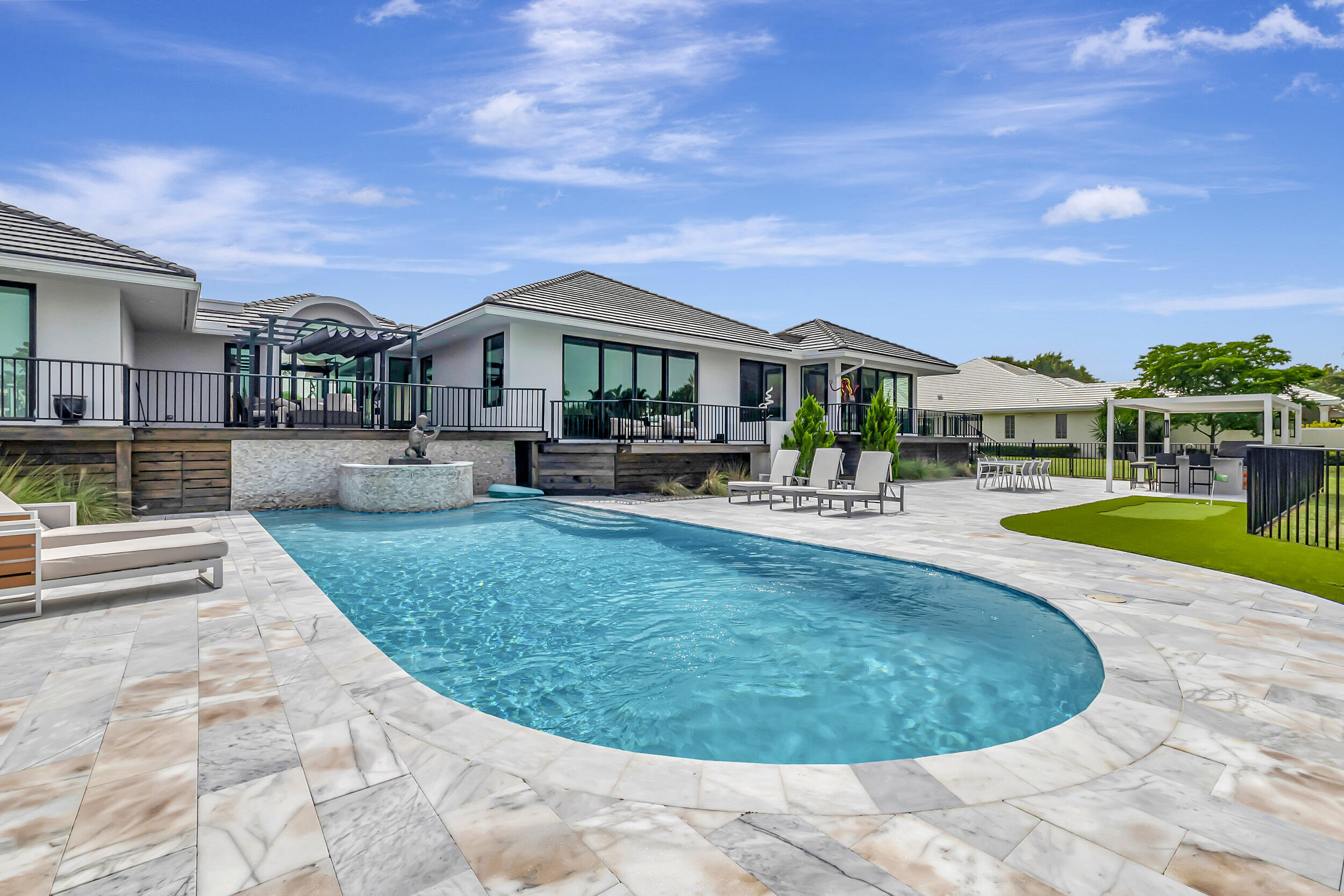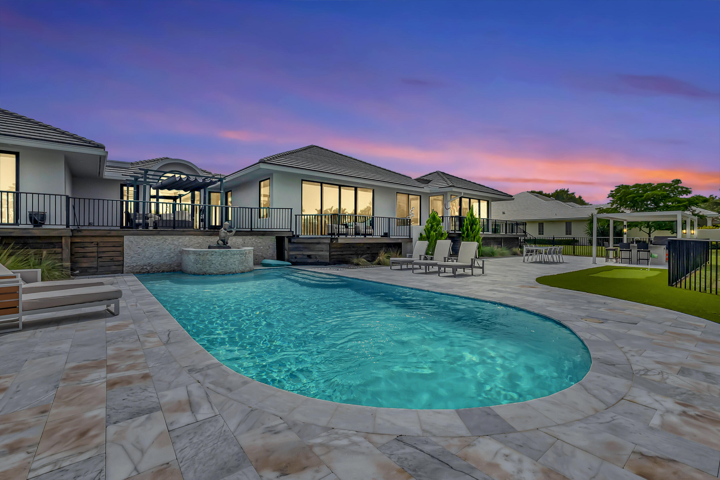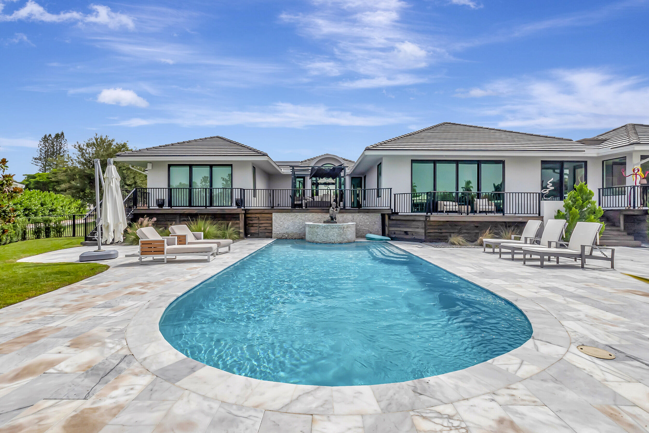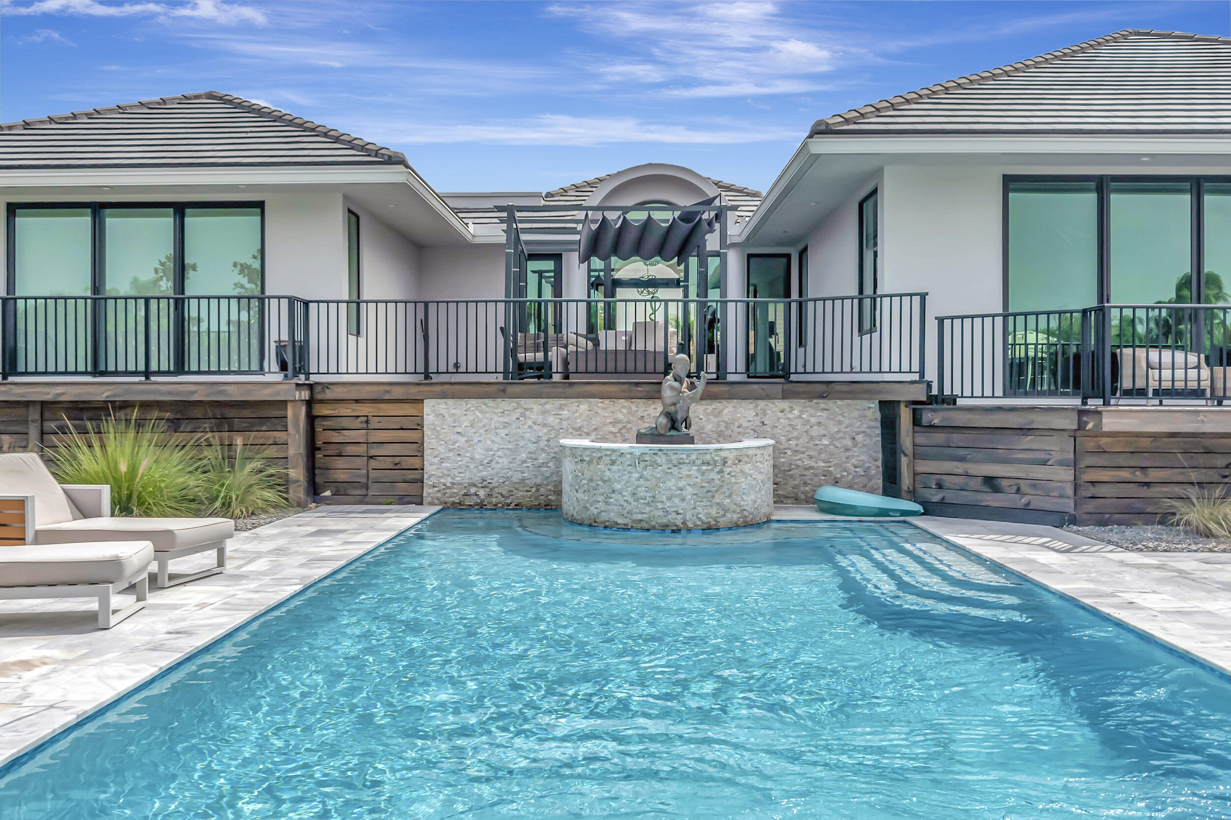 Welcome to Seagate Golf at The Hamlet, Delray Beach's premier gated Country Club where Membership is available BUT NOT MANDATORY! Proudly presenting this modernized and renovated Luxury Haven Retreat - a masterpiece of opulence and refinement nestled amidst the lush greenery. Elevated on concrete pilings, you'll enjoy panoramic views of the breathtaking landscape, lake with fountain and 8th hole! As you pass through the grand entrance, a sense of awe washes over you, as the magnificent architecture and meticulous craftsmanship reveal themselves. This luxurious estate boasts a sprawling floor plan, encompassing over 6,500 total square feet, designed to offer the utmost comfort and extravagance.
