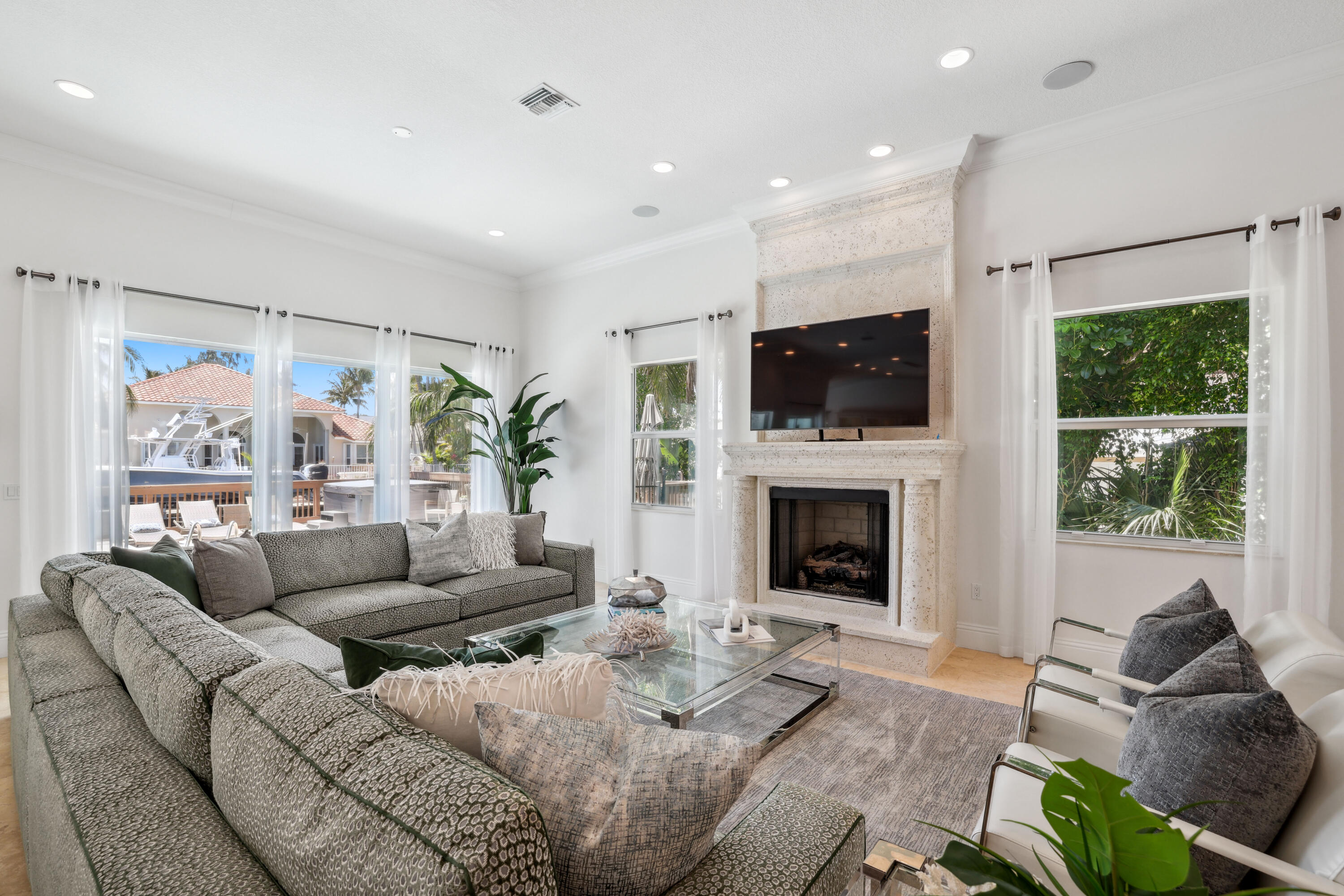 Step into coastal luxury with this beautifully remodeled waterfront home, offering 75 feet of frontage, a private dock, and just 300 steps to the beach. Featuring 6 bedrooms plus a dedicated office, the flexible layout is ideal for work-from-home living while providing privacy and comfort for family and guests. Cruise straight to the ocean with no fixed bridges, or take a short boat ride to the vibrant dining and shops along Atlantic Avenue and Linton Boulevard. The backyard's southern exposure fills the heated saltwater pool and outdoor entertaining areas with all-day sun, enhanced by Sonos speakers inside and out.
