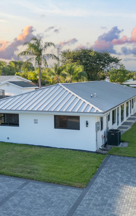 Welcome to a fully renovated 3 bed / 2 bath duplex-villa where modern luxury meets prime investment potential! Everything has been updated with permits - from the sleek, chef-inspired kitchen with quartz countertops and top-of-the-line appliances, to the impact windows, metal roof, brand-new AC units, ductwork, insulation, soundproofing, and completely new plumbing throughout. Whether you're an investor or an end-user, this property checks every box. Live in one unit and rent the other for passive income, create a stylish multi-generational setup with built-in privacy, or lease both sides as high-end rentals in one of South Florida's hottest markets.