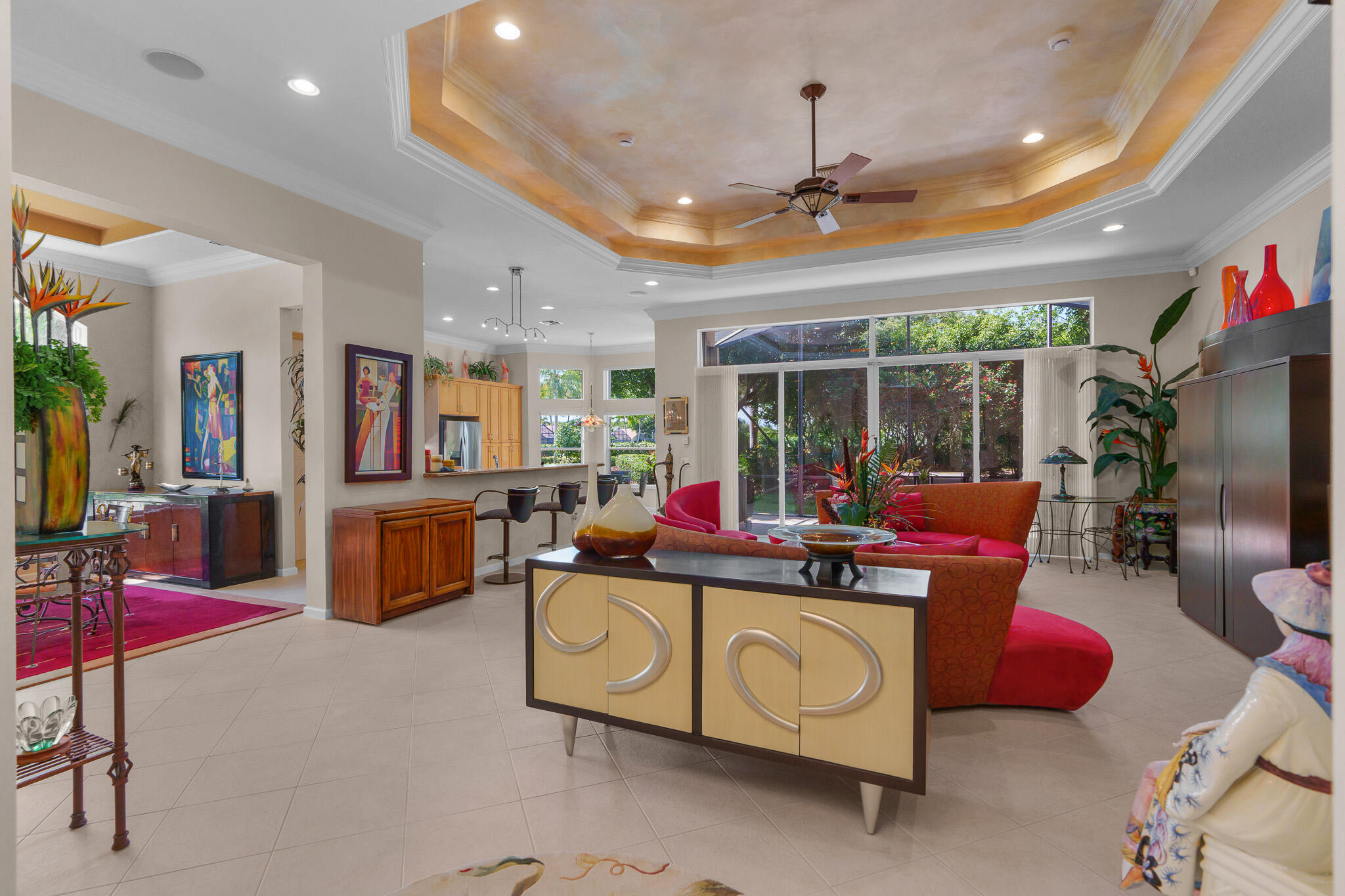 LARGE 2735 SQ FT UNDER AIR-MOVE IN READY, IMMACULATE RARELY AVAILABLE 3 BEDROOM/2.1 BATHROOM PAMPLONA MODEL. THE DOUBLE DOORS LEAD TO A SPACIOUS GREAT ROOM, CROWN MOLDING, TRAY CEILINGS. THE FLOW OF THIS HOME IS PERFECT FOR ENTERTAINING WITH EAT-IN KITCHEN & LARGE DINING ROOM, SOLID WOOD CABINETS, GRANITE COUNTER TOPS, STAINLESS STEEL APPLIANCES. LARGE PRIMARY BEDROOM WITH TRAY CEILING. PRIMARY BATH HAS 2 VANITIES, SEPARATE TUB AND SHOWER. 55+ VALENCIA PALMS IS A VERY ACTIVE ADULT COMMUNMITY. GORGEOUS CLUBHOUSE, FITNESS CENTER, RESORT POOLS, RESISTANCE POOL, BILLIARD ROOM, CAFE, GRAND BALLROOM, SOCIAL EVENTS, CLUB, SHOWS, PICKELBALL, TENNIS, BOCCE. MAINTENANCE FEE INCLUDES CAFE CARD, CABLE, INTERNET, EXTERIOR HOUSE PAINTING, ALARM, LAWN AND TREE CARE