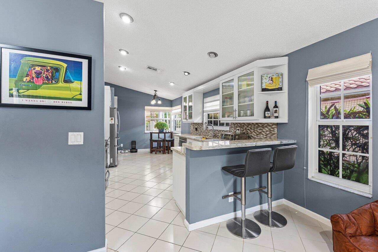 Centrally located in Delray Beach, this 3BD/2BA home with a 2-car garage sits in the all-ages, pet-friendly gated community of Bel Aire. Large footprint and functional split bedroom floorplan with over 2000 sq ft of living space Enjoy vaulted ceilings and a bright, open layout leading to a screened patio. Upgrades include a beautiful kitchen, 2020 AC, impact windows/doors throughout, hurricane-rated garage door, and sleek white shaker cabinets, granite counters, and stainless appliances. The primary suite features wood floors and a renovated bath, while secondary bedrooms offer high-end vinyl. Tile floors run throughout the main living spaces. Bel Aire offers a clubhouse, pool, tennis, gym, and more!