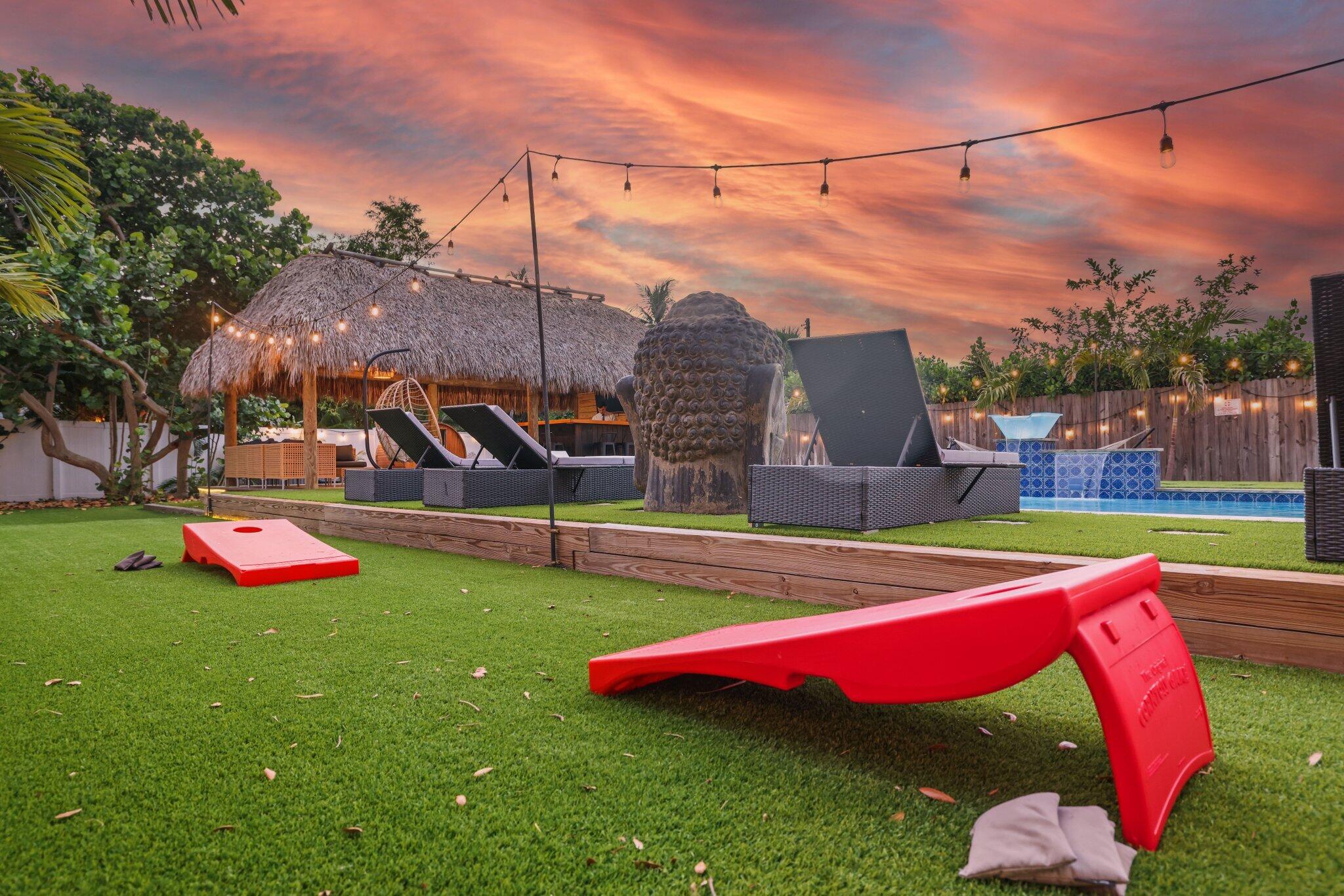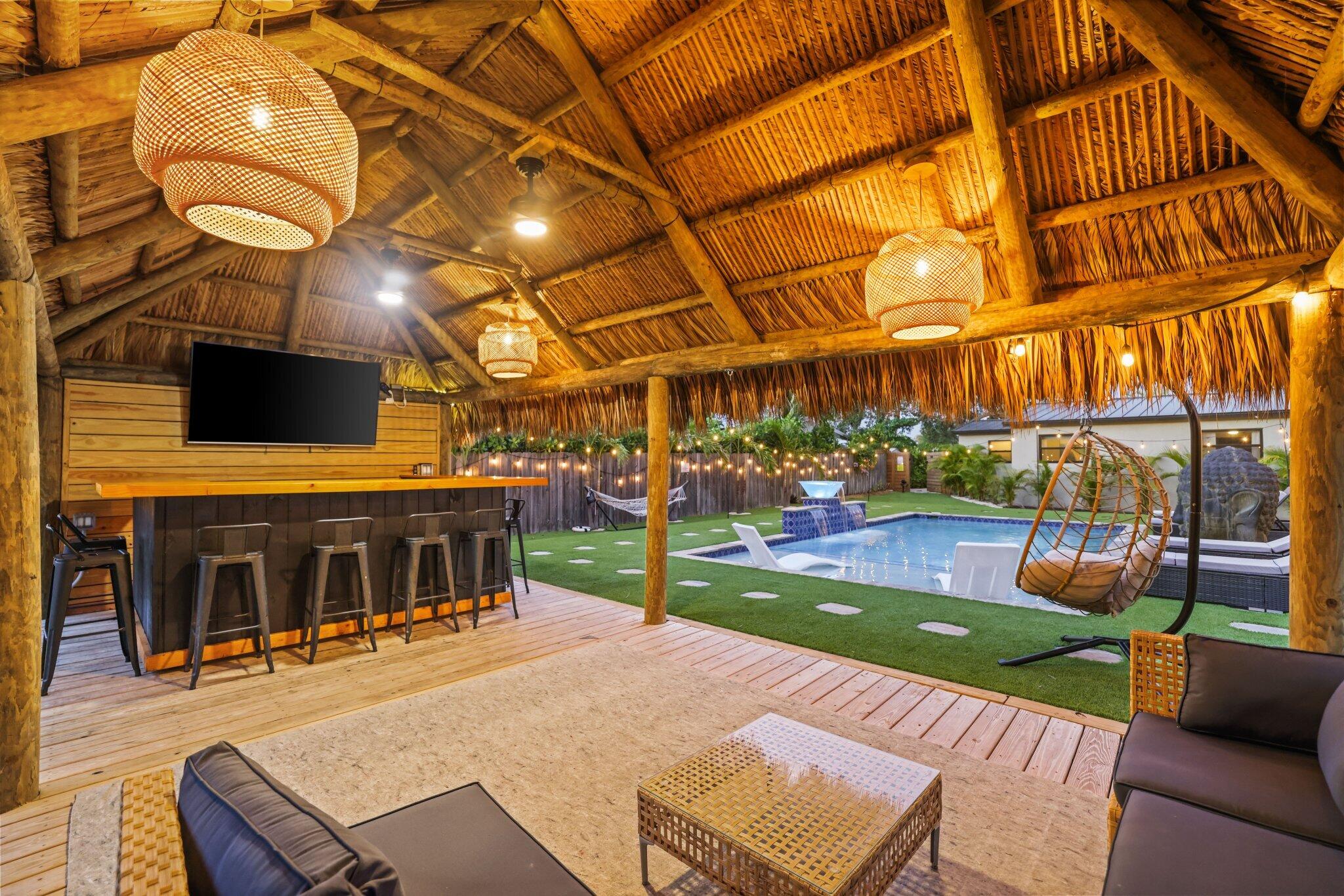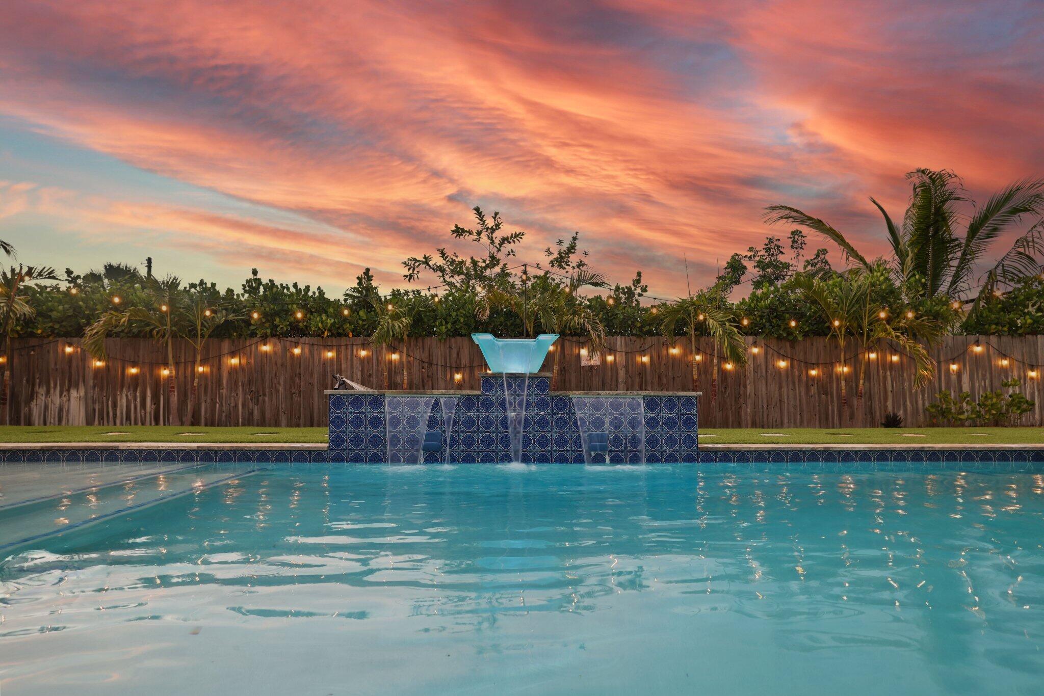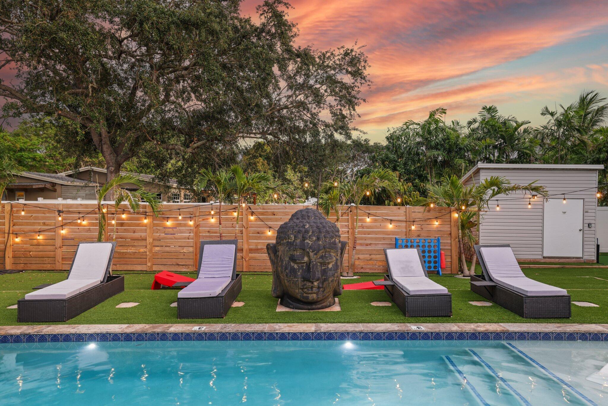Introducing a rare opportunity to own a resort-style retreat in the heart of downtown Delray Beach. This stunning 3-bedroom home is perfectly positioned in one of South Florida's most vibrant and desirable neighborhoods. Set on a spacious 0.26-acre lot, the property offers both luxurious living and exceptional investment potential. Step into a tropical backyard oasis designed for relaxation and entertainment. Enjoy a sparkling pool, soothing hot tub, and private sauna--creating the ultimate outdoor escape. The lushly landscaped yard features a tiki hut with a built-in BBQ grill and ample outdoor seating, ideal for hosting gatherings or enjoying a quiet evening under the stars. Inside, the home utilizes a thoughtfully designed layout with a bright, functional kitchen,