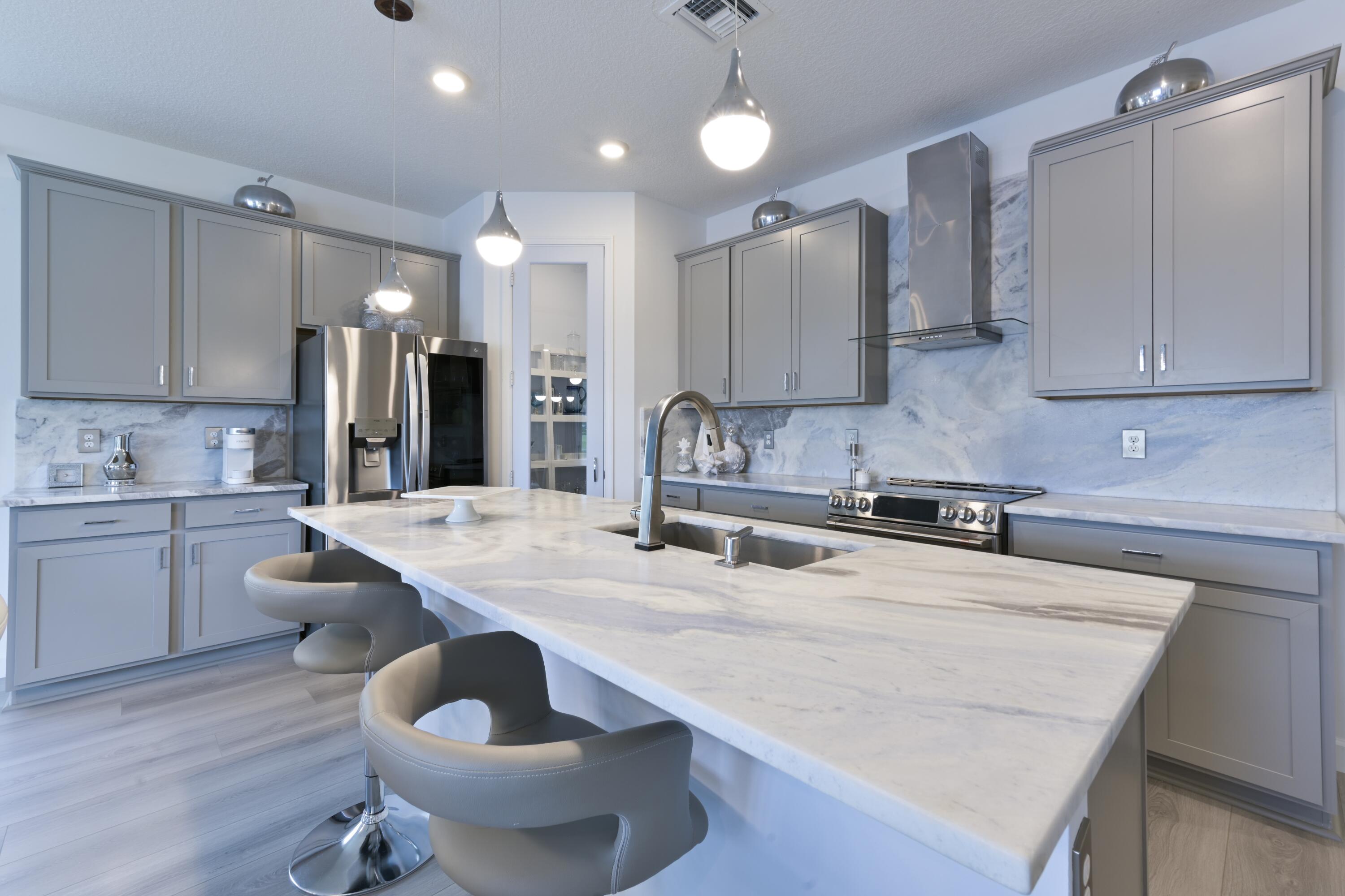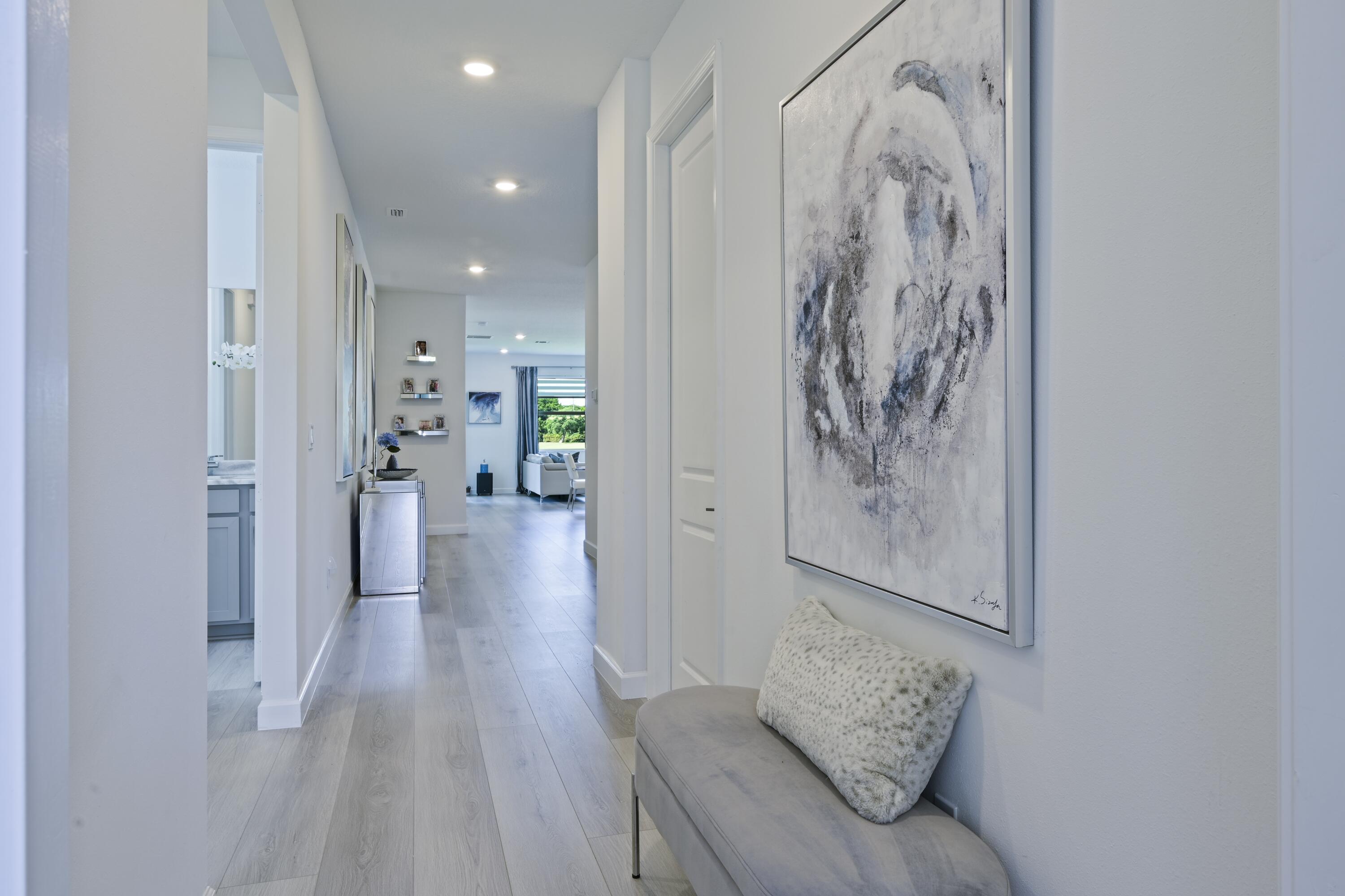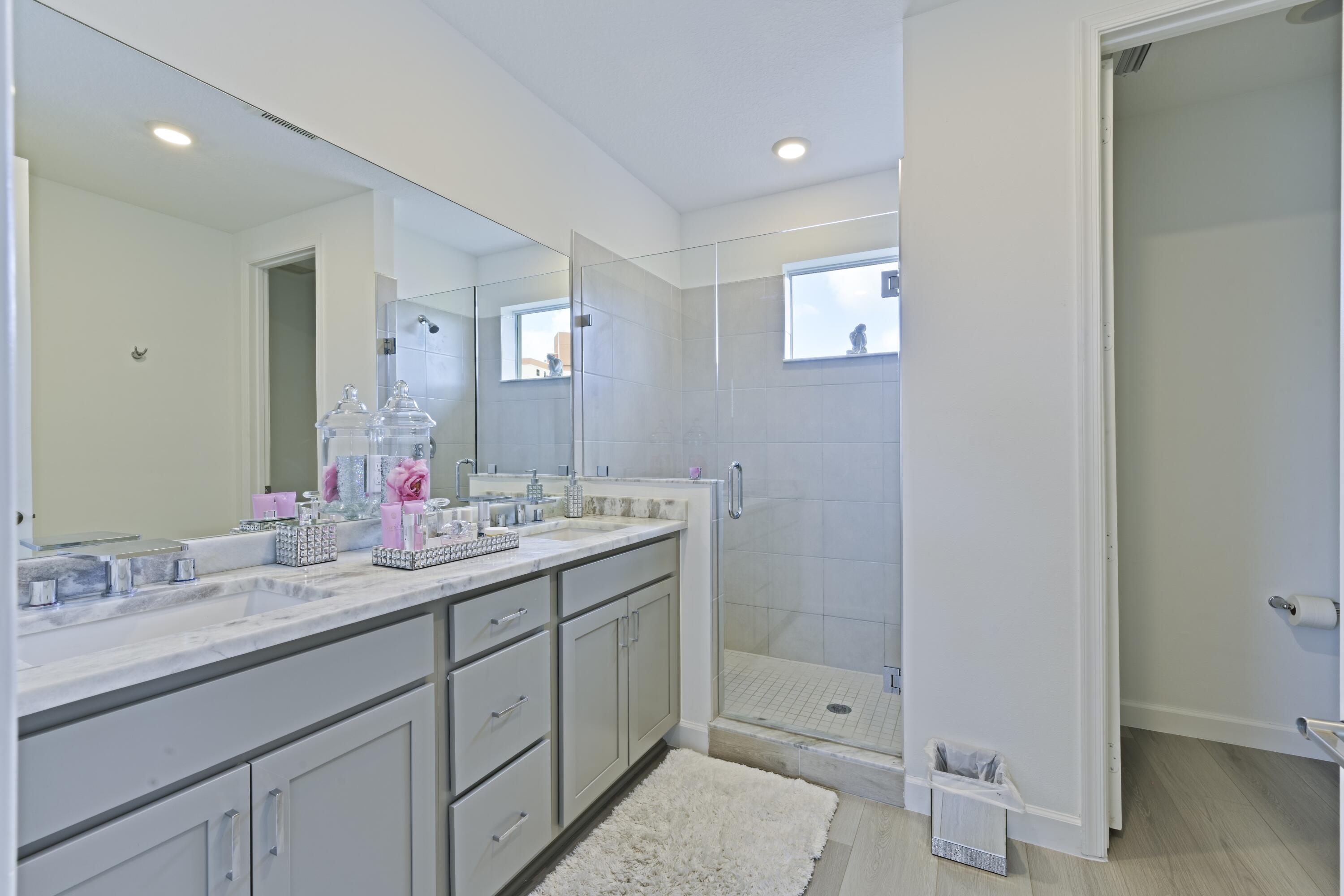 Stunning, move-in ready home with long lake views in the 55+ community of Avalon Trails in Delray Beach. Features include upgraded stainless-steel appliances with Cafe induction range, lighting, bathroom fixtures, marble kitchen & bathroom countertops with backsplashes. Walking distance to synagogues & houses of worship. Brand-new driftwood grey plank flooring throughout, including 2nd floor media lounge. Enjoy an open-concept layout filled with natural light and $3,000+ in professional landscaping.Designed for comfort and style. Community amenities: clubhouse, fitness center, resort-style pool, pickleball, trails, and more. Minutes from downtown Delray, shopping, dining, and the beach.