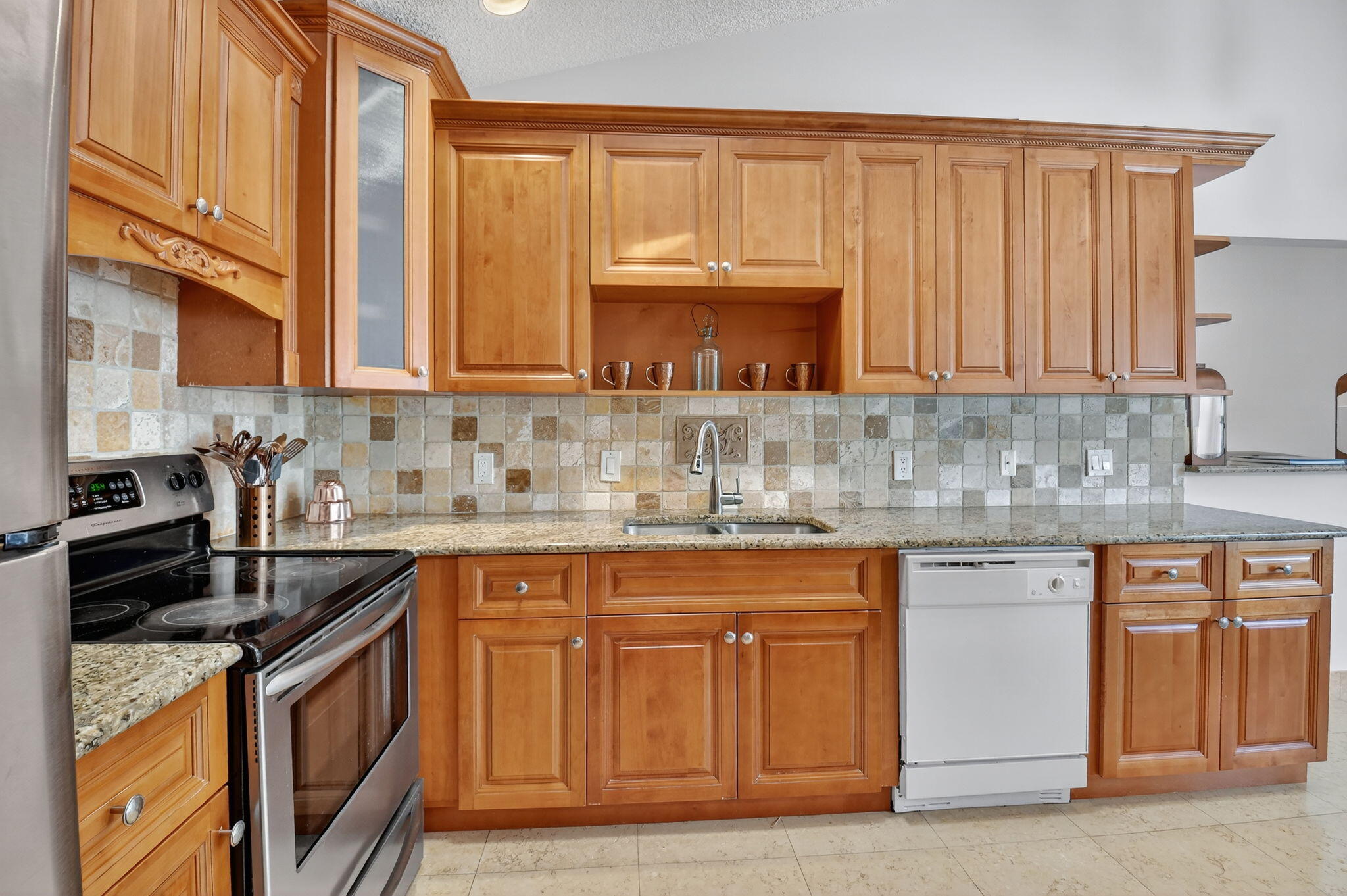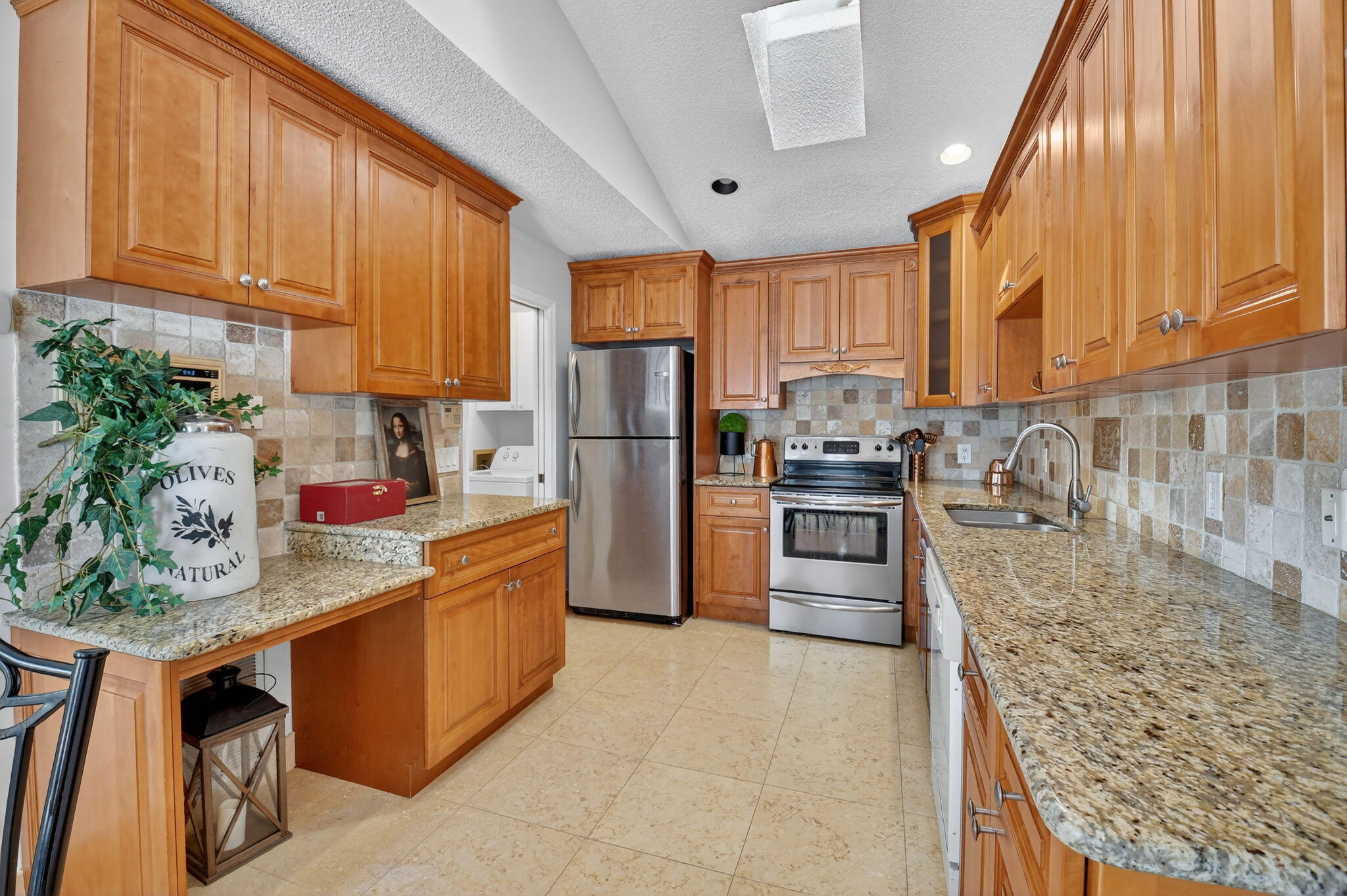 Beautifully updated 3BR, 2BA lakefront home with long water views and a contemporary design. Features include an open-concept layout, vaulted ceilings, enclosed patio, engineered wood flooring and Jerusalem marble floors, solid wood cabinets, granite countertops in kitchen and baths, SS appliances and a 2-car air conditioned garage. Enjoy water views from main living areas and the spacious primary suite. Just two homes from the clubhouse with resort-style amenities, like pool, pickleball and tennis, and minutes to shopping and vibrant downtown Delray Beach. Professionally landscaped and move-in ready--perfect for stylish, low-maintenance and low HOA Florida living. This not a 55+ community.