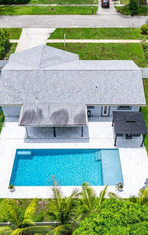 Meticulously re-imagined, designer-finished 2BR/2BA home just 5 minutes from vibrant Atlantic Ave's dining, shops, and beach. No HOA! Thoughtfully curated layout offers exceptional flow and generous room sizes, walk-in closet, smart and open kitchen with island and lots of counterspace, vegetable prep sink, and oversized pantry. Modern baths feature floor-to-ceiling tile with modern and attractive finishes. All-impact glass, 2021 roof, LED ceiling lighting, fully privatized backyard with PVC fencing, a new saltwater pool with sun shelf, marble patio, and covered outdoor space. Landscaped yard with gazebo and large shed make this a perfect outdoor entertainment destination. Garage features a professional epoxy floor, utility sink in laundry. All closets built out. Everything is newly done