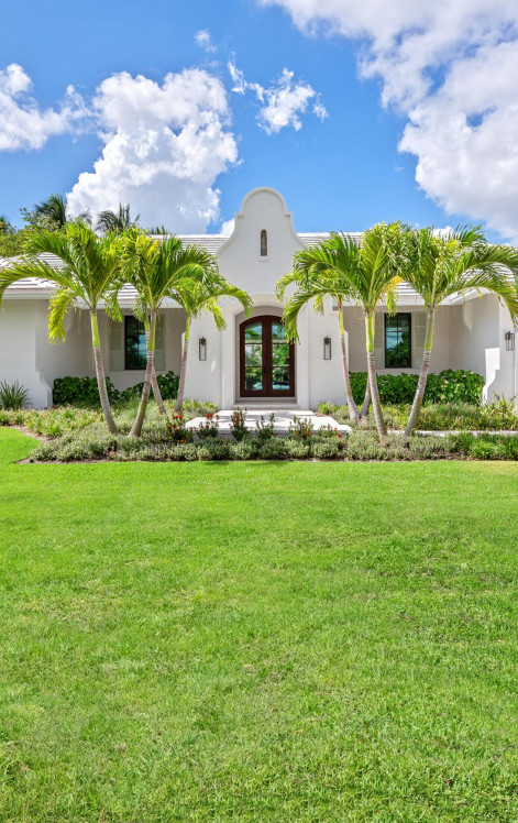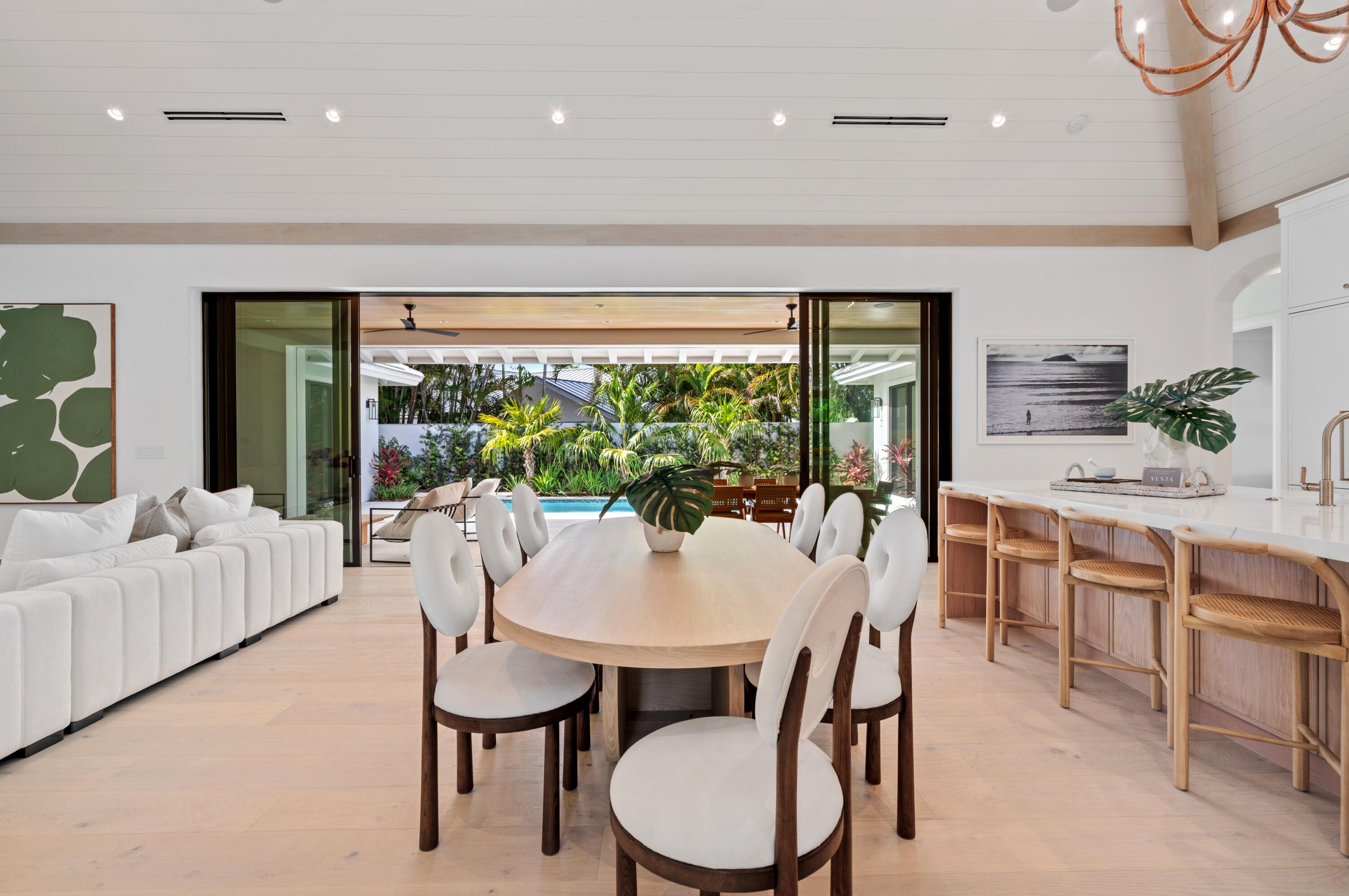On a prime corner lot in Delray Beach's coveted Lake Ida enclave, this chic 2025-built contemporary residence, designed by Darius Zubrowski, AIA, NCARBArchitect, offers an open floorplan great room, topped by a beamed vaulted ceiling, accessing the pool loggia and summer kitchen; four bedrooms with the primary bedroom opening to a private covered patio, a pocket office; and a cook-island kitchen with two-tone cabinetry, quartz counters and Thermador appliances
