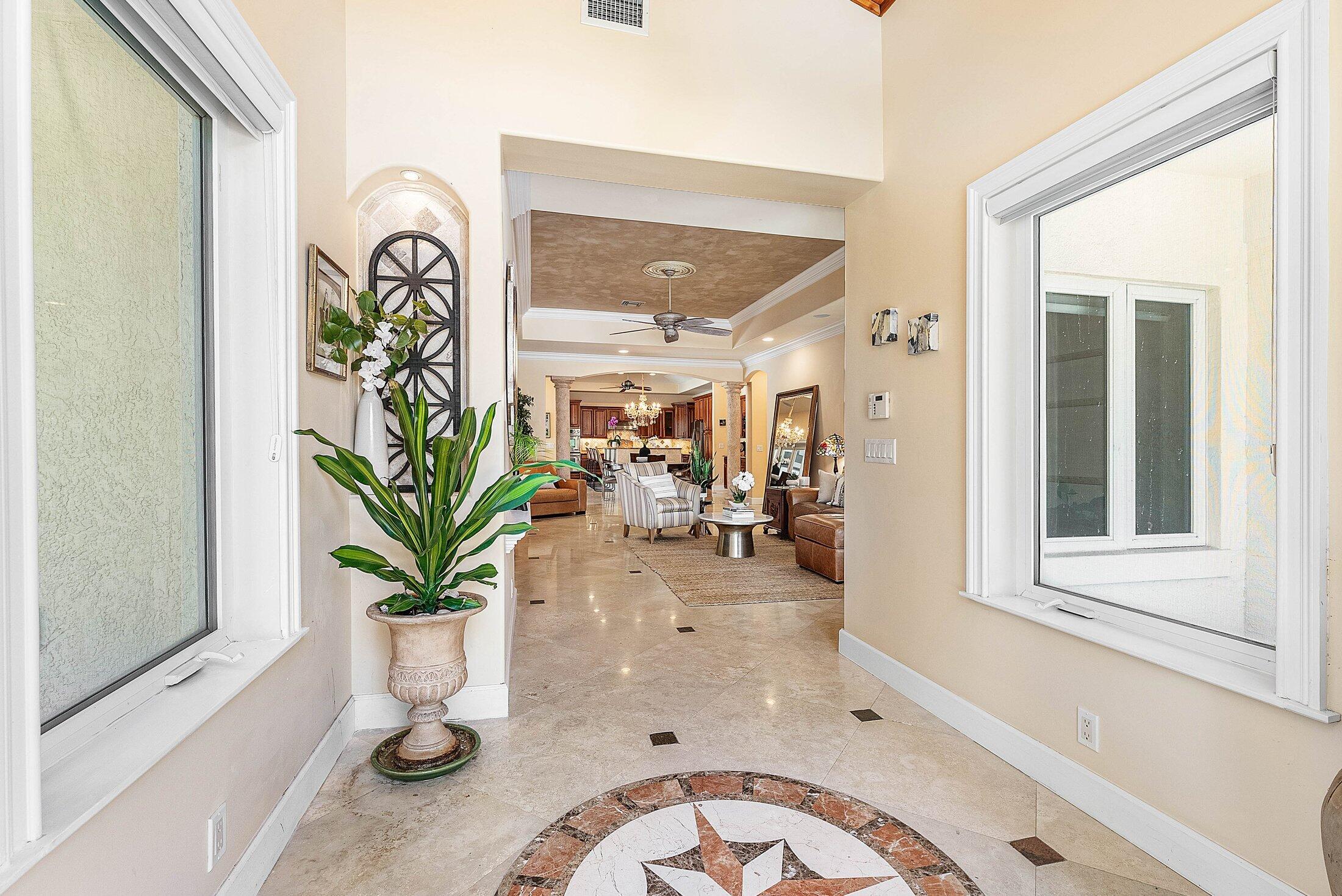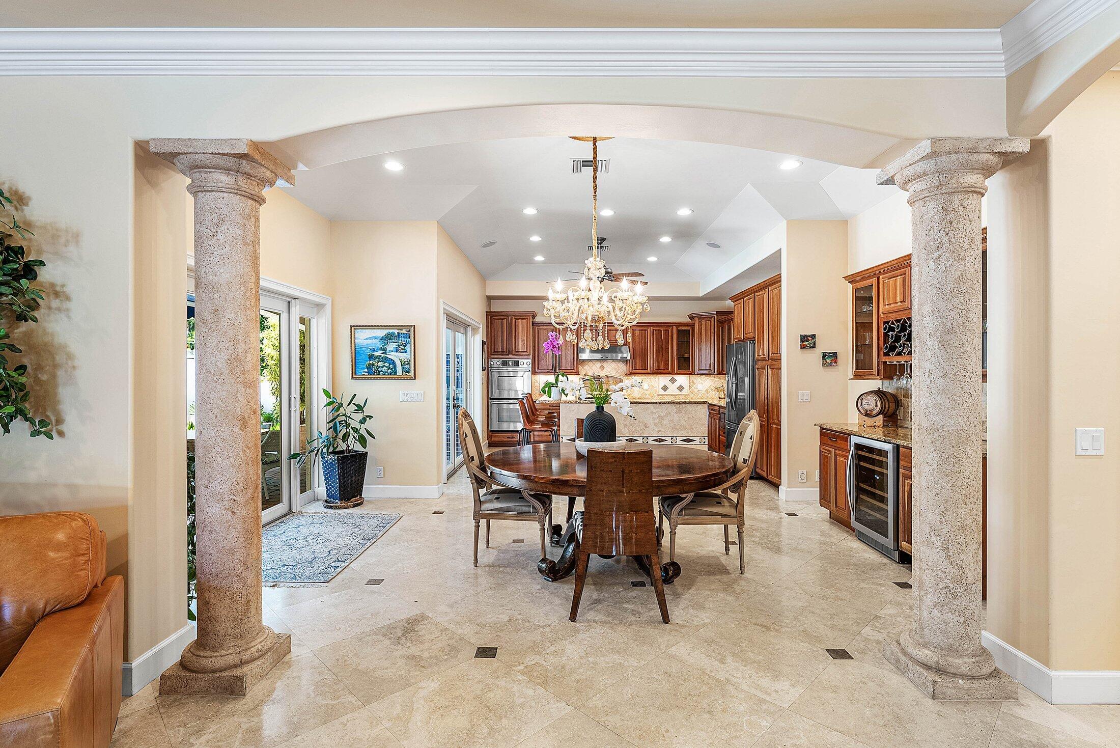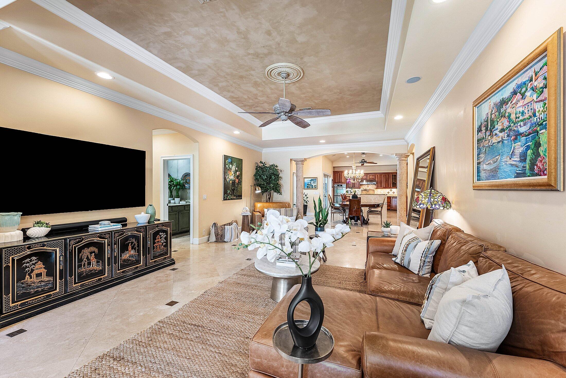 Exquisite 3BR/3BA custom home designed by a renowned local architect and built by its engineer-owner. Offering 2,206 SF under air (2,936 total) on a .21-acre lot, this property boasts PGT impact windows and doors, barrel tile roof, Kohler whole-house generator, two newer AC units with UV lighting, and no HOA.Interior highlights include 10-12 ft ceilings, 24x24 travertine floors, crown molding, coffered and tray ceilings, solid core doors, bar with wine cooler, central vac, and cedar-lined closets. The gourmet kitchen features granite counters, cherry cabinetry, professional 6-burner Jenn Air gas cooktop with pot filler, dual convection ovens, and pantry with pull-outs.The luxurious primary suite offers French doors to the pool, a spa bath with onyx vanities, Jacuzzi tub,