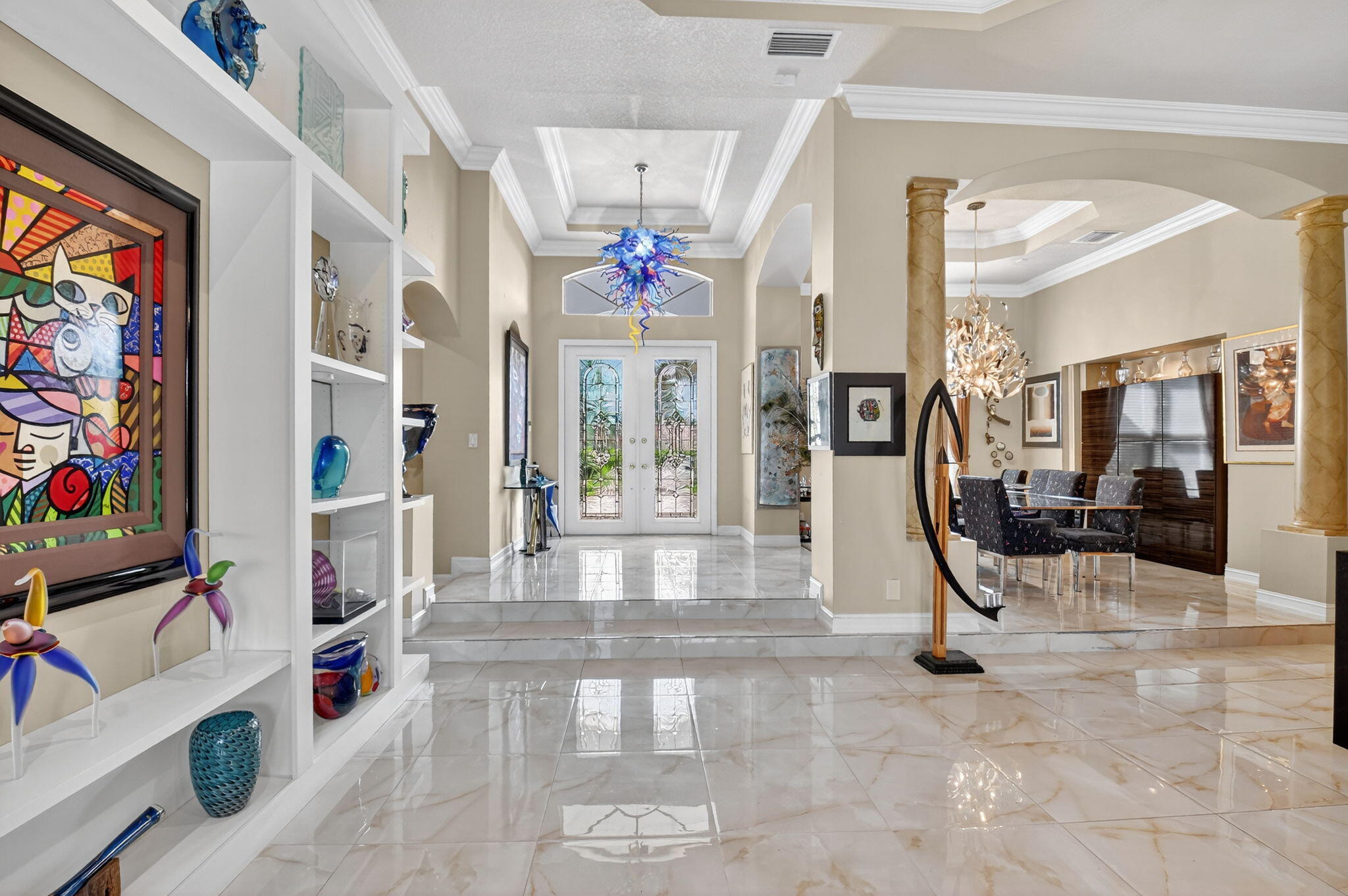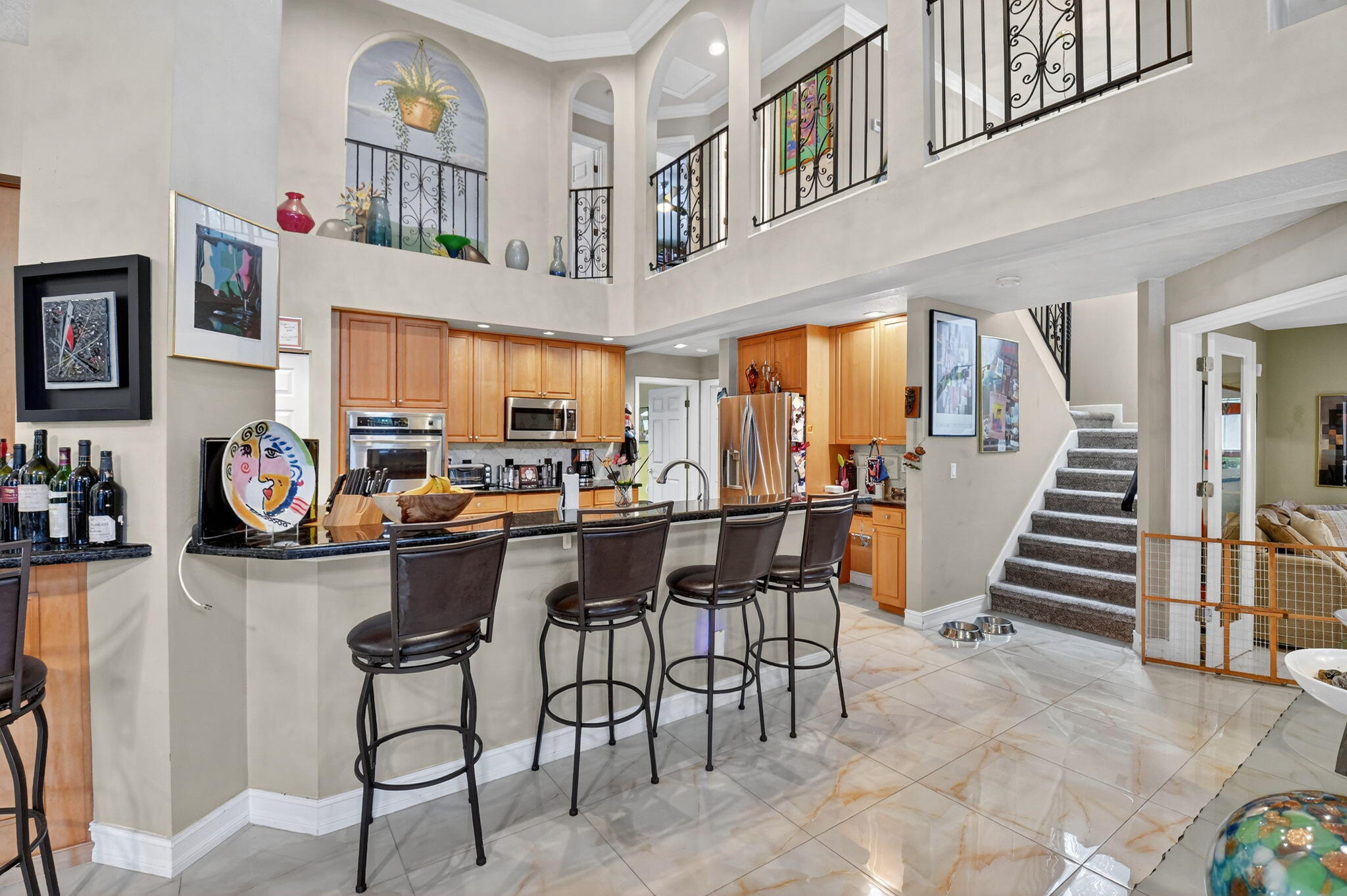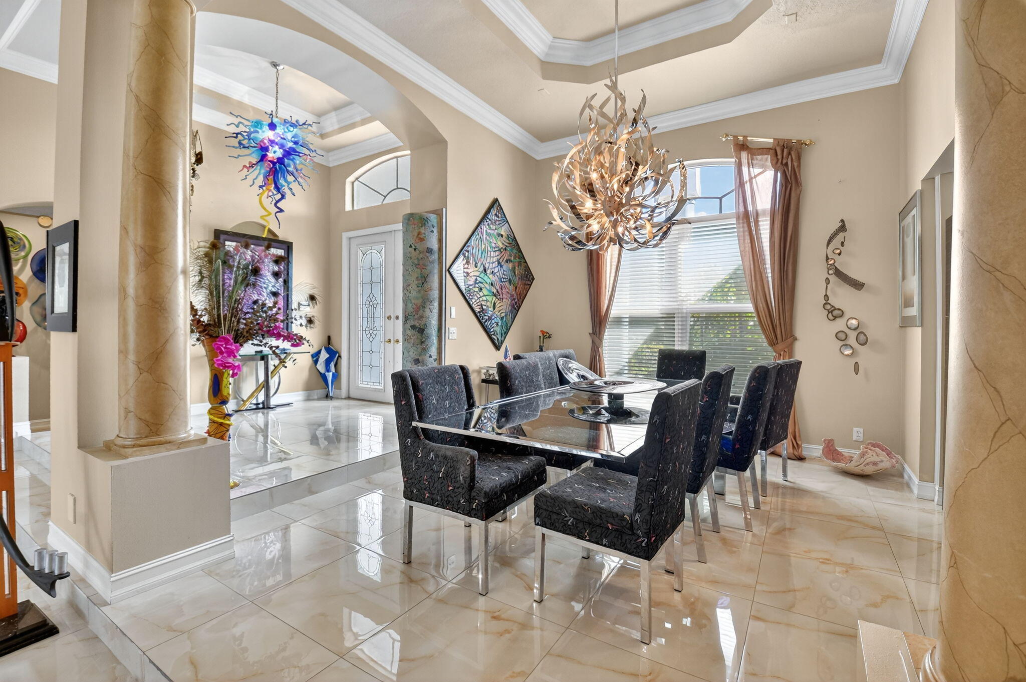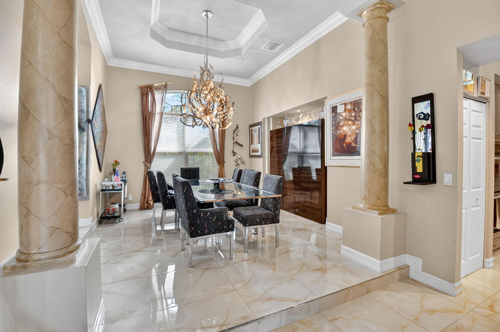 Gorgeous Mediterranean-inspired estate home custom built and set on a sprawling one-acre lot for added privacy. Every detail has been thoughtfully designed, with upgrades throughout. Interior features, grand 8-foot doors, gleaming marble floors throughout with exquisite faux finishes and adorned with sophisticated crown moldings. Amazing kitchen with 3 Door Refrigerator, cooktop and double wall oven. There are many upgrades to this amazing property including freshly painted exterior, with Brand new Roof in 2025, Partial Impact Glass, Two 4-Ton AC Units, Accordion Hurricane Shutters. tankless water heater in garage, New 40 Gall Hot water Heater in Primary Bathroom. Built in whole house vacuum system and Mud Room. Remarcited heated pool surrounded by new travertine pavers on patio