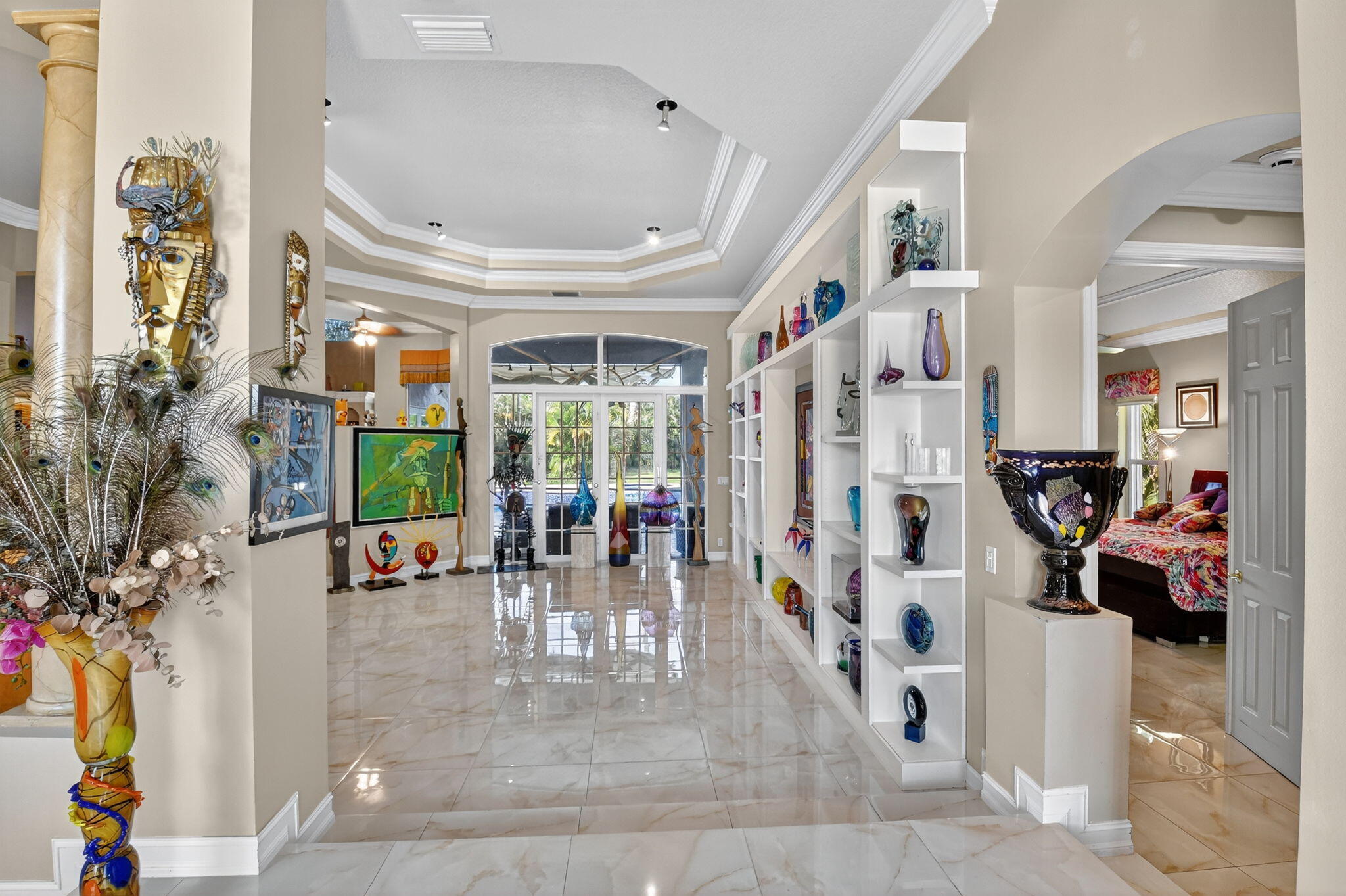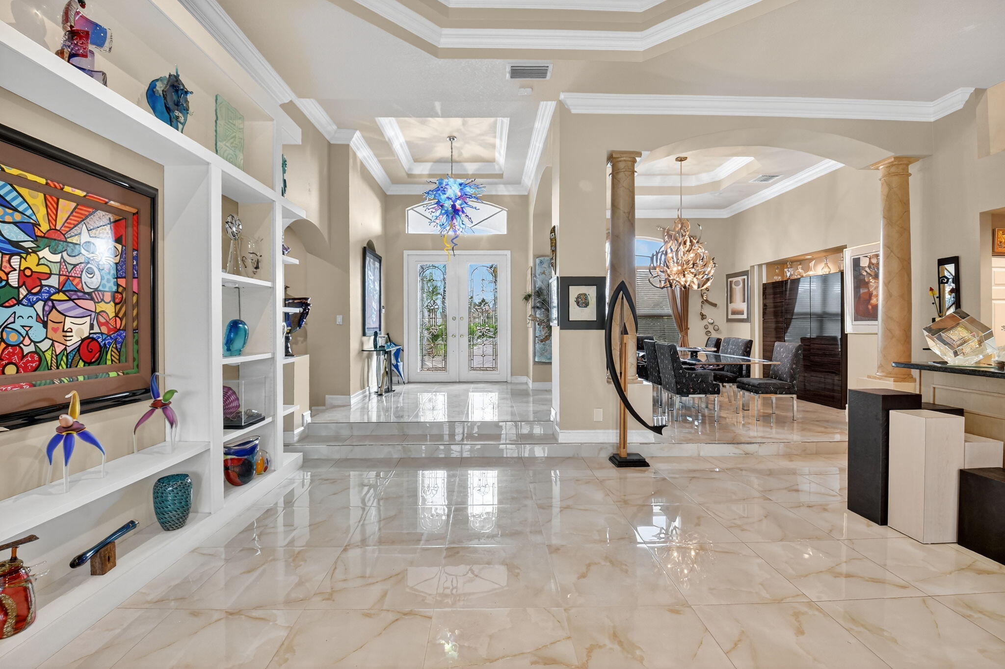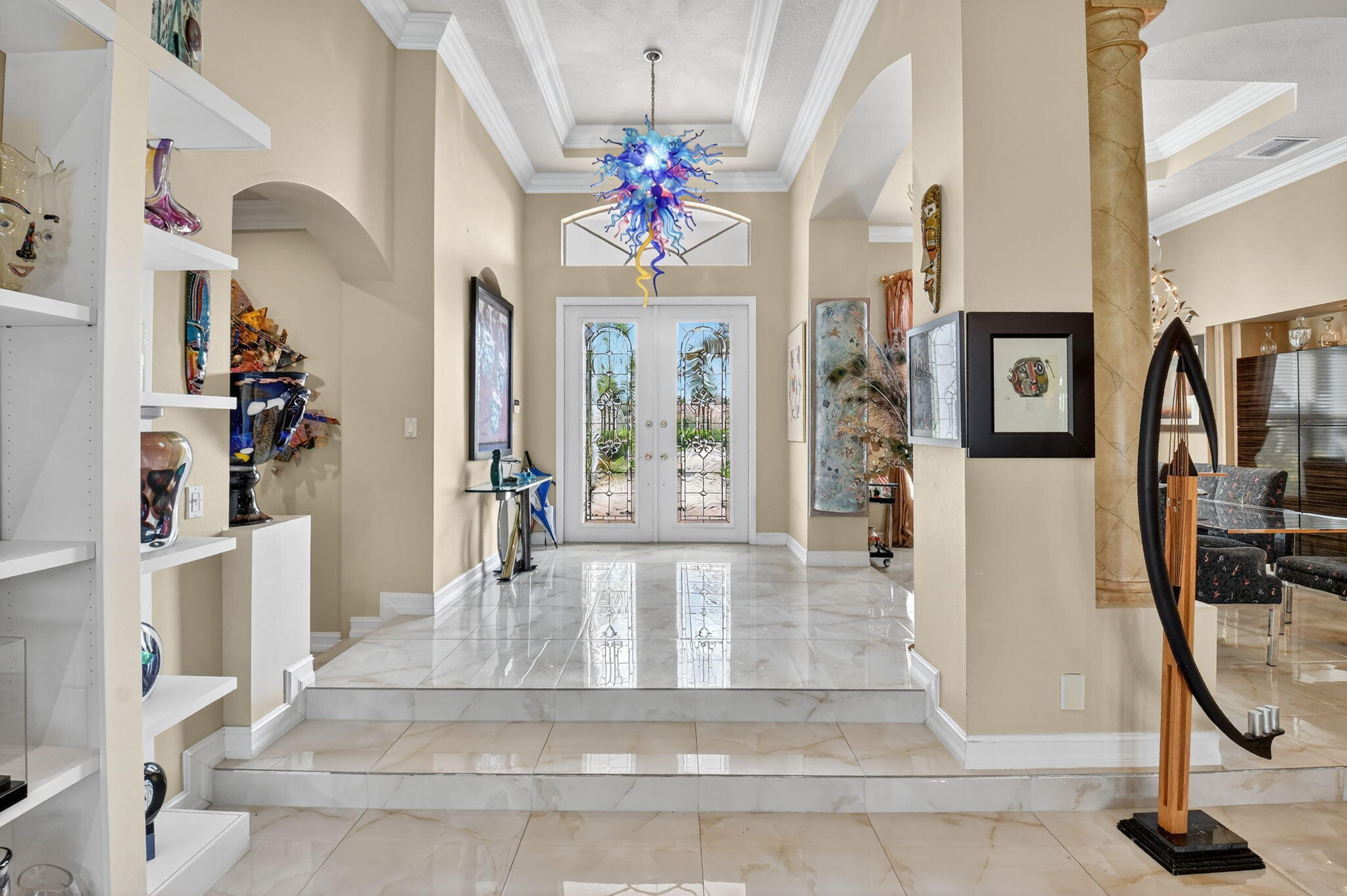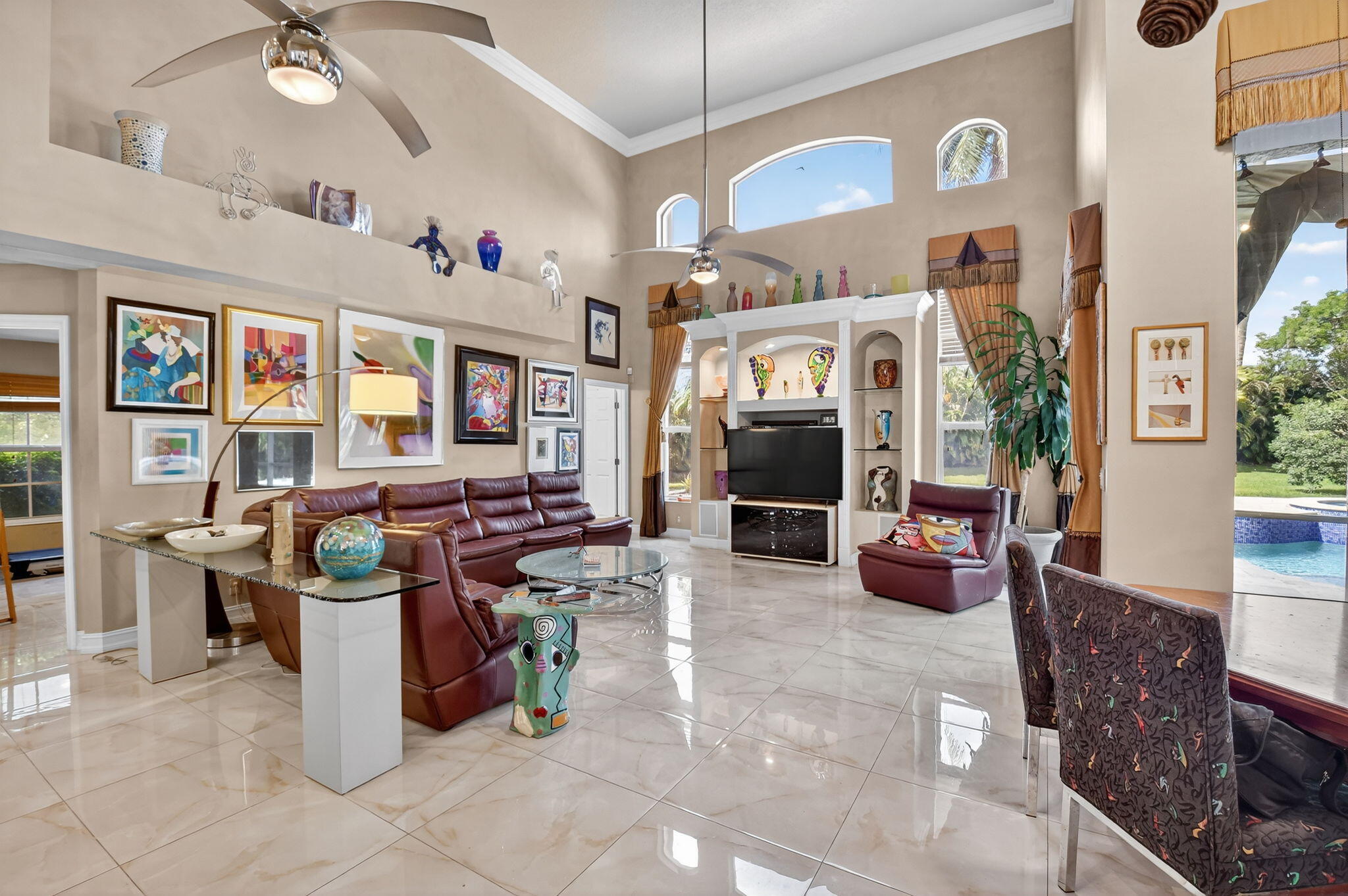 Gorgeous Mediterranean-inspired estate home custom built and set on a sprawling one-acre lot for added privacy. Every detail has been thoughtfully designed, with upgrades throughout. Interior features, grand 8-foot doors, gleaming marble floors throughout with exquisite faux finishes and adorned with sophisticated crown moldings. Amazing kitchen with 3 Door Refrigerator, cooktop and double wall oven. There are many upgrades to this amazing property including freshly painted exterior, with Brand new Roof in 2025, Partial Impact Glass, Two 4-Ton AC Units, Accordion Hurricane Shutters. tankless water heater in garage, New 40 Gall Hot water Heater in Primary Bathroom. Built in whole house vacuum system and Mud Room. Remarcited heated pool surrounded by new travertine pavers on patio
