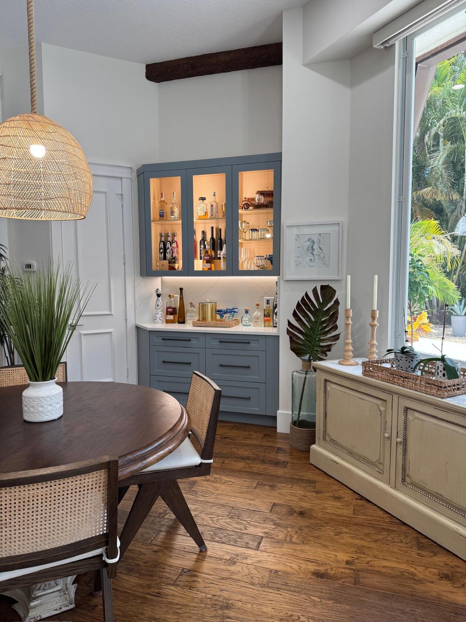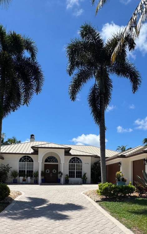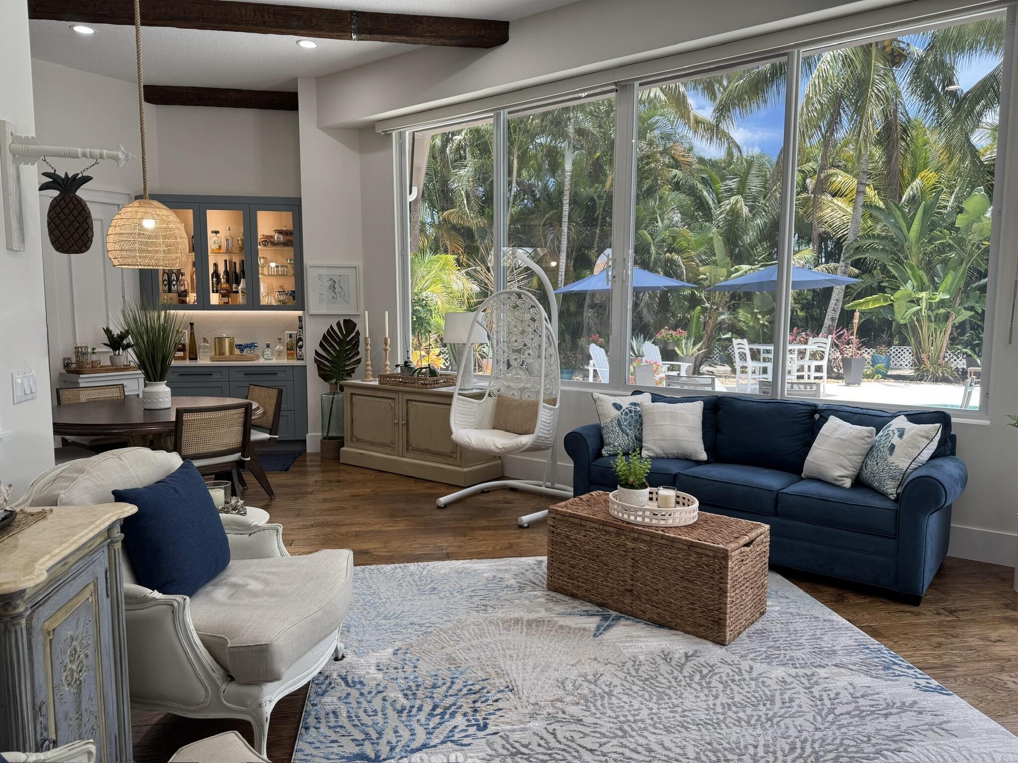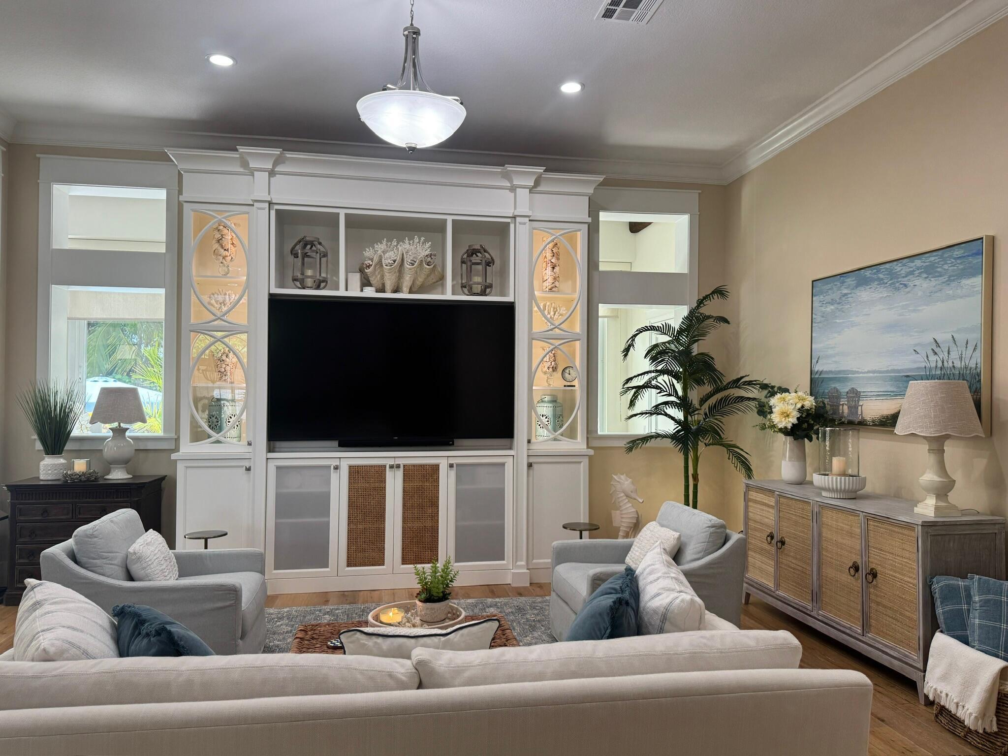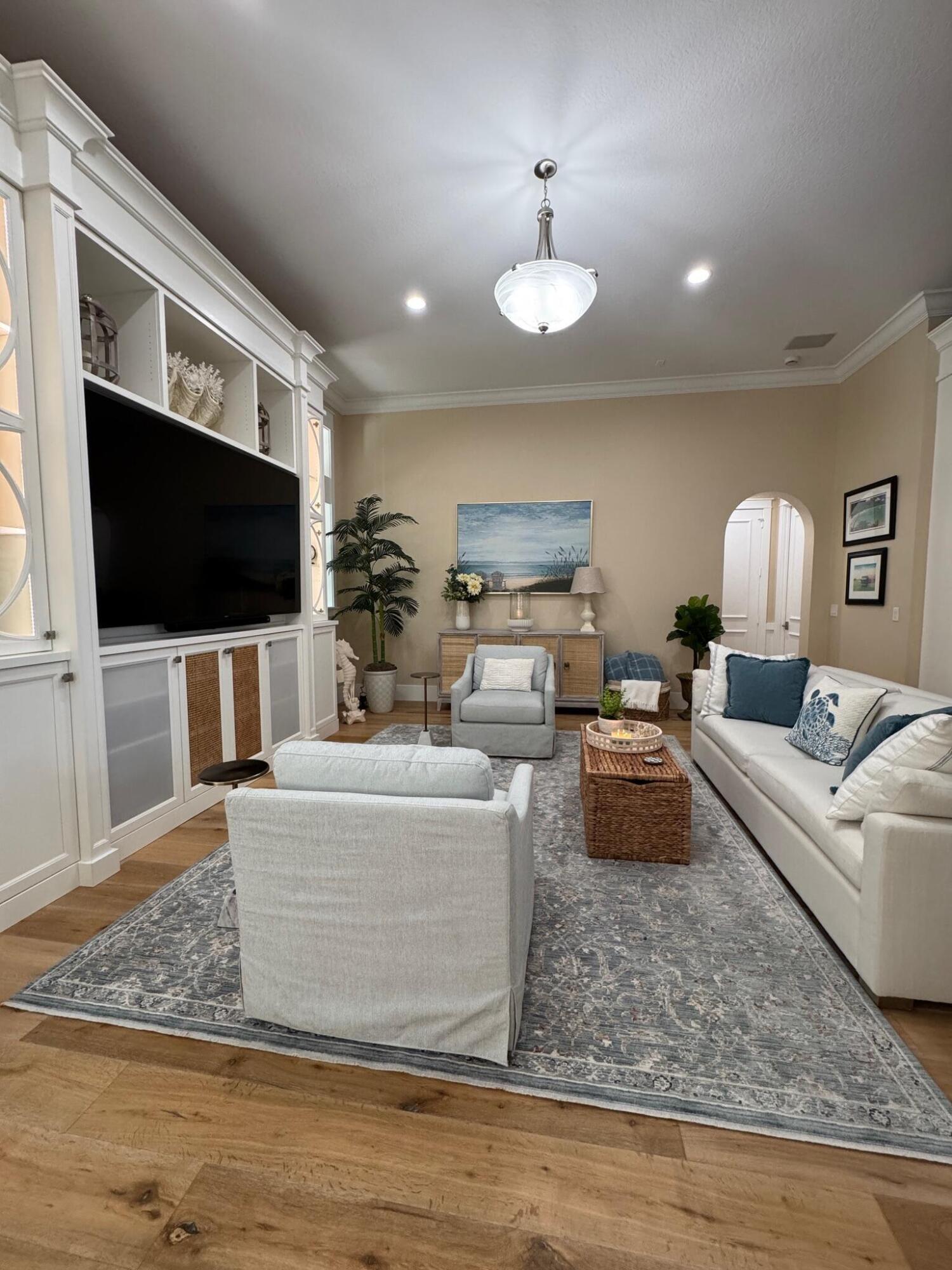 An exceptional custom estate in the prestigious 24/7 guard-gated community of Rio Poco, has 4,344 square feet of interior living space plus an 885 square foot three-car garage on a full acre. Designed for both luxury and family comfort, the home features 4 spacious bedrooms plus a dedicated office. The gourmet kitchen showcases custom cabinetry along with Wolf, Sub-Zero, and Cove appliances, complemented by Taj Mahal quartzite countertops to create a refined space for cooking and entertaining. Expansive living areas flow seamlessly across hardwood floors, highlighted by a built-in bar and a cozy gas fireplace that invite gatherings of family and friends. Outdoors, a resort-style heated saltwater pool and spa with sun shelf is surrounded by lush tropical landscaping.
