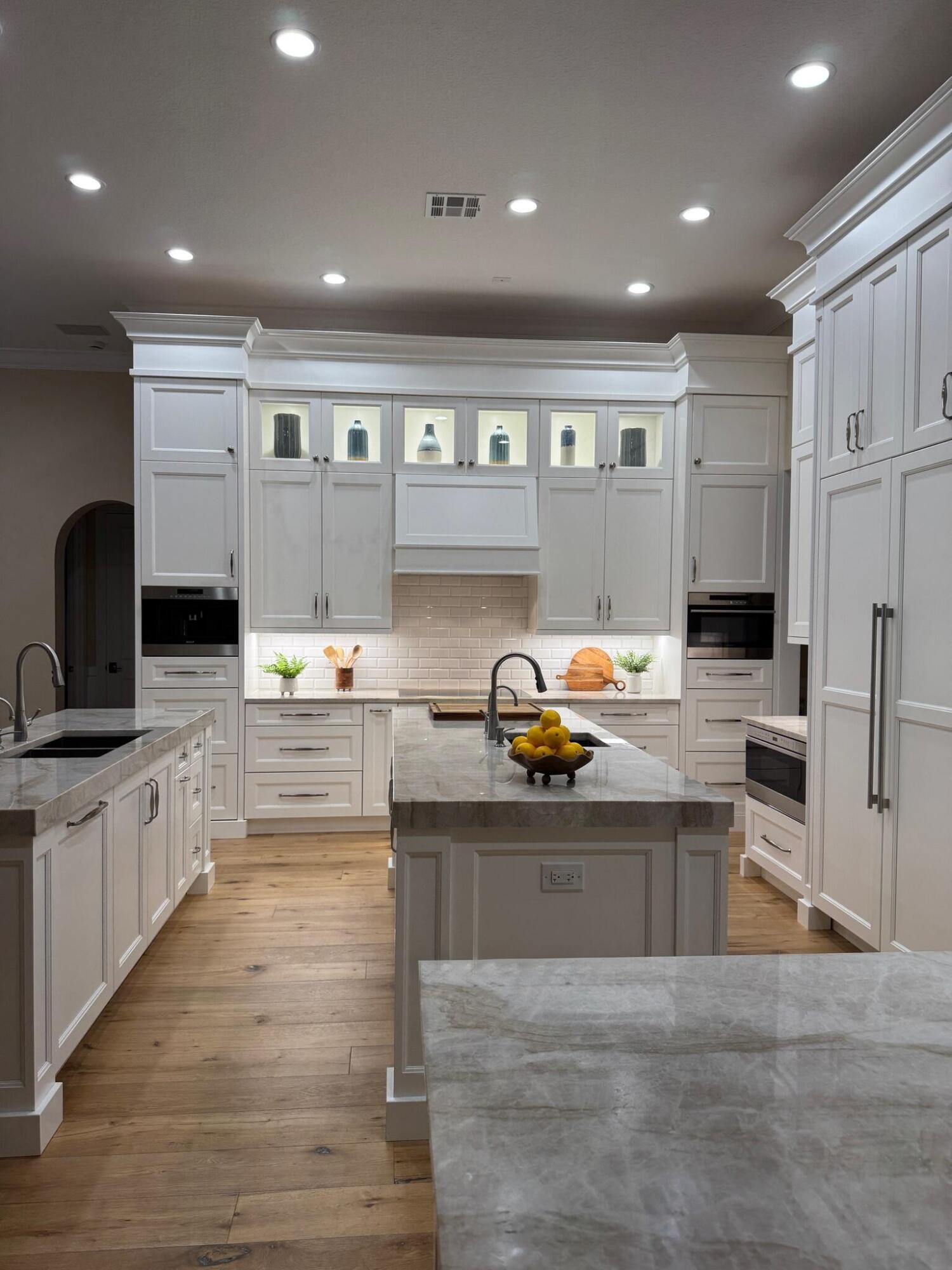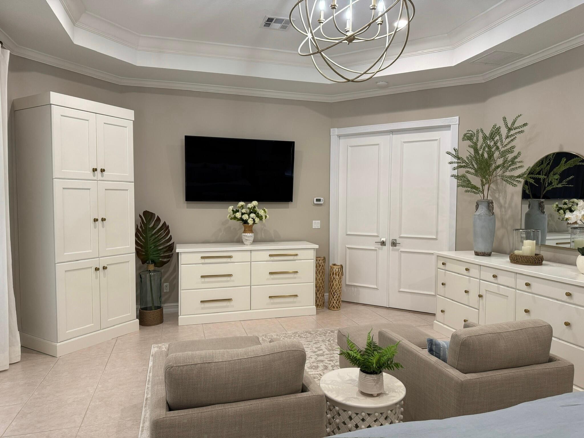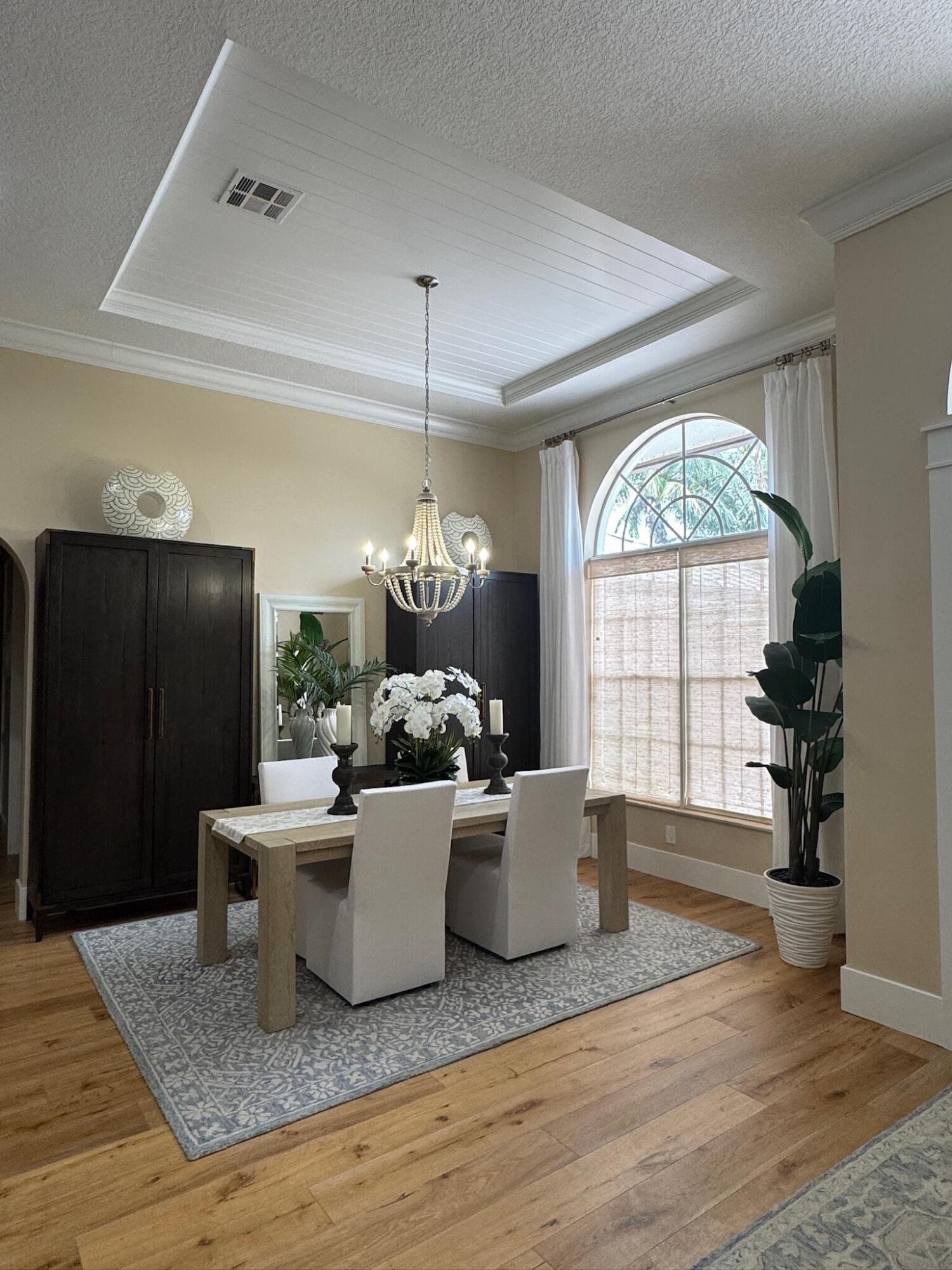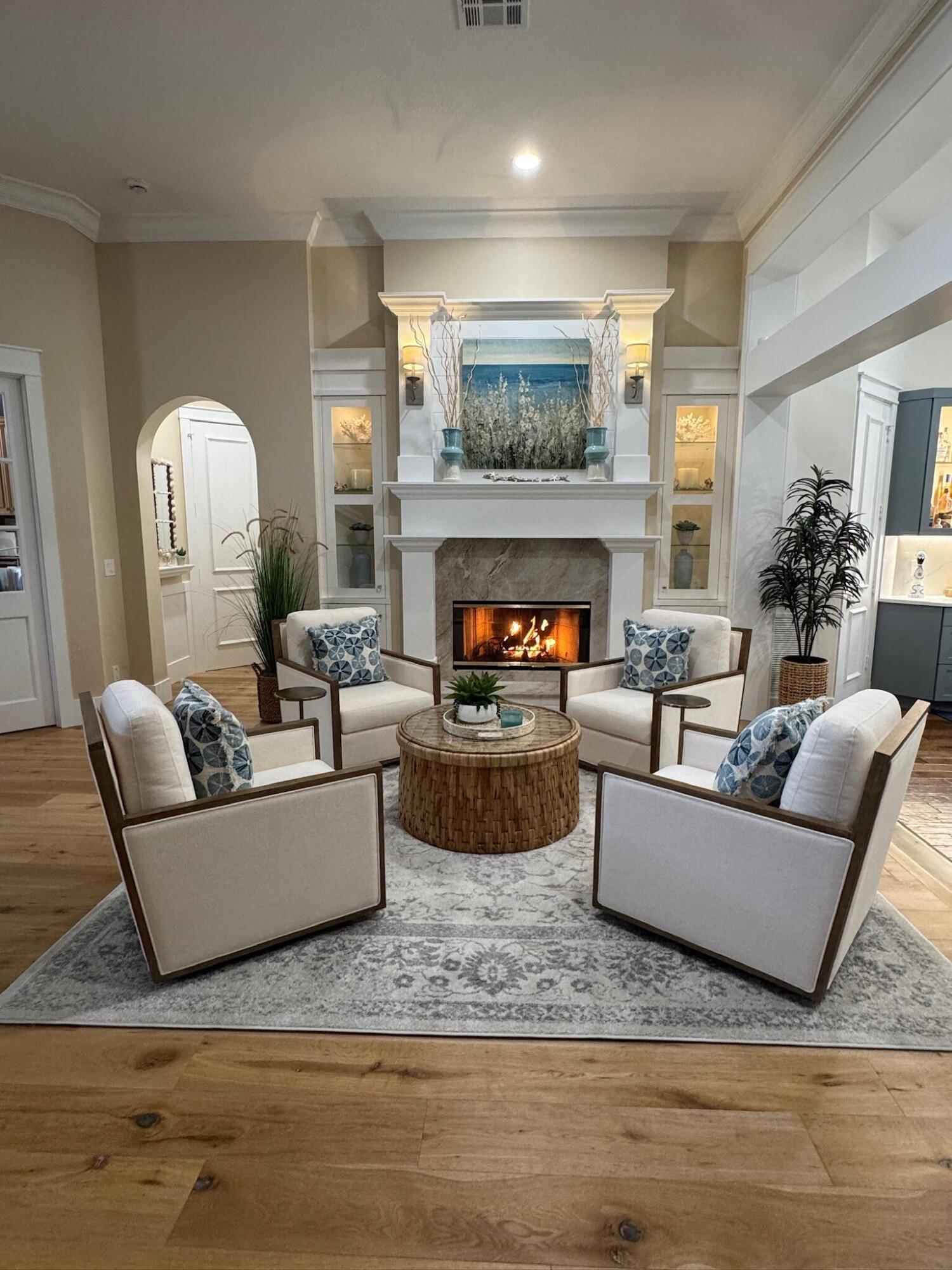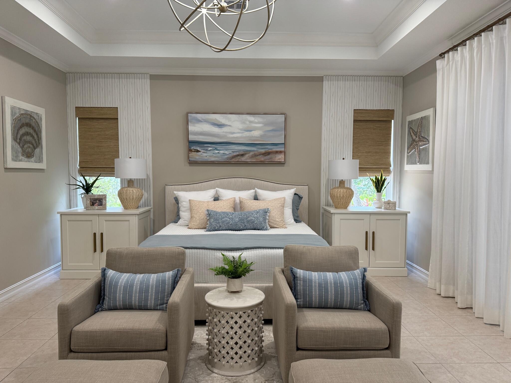 An exceptional custom estate in the prestigious 24/7 guard-gated community of Rio Poco, has 4,344 square feet of interior living space plus an 885 square foot three-car garage on a full acre. Designed for both luxury and family comfort, the home features 4 spacious bedrooms plus a dedicated office. The gourmet kitchen showcases custom cabinetry along with Wolf, Sub-Zero, and Cove appliances, complemented by Taj Mahal quartzite countertops to create a refined space for cooking and entertaining. Expansive living areas flow seamlessly across hardwood floors, highlighted by a built-in bar and a cozy gas fireplace that invite gatherings of family and friends. Outdoors, a resort-style heated saltwater pool and spa with sun shelf is surrounded by lush tropical landscaping.
