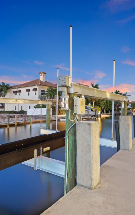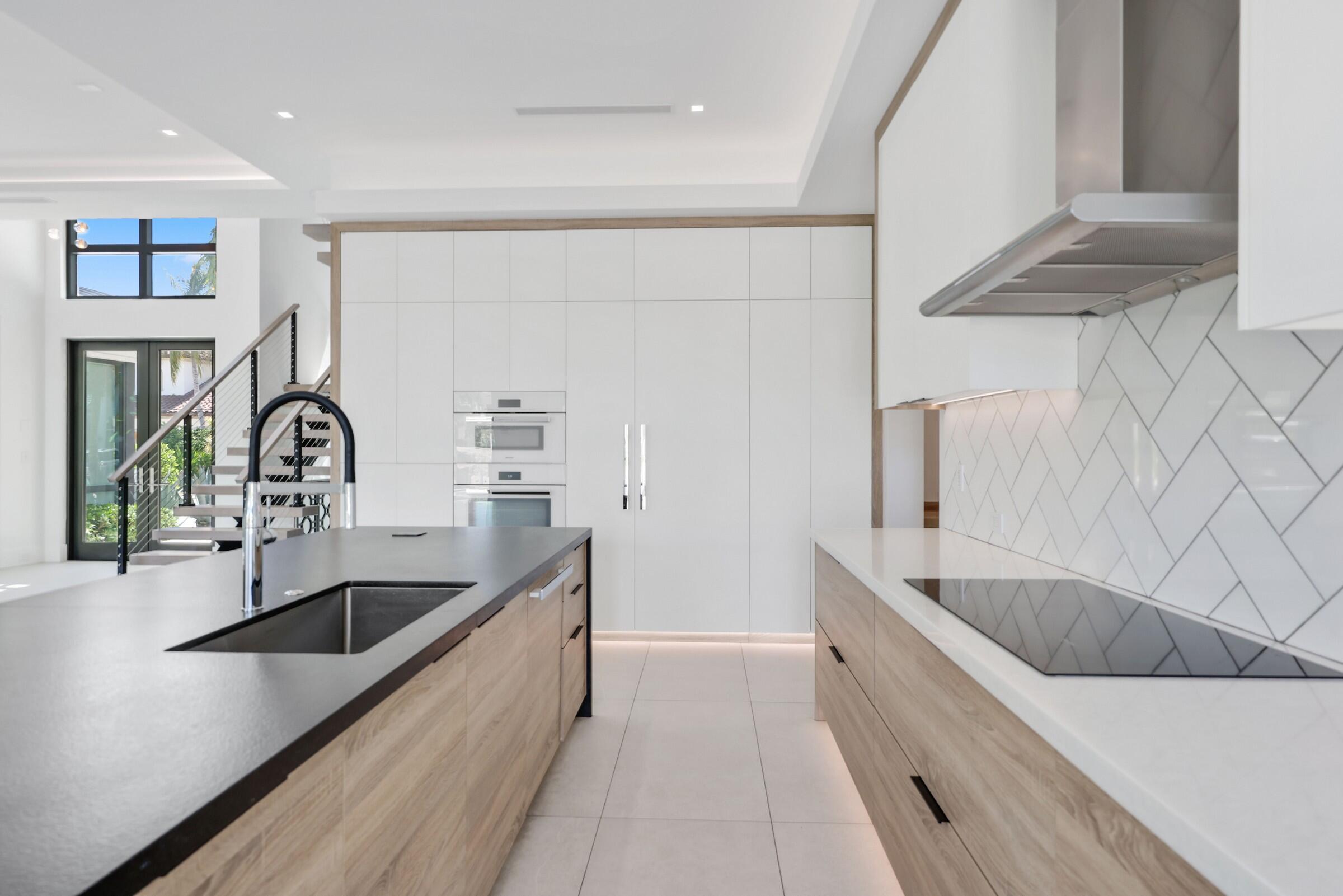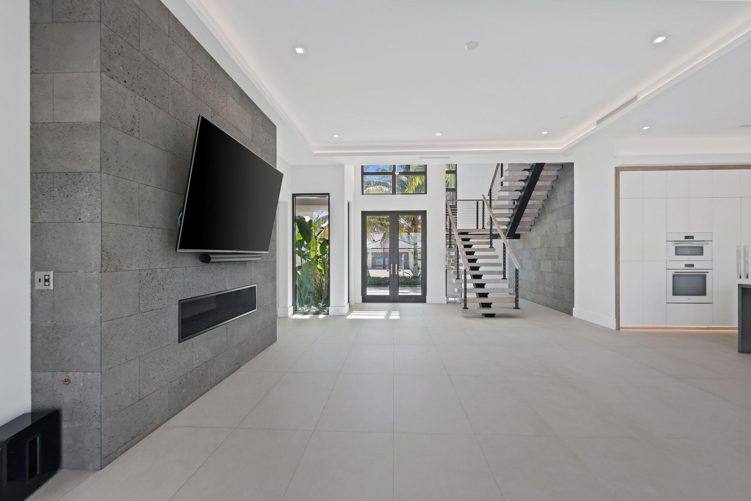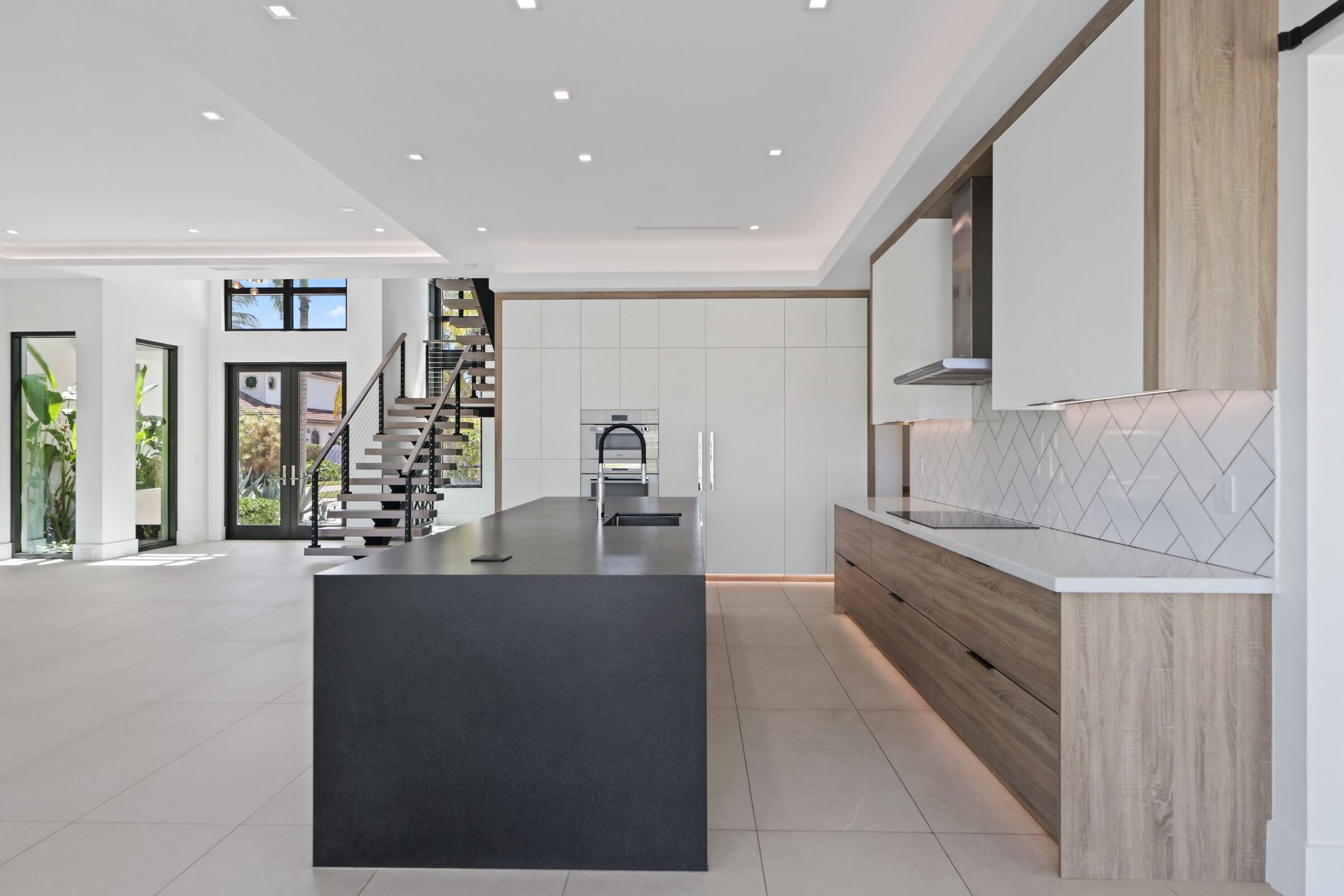 Welcome to your private waterfront oasis in the heart of Delray Beach. Built in 2020 and designed by the late, world-renowned architect Richard Jones, this extraordinary estate offers a seamless blend of modern design, soaring ceilings, and refined coastal living.From the moment you enter, the grand glass staircase and dramatic entryway set the tone for what awaits inside. The home features six spacious bedrooms, six and a half bathrooms, and over 4,500 square feet of carefully crafted living space. Walls of glass invite natural light throughout, while open living and dining areas create the perfect environment for both everyday living and large-scale entertaining.The gourmet chef's kitchen is outfitted with premium finishes and professional-grade appliances, serving as the heart