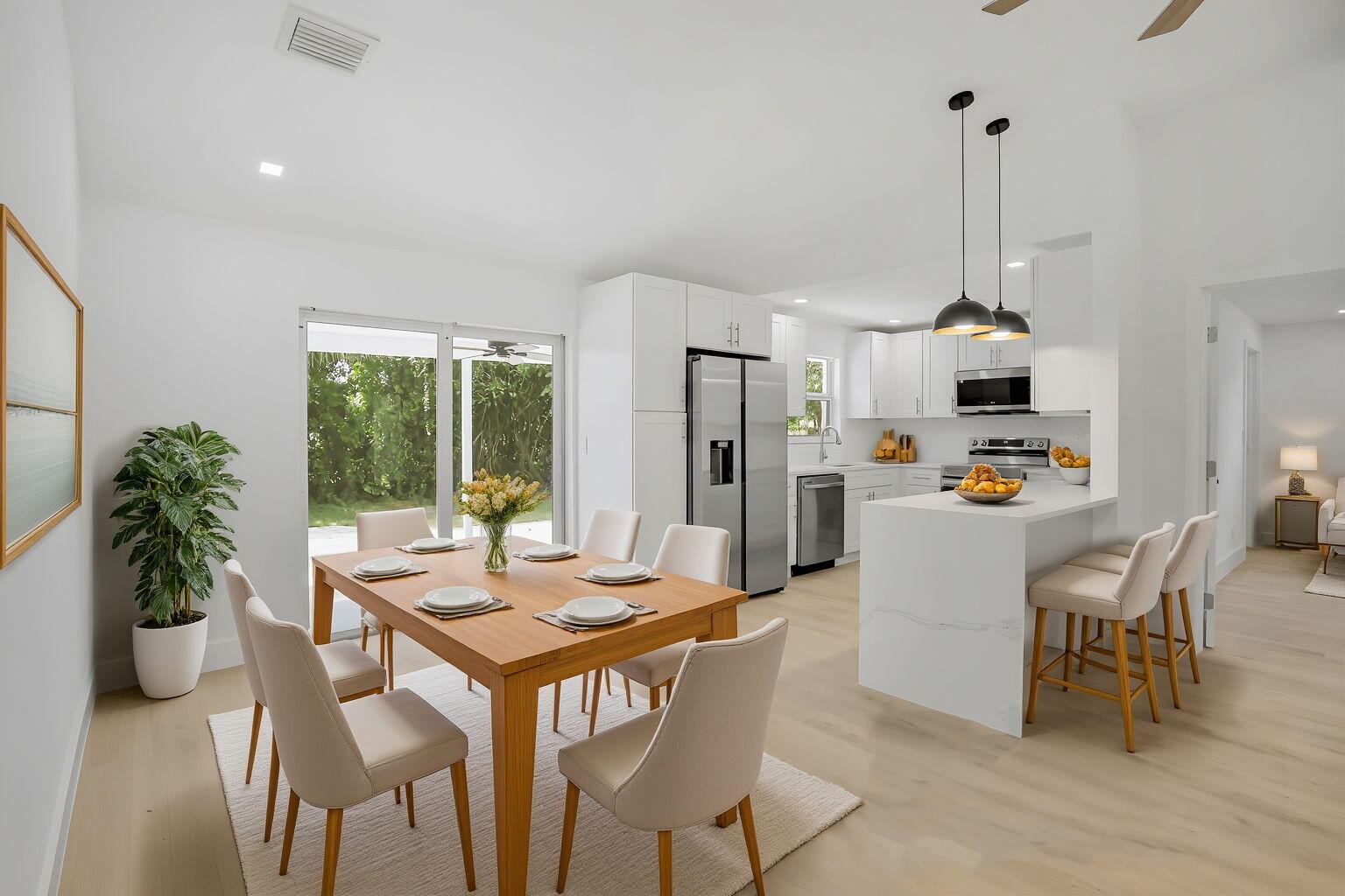 Turn-key home on an oversized lot with no HOA in the heart of Delray Beach! This fully renovated 3 bedroom, 2 bath property features a split floor plan, open-concept living, and an attached garage for convenience. Recent upgrades include a brand-new 2025 roof, fully renovated kitchen and bathrooms with designer finishes, complete impact windows, freshly painted interiors, new flooring, and upgraded fixtures throughout. The primary suite showcases a luxury bathroom with modern design, highlighted by an oversized walk-in shower, rainfall showerhead, and handheld wand.Located in a highly sought-after non-HOA community, this home offers ultimate flexibility without restrictions or fees. Ideally situated just minutes from the beach and Atlantic Avenue, with easy proximity to I-95, you'll