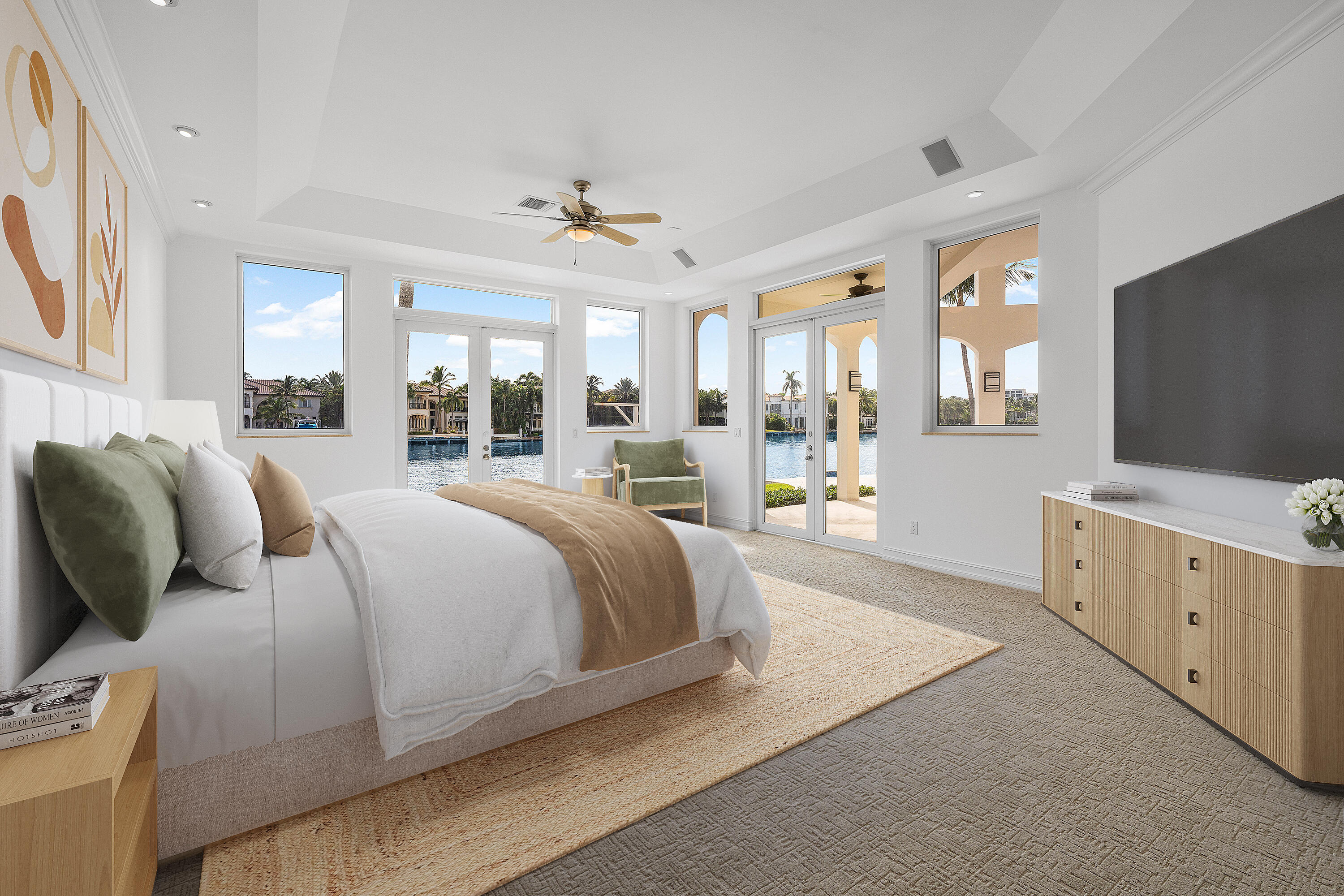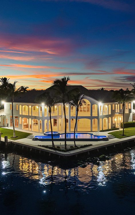 Exceptional Waterfront Estate | Intracoastal Point Lot. This extraordinary residence offers over 7,300 ft under air plus an additional 2,000 ft of covered outdoor living space and balconies, creating the perfect blend of indoor-outdoor living. Featuring 5 bedrooms and 9 baths, this estate is thoughtfully designed for both elegance and comfort, with two primary suites, one on each floor. Situated on a coveted point lot in Delray Beach Florida, the home enjoys 126 ft of direct Intracoastal frontage and 125 ft of canal frontage, with direct ocean access and no fixed bridges. A 50 ft dock with electric service with plenty of room to extend and a 100 ft canal width allow for effortless yacht maneuvering and docking. From the moment you enter, you're captivated by panoramic water views from
