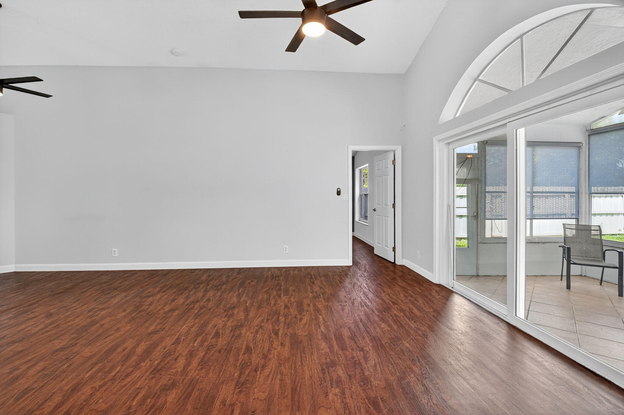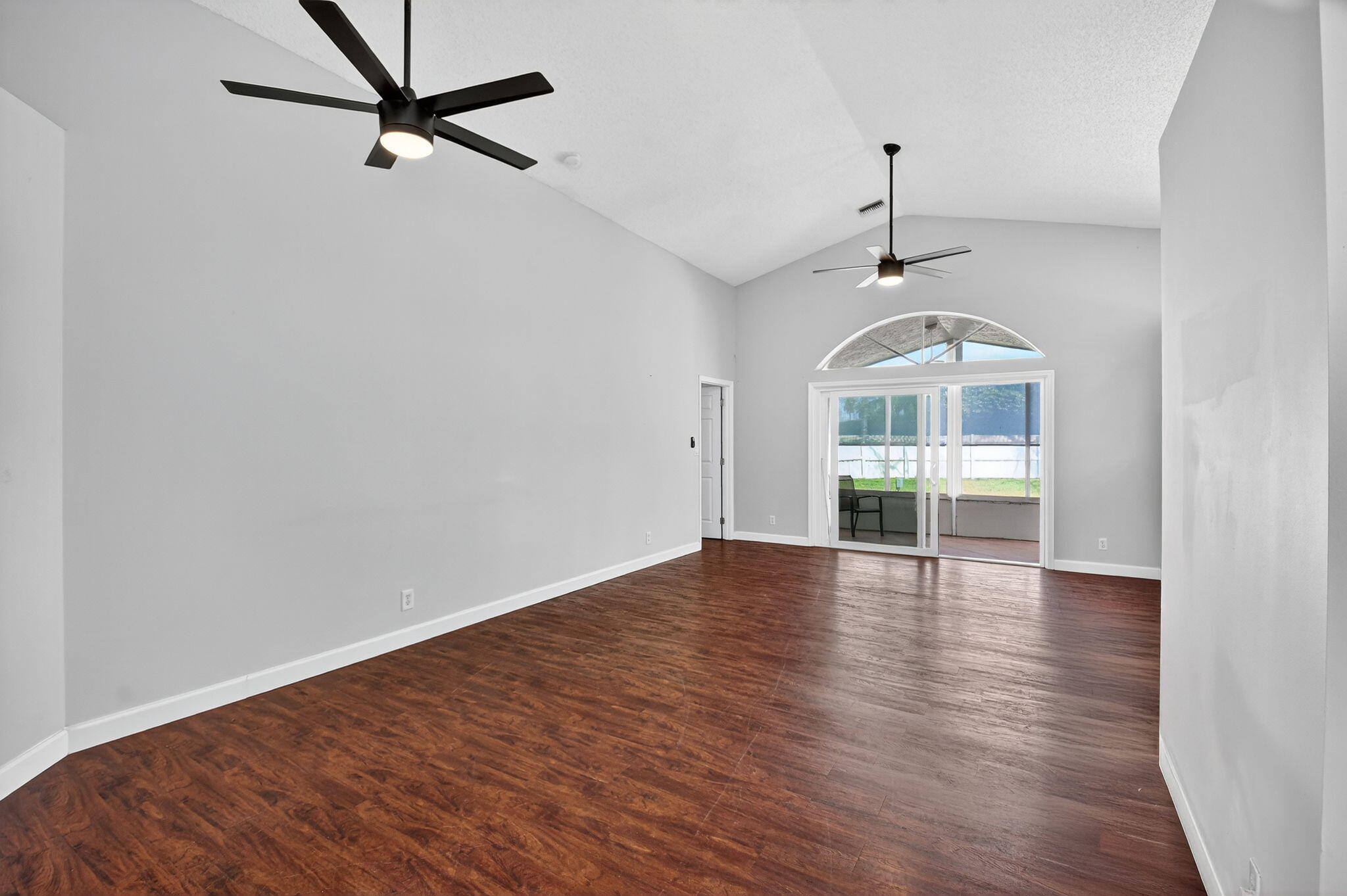 7550 Ironbridge Circle is a well-maintained home with many updates in a desirable community. Exterior features include fresh paint and roof coating, Epoxy refinished driveway and garage floor, and painted fence. Inside, you'll find fresh paint, vaulted ceilings with recessed lighting, new ceiling fans, freshened landscaping and updated fixtures. Have privacy and an enormous over 1/3 acre backyard with plenty of space for a pool. The kitchen has granite counters, a new refrigerator, newer appliances, pantry pull-out drawers, and water filtration. Bathrooms feature new vanities, lights, and a sliding shower door. Enjoy a screened in lanai off the main living area. Added benefits include solar ventilation in attic, a generator plug-in, and mango tree.