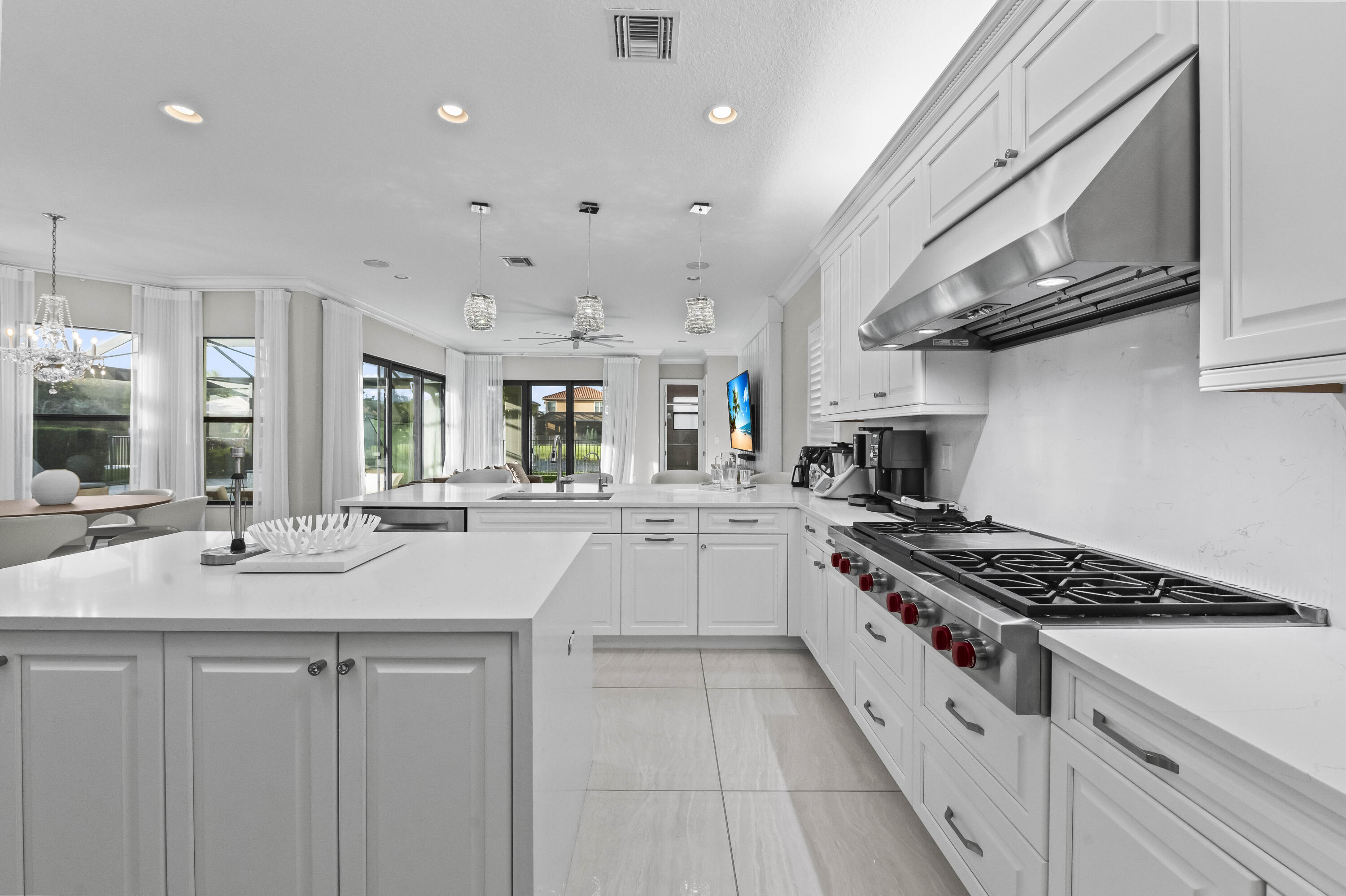Perched on a picturesque lakefront lot with mesmerizing fountain views, this impeccably designer-decorated Bassano Grande spans nearly 6,000 square feet of luxurious, modern living. The backyard is an entertainer's paradise, featuring a screened, heated saltwater pool and spa, an outdoor TV, and a fully equipped summer kitchen with a brand-new premium grill. Inside, sophisticated high-end finishes elevate every detail, complemented by a state-of-the-art media room, a built-in office, and rich woodwork throughout. The primary suite serves as a private sanctuary, boasting his-and-hers bathrooms, custom closets, a cozy sitting area, and an exclusive balcony. Additional highlights include spacious oversized bedrooms, elegant lighting, custom window treatments, newly upgraded garage flooring,