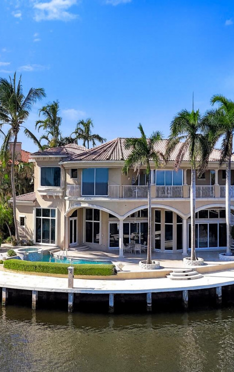 Welcome to prestigious Villa Bellavista and experience unparalleled luxury and privacy in this rare Intracoastal point-lot estate, ideally situated within one of Delray Beach's most exclusive gated enclaves. Perfectly positioned on over 139 feet of direct waterfront, this 5,092-square-foot residence captures breathtaking panoramic views and offers a seamless blend of sophistication, craftsmanship, and modern comfort.Step through a gated courtyard with a tranquil fountain and into a home that radiates timeless elegance. The grand foyer welcomes you with soaring ceilings and rich marble flooring that flows throughout the living spaces.