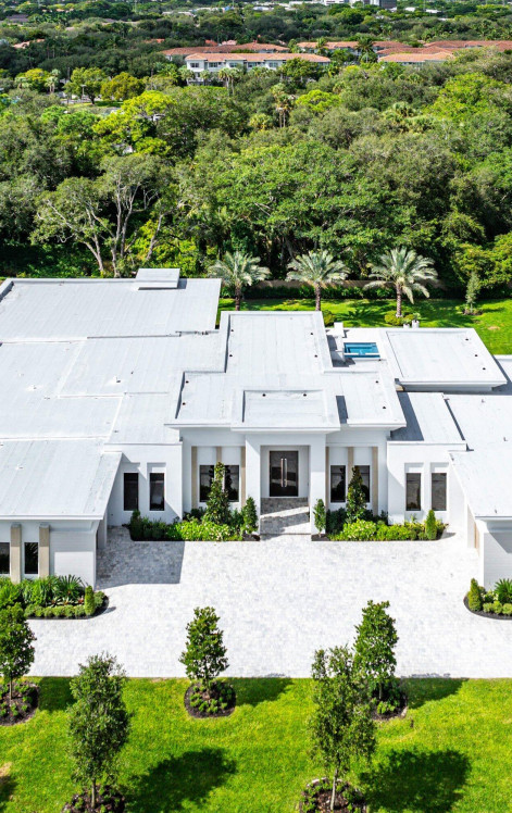 This sprawling NEW CONSTRUCTION estate is situated on one acre within the prestigious gated community of Foxe Chase, offering 12,500 square feet under roof with approximately 8,000 square feet of meticulously designed living space under air and a 7-car garage capacity. A harmonious blend of architectural elegance, modern technology, and master craftsmanship, this custom-built residence represents the pinnacle of South Florida luxury living.