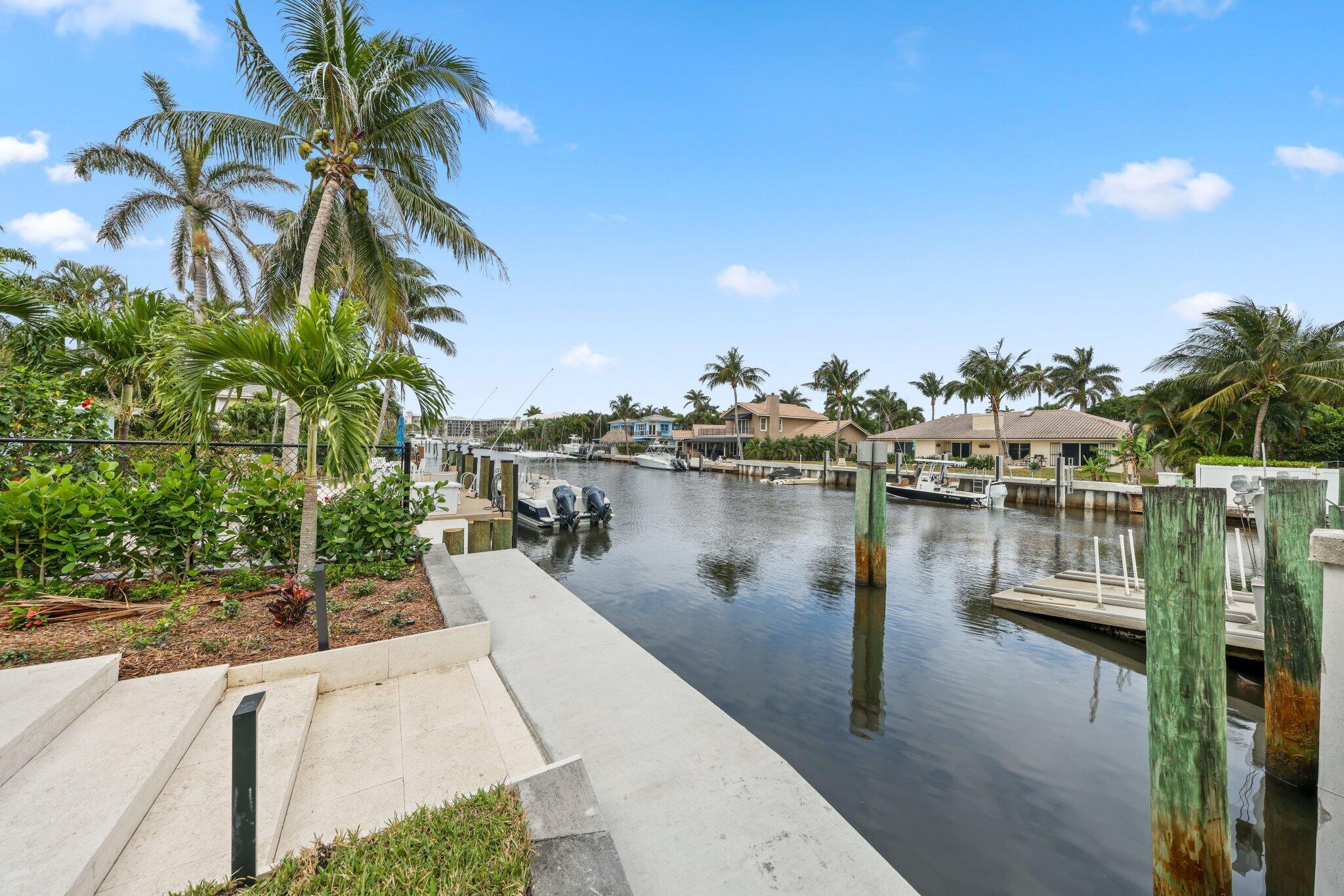 A masterpiece of modern coastal living, this brand-new residence at 1041 Lewis Cove delivers the ultimate Barrier Island experience in Delray Beach. Set on a prime waterfront lot with 30 feet of frontage, direct ocean access, and no fixed bridges, the home is a true haven for entertainers and beach lovers alike. Just 800 feet from the sand and less than a mile from the shops and restaurants of Atlantic Avenue, the property blends refined coastal modern design with an unparalleled lifestyle.This five-bedroom, 5.5-bath residence makes a striking architectural statement, balancing contemporary elegance with effortless indoor-outdoor living. Outside, the waterfront setting takes center stage. A heated saltwater pool with an overflow spa anchors the backyard, while a fully equipped