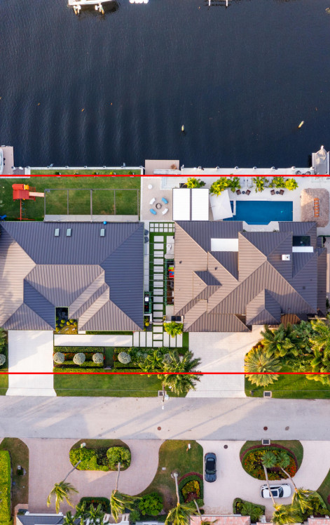 A rare waterfront compound offering two designer-renovated homes with 180' of deepwater in Tropic Isle. 945 Iris features 5BR/5BA, a first-floor primary suite, VIP guest suite, steam cabana bath, two-story living room, chef's kitchen with StruXure pergola, 2019 metal roof, and a 2024 resort pool/spa with Aqualink/Jandy/O2 plus 60' dock. 941 Iris offers 3BR/2.5BA + den, 2023 renovations, skylit patio, designer wet bar, billiard/dining room, epoxy 2-car garage, playground, golf-course turf, and its own 60' floating dock. A shared courtyard with green walls, a cold plunge, and a sand bar completes this turnkey luxury estate.