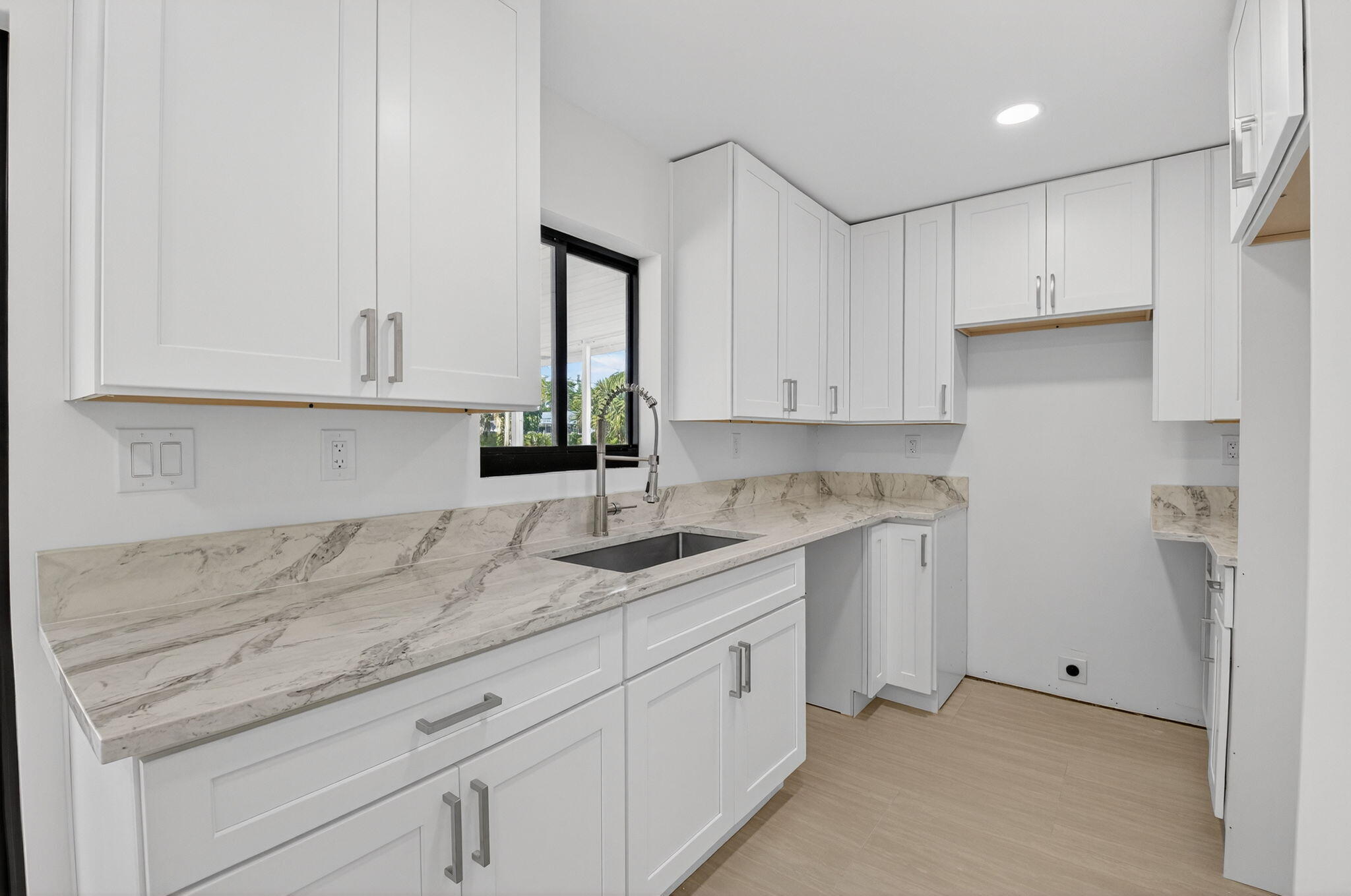Full remodel! All new large format tile floor, new cabinets and counters, rewired, new light fixtures, new doors and trim, new plumbing fixtures, new water heater, new AC and ducts, new hurricane windows. Newly painted in and out. Full set of new appliances (your choice) installed before close. Roof was installed 2019. All work permitted.(There are some items which have not yet been completed. These items will all be completed before close. Call listing agent for detail)