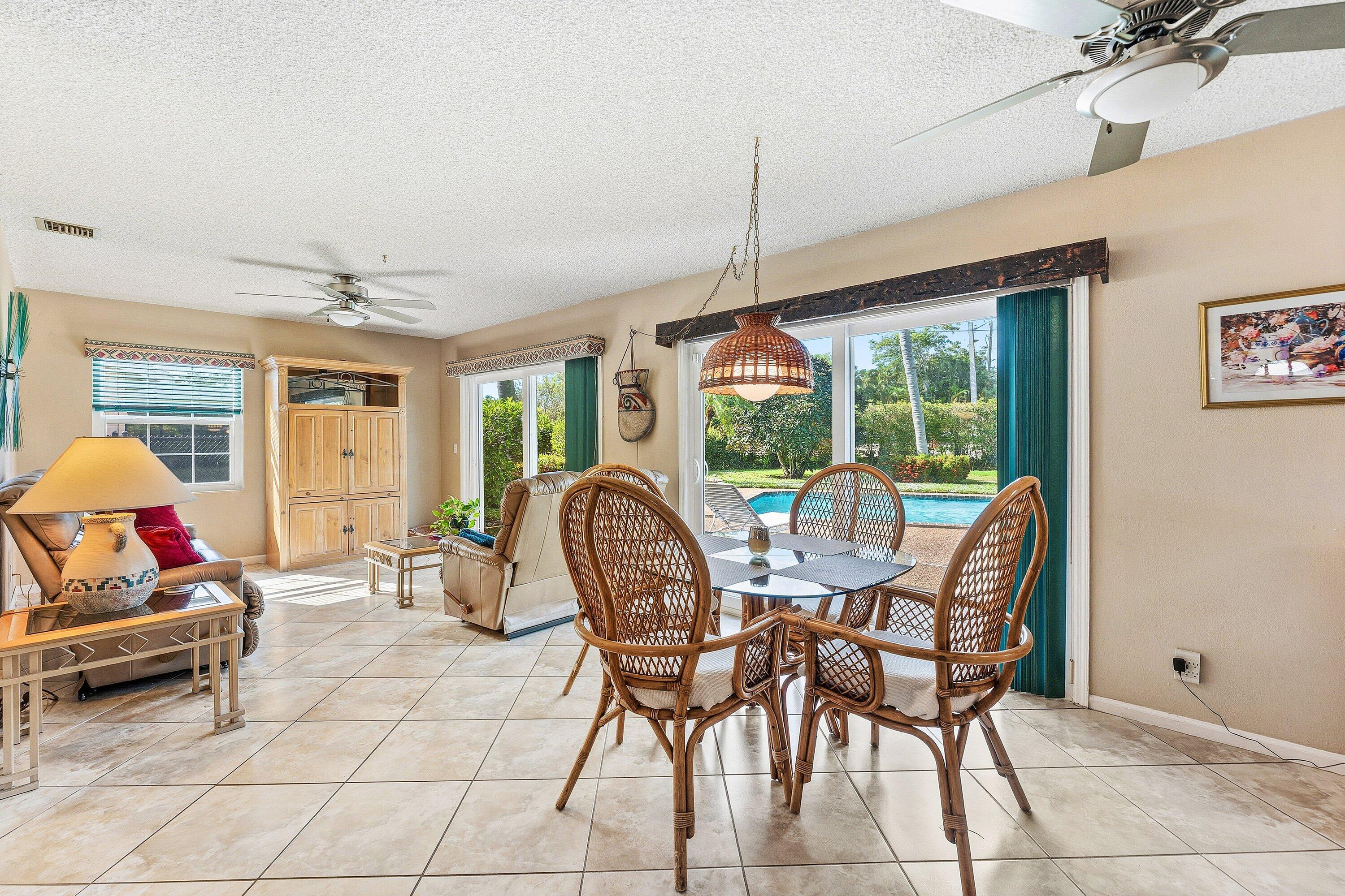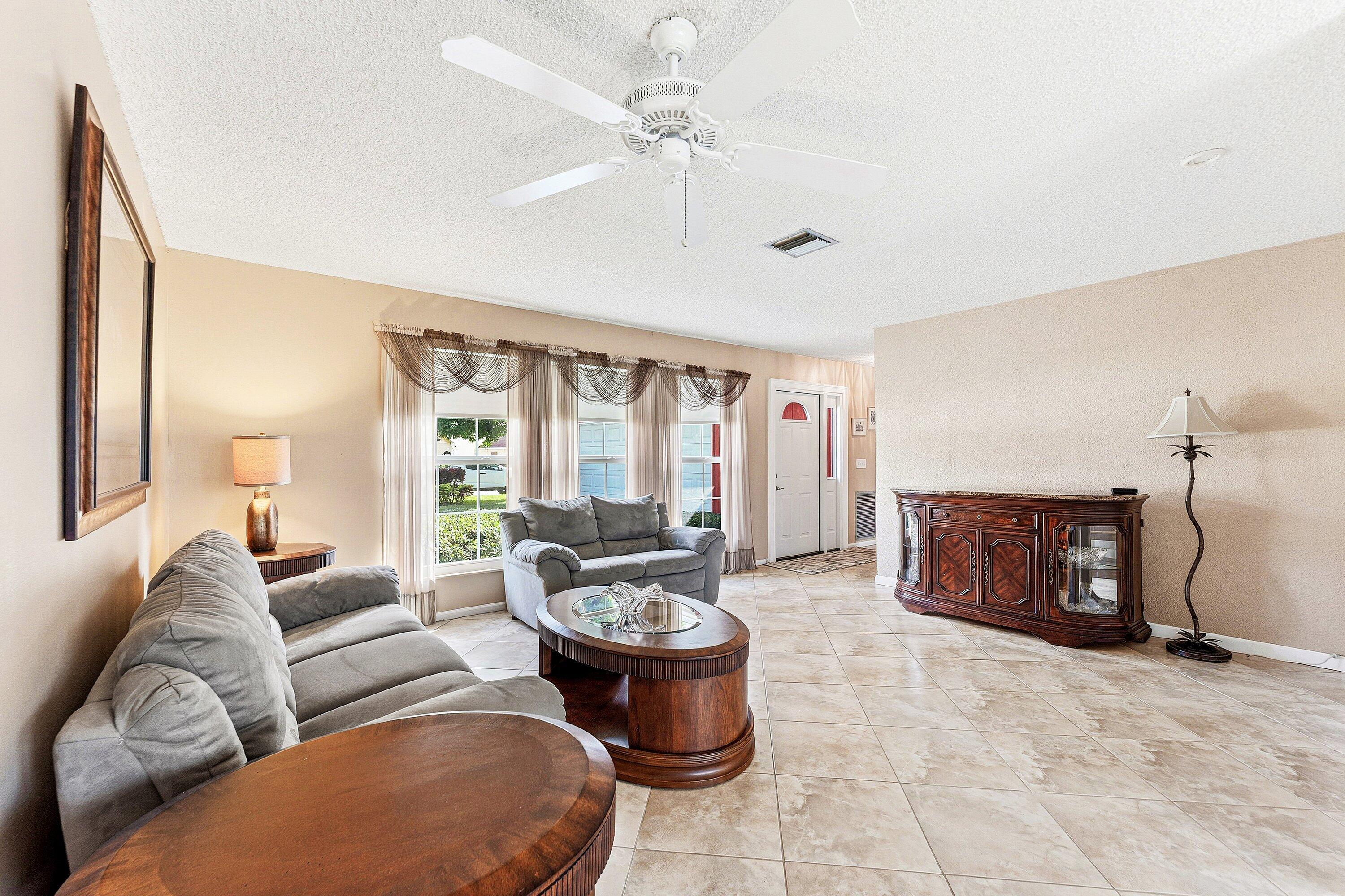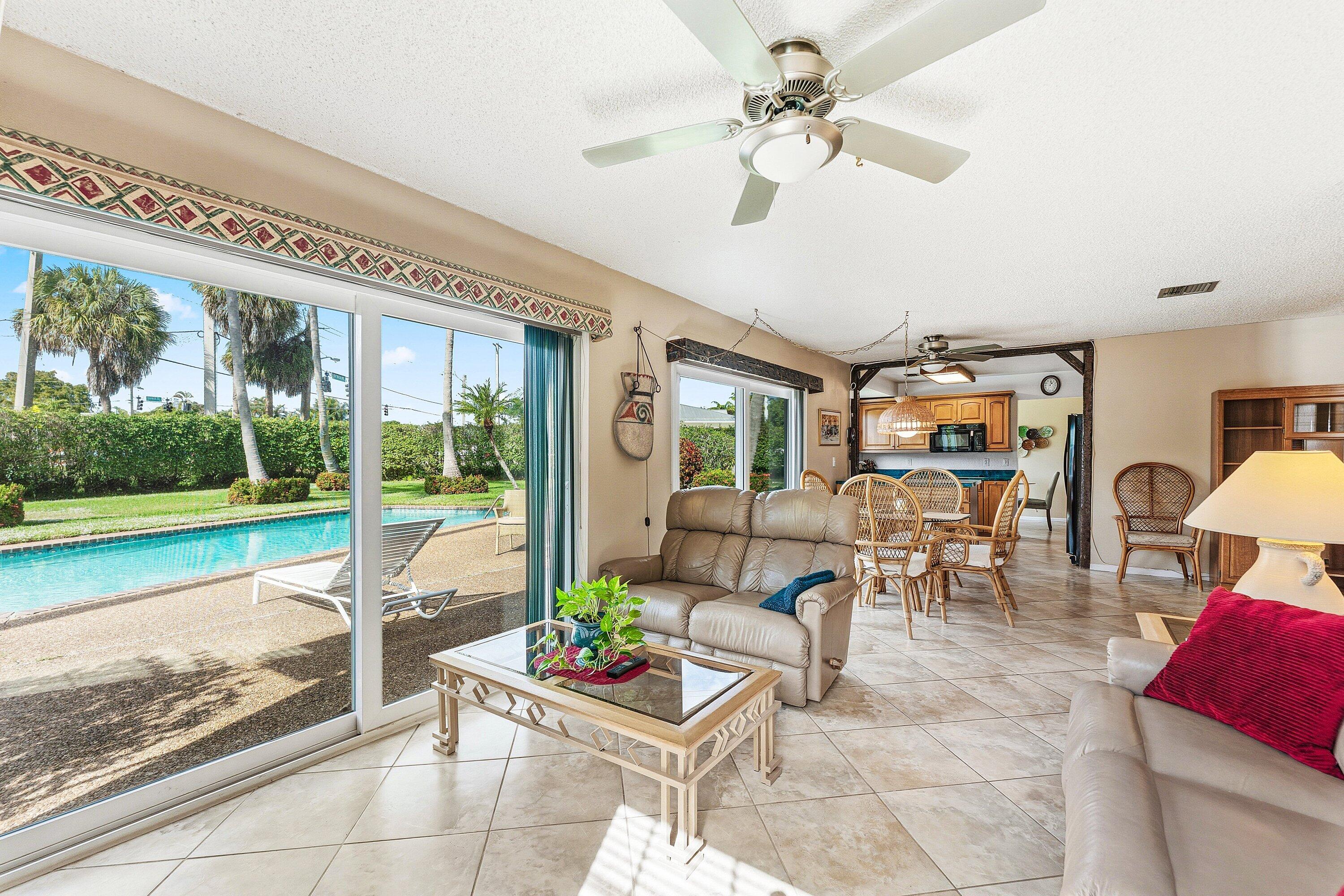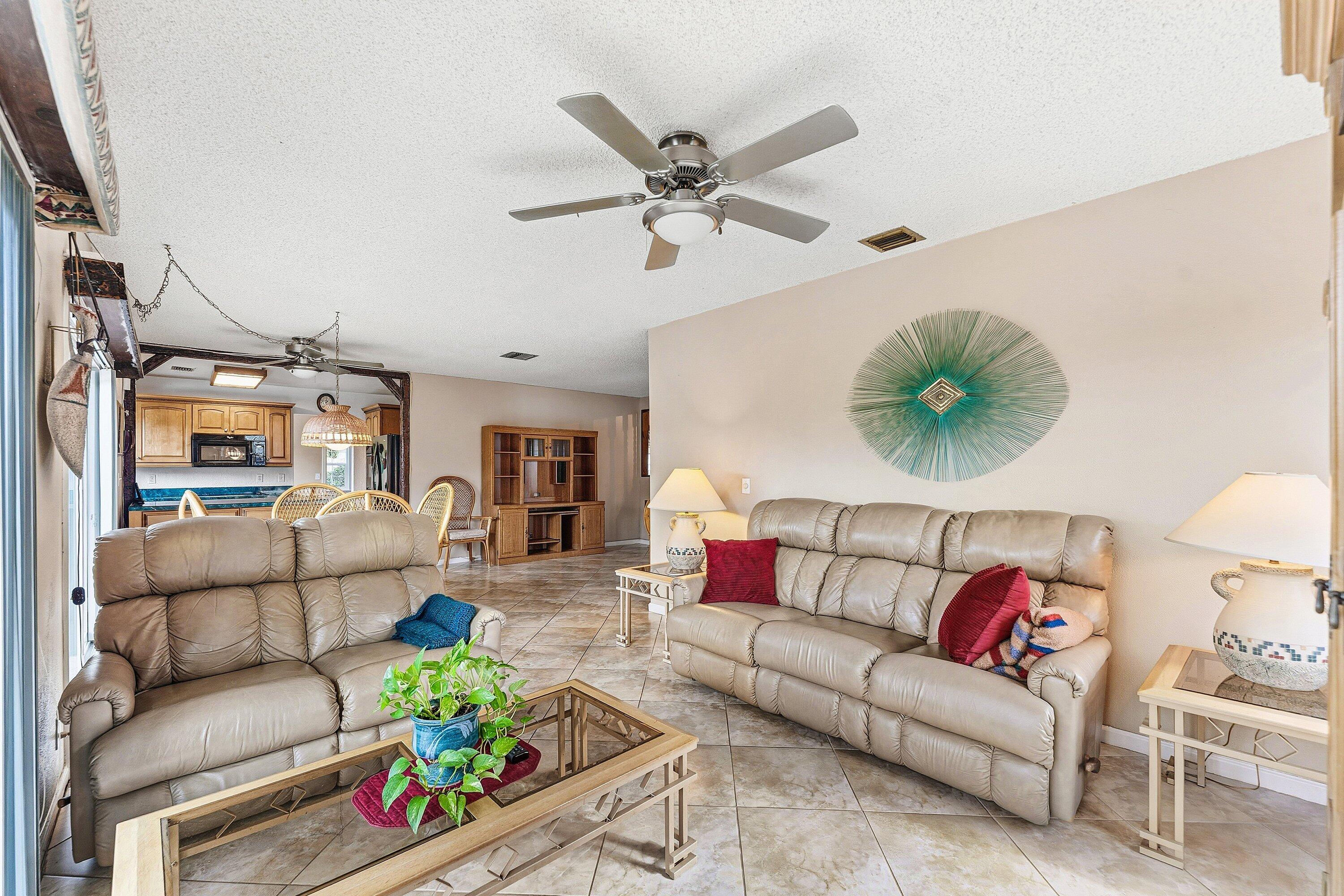 This non HOA single family home has an amazing backyard. One of the largest fenced in lots in the area plus it has an oversized pool. Long driveway, 2 car garage, AC 2022, Impact windows and doors is the start of what this home offers. This home was designed as a 3 bedroom but is currently sitting with 2 bedrooms and a bonus room. This home has many options with the floorplan. Tile floors throughout living area. Master ensuite bathroom has an updated vanity and shower. Kitchen cabinets are a gorgeous dark wood which matches the wood trimming in the home. The kitchen area oversees the pool and large backyard. Do not miss out on this home with the perfect backyard adorned with lush palm trees and landscaping. The No HOA allows for trucks, boats, trailers, and commercial vehicles
