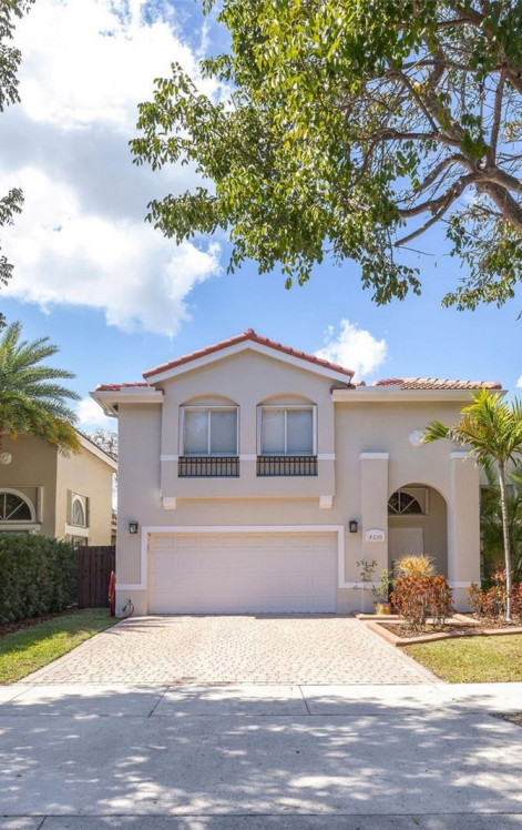 Presenting 4650 NW 109th Court, an exceptional waterfront residence set in a peaceful, elevated position toward the rear of the gated and highly sought-after Doral Meadows community. This true 4-bedroom, 2.5-bath home offers tranquil water views, quality upgrades, and a sense of privacy rarely found. The rear exposure overlooks open water, filling the living areas with natural light and showcasing beautiful sunset views. The layout blends formal and casual spaces with an effortless flow, ideal for both entertaining and everyday living. Interior features include travertine flooring, quartz kitchen countertops, generous cabinetry, and walk-in closets. The primary suite overlooks the lake and features a renovated bath (2021), creating a private retreat within the home. Recent improvements include a new roof (2024) with 10-year warranty, new patio pavers (2025), fresh interior paint (2024), a new refrigerator (2025), washer and dryer (2021), hurricane accordion shutters, impact doors and garage doors, an irrigation system, and A/C under maintenance contract. Parking accommodates up to six vehicles with a two-car garage and extended driveway, a notable advantage in the community. Residents enjoy gated entry with ADT monitoring and access to a community pool. The location offers walkability to A-rated schools, parks, and playgrounds, and is just one mile from Whole Foods, with convenient access to International and Dolphin Malls.