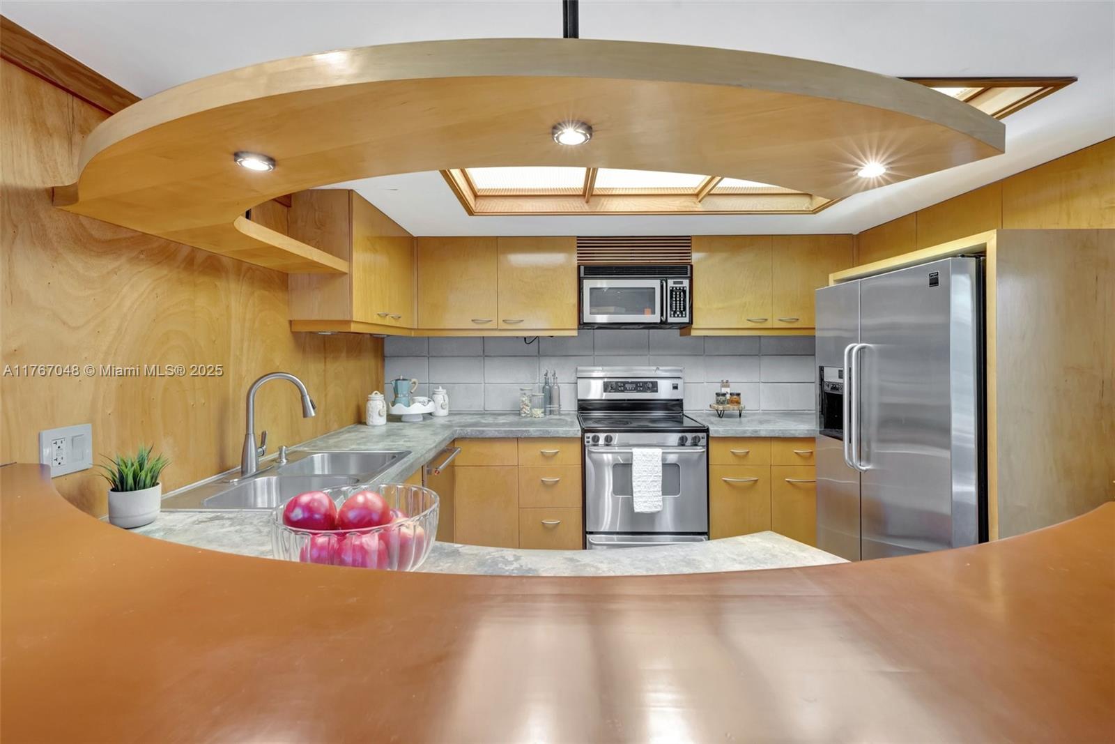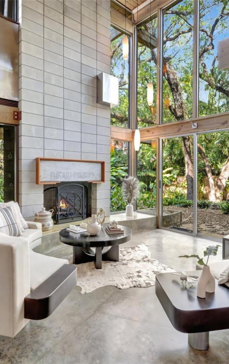 "The Fox Den," an architectural masterpiece by Scott DiStefano, blends contemporary design with organic materials in the Frank Lloyd Wright tradition. This 4-bedroom, 3.5-bath home sits on a 10,500 sq ft wooded lot in Riverland Woods. Features include exposed concrete, timber framing, copper fascia, and stainless steel elements throughout. The versatile floor plan offers a loft space and attached studio/office with separate entrance. Custom built-ins and strategic windows frame views of the landscaped grounds. Distinguished by galvalum cladding and corrugated metal, the home boasts concrete floors and appliances. Located minutes from downtown Fort Lauderdale, this internationally recognized residence represents organic contemporary architecture at its finest.