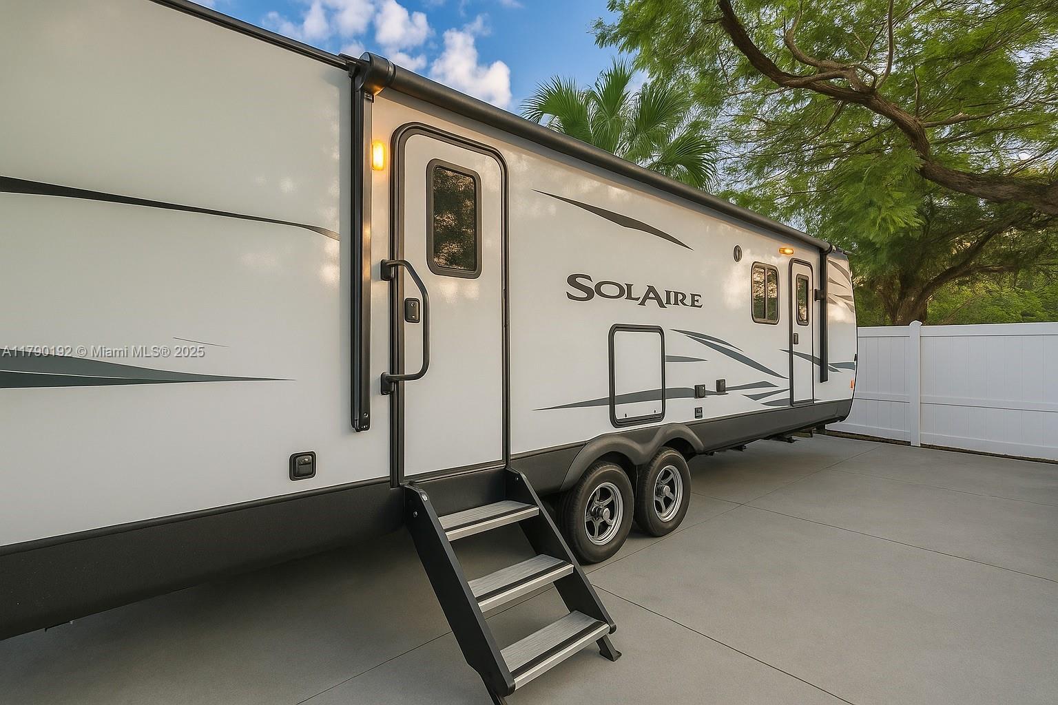Welcome to this beautifully updated home in South Middle River. This versatile home features three spacious bedrooms, including an in-law suite with a private entrance and option to connect to the main house. Additionally, a fully independent 1/1 RV at the rear adds extra flexibility. The modern kitchen is equipped with custom cabinetry, quartz countertops, and stainless steel appliances—perfect for any culinary enthusiast. The large master suite includes a custom-built closet, while the fenced patio provides privacy by separating the main home from the RV. Recent upgrades include a new roof (2024), new flooring, reinforced crawl space, EV charger, and pre-installed Jacuzzi connections (electric, plumbing, and concrete slab). A rare find in a prime location!