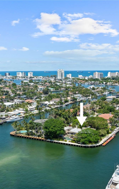 This one of a kind, Intracoastal trophy point lot estate in highly desirable Harbor Beach features up to 8 bedrooms, 6.5 baths, 300+/- feet of waterfront with spectacular views and one of the best docks in Fort Lauderdale. The marble clad residence plus guest house/captain’s quarters offers super yacht dockage for a 100+ vessel on the south side while preserving wide water Intracoastal views on the west side. 5 minutes to Port Everglades Inlet. Mature banyan trees and tropical landscaping surround the property and give it a private, resort like feel. The living areas flow seamlessly to the pool and outdoor living spaces and the property is ideally suited for large scale entertaining. The primary suite features 2 bedrooms and spectacular Intracoastal views.