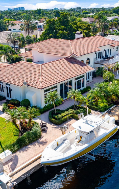 This fabulous 5 bedroom and 4.1 bath estate is on a gated double lot. With 170 feet on the water. Built in 1990 with volume ceiling throughout. Gourmet kitchen with Sub Zero refrigerator and freezer. If you love to entertain you will love this open floor plan. All hurricane impact windows and doors throughout. This home has two family rooms and two fireplace's. You can use one side of the home for just the children or use as a in laws quarters. Beautiful private office is on the main level. Private Master bedroom suite, is on the second floor, over sized walk in closet and fireplace. luxurious Master bathroom with sauna. Enjoy beautiful views of the intracoastal from balcony. 20,000 lbs boat lift, Summer kitchen bar, salt water heated pool and a 4 car garage.