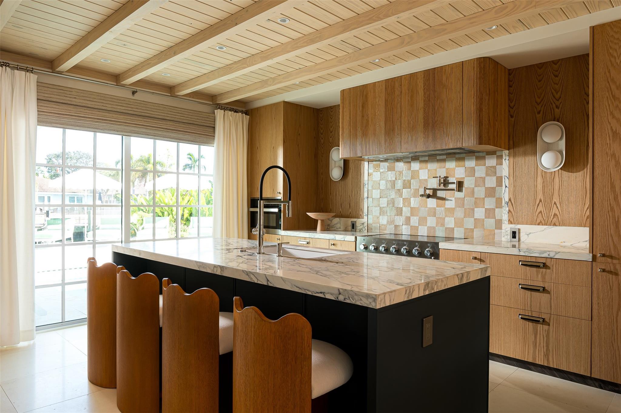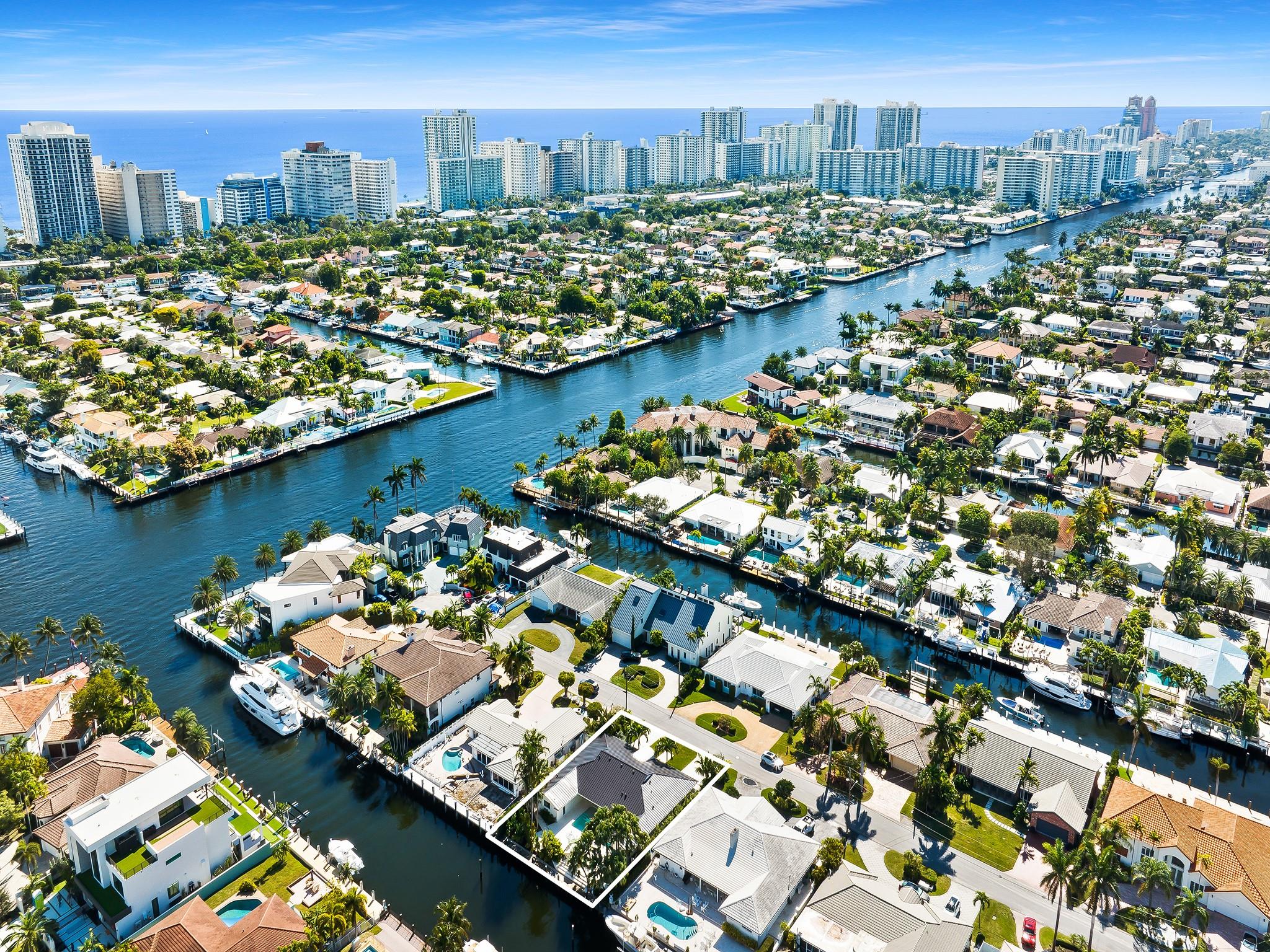 Modern Luxury best vacation home + home of the year winner, a true waterfront gem in highly desirable Coral Ridge offers 85’ of deepwater access with no fixed bridges. Virtually a new build, this single-story residence was designed by Anna Zinkovskaya to perfection. Step into a stunning living space featuring a soaring 14’ pitched ceiling, topped with a brand new metal roof. The chef-inspired kitchen boasts top-of-the-line appliances, while the outdoor space is an entertainer’s dream w/ an XO summer kitchen, shaded Baja shelf/dining space and lush landscaping for privacy, all with breathtaking water views. Luxury finishes include marbles, fixtures & finished closets. Partially furnished from RH, CB2, and more. Minutes to LBTS, beaches, parks & restaurants, your tropical paradise awaits!