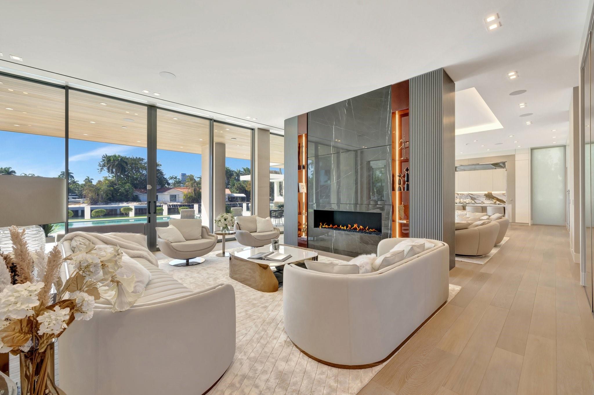One of the newest Estates to be completed in guard-house gated & private Surf Club, Harbor Beach ! 110 ft deep-water dockage, open panoramic views on wide turning basin & premier Del Lago address. Stunning Coastal Modern collaboration by Randall Stofft/Sarkela Corp/professional interior design & furnished by Italian D-Editors. Built to highest custom standards with extraordinary detailing & materials throughout. Floorplan focus on open concept living, Chef's kitchen & separate prep/caterers kitchen, expansive club/media room, elegant formal dining area & first level VIP suite. Ultra-luxurious primary suite with dual spa-style baths & separate completed custom closets. Spacious bedrooms & second VIP suite, incredible views from many rooms, private resort style pool. Lift compatible garages.