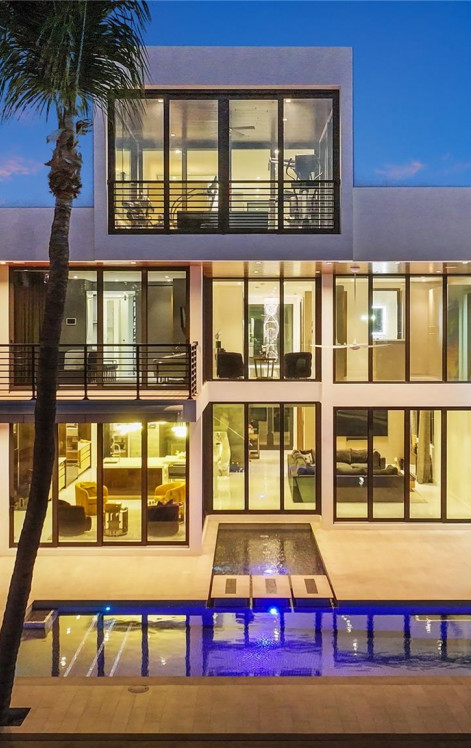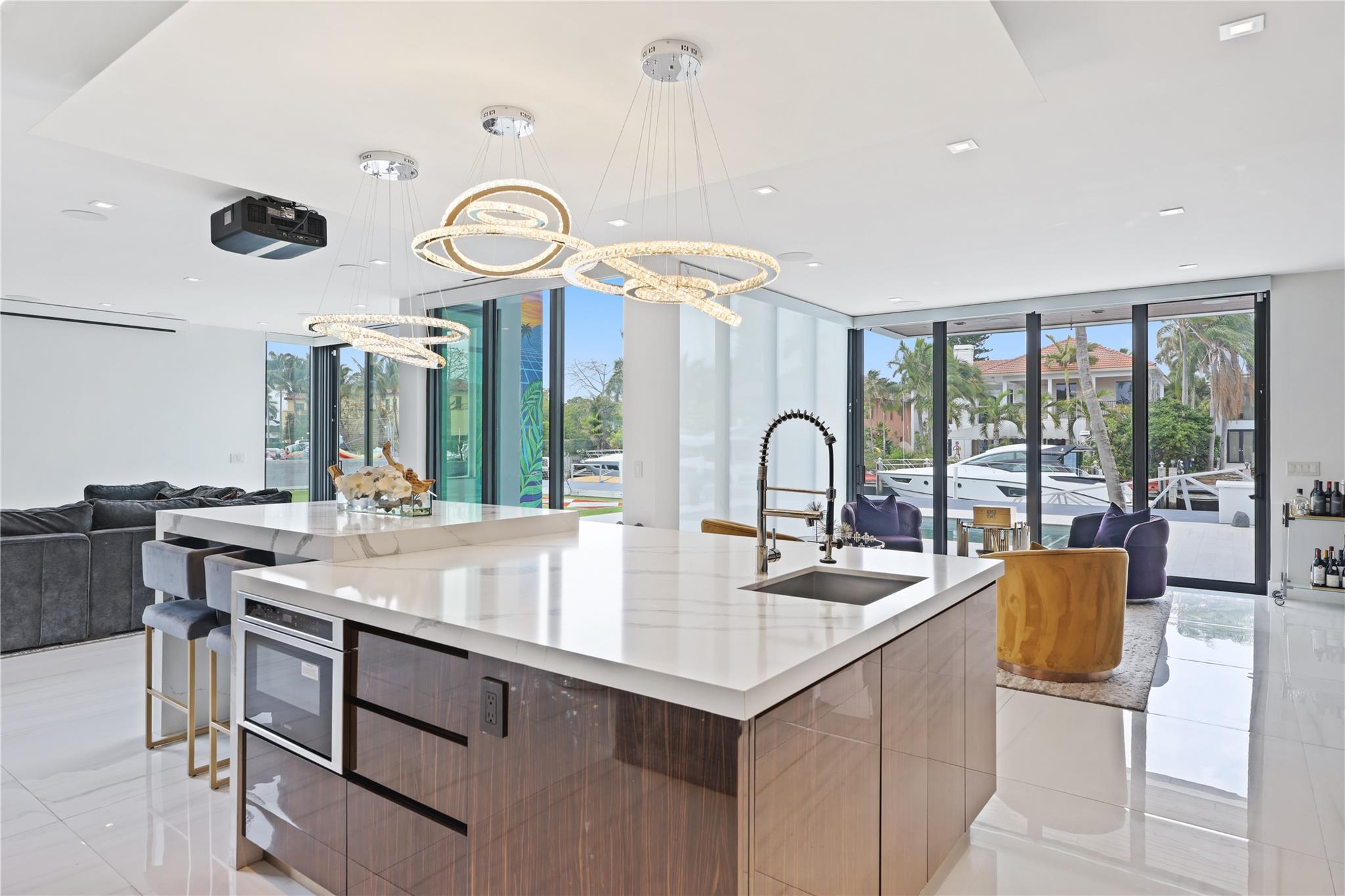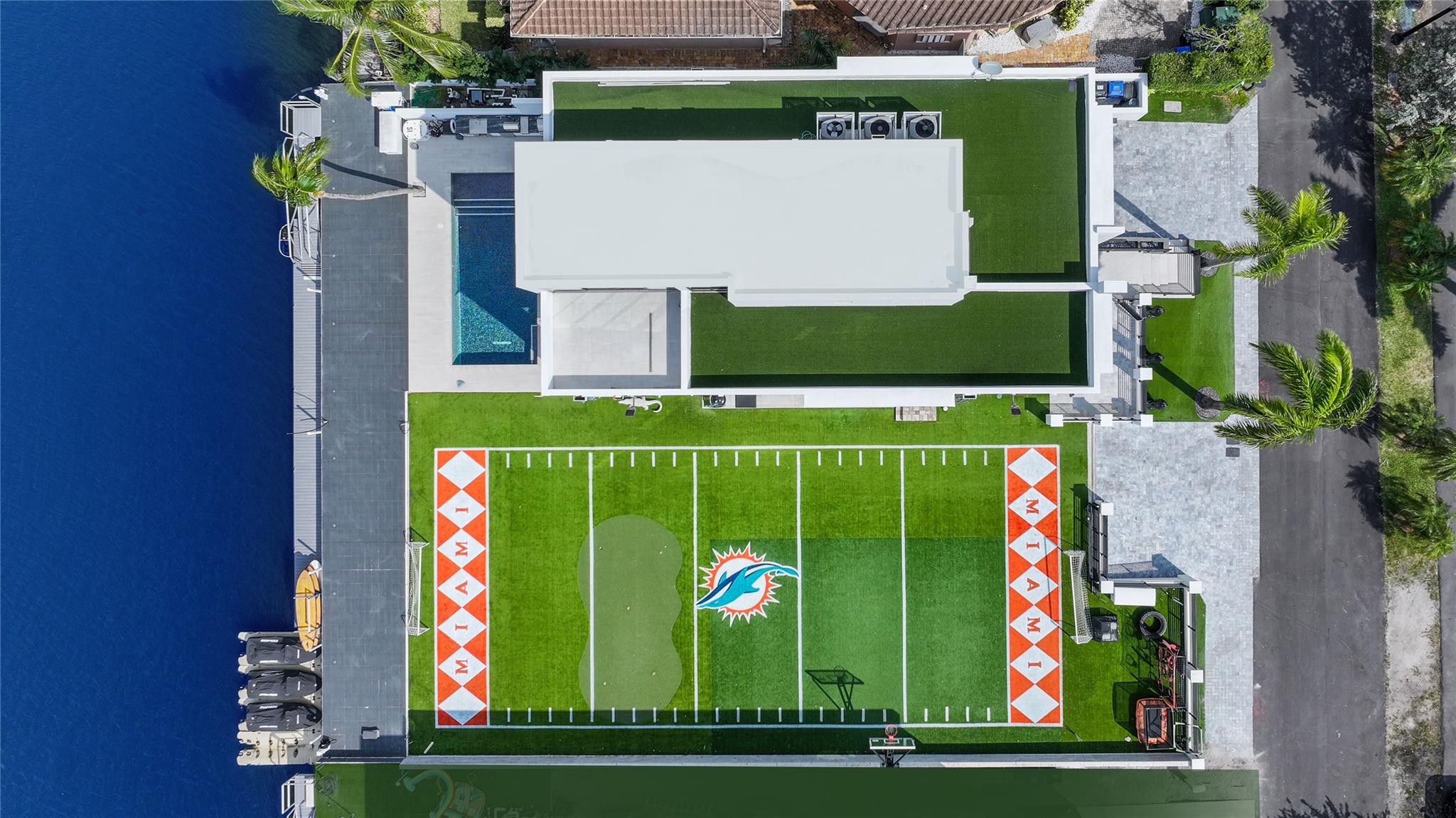 This modern estate on the Las Olas Isles offers 100’ of waterfront on a wide canal with ocean access & no fixed bridges. Spanning 2 lots, the property features a one-of-a-kind field for football, soccer, putting, etc. The home showcases floor-to-ceiling glass with stunning views & includes an elevator for easy access to all levels. The 3rd floor features a wet bar, enclosed gym, open terrace & spectacular views of downtown Fort Lauderdale. The open-concept layout includes a gourmet kitchen with an oversized island, perfect for entertaining & seamless indoor-outdoor living. Fully integrated with Control4 smart home technology, the home also features a resort-style pool, summer kitchen & dock. Plenty of parking with a 2-car garage & 2 driveways. Prime location near shops, dining & beach.