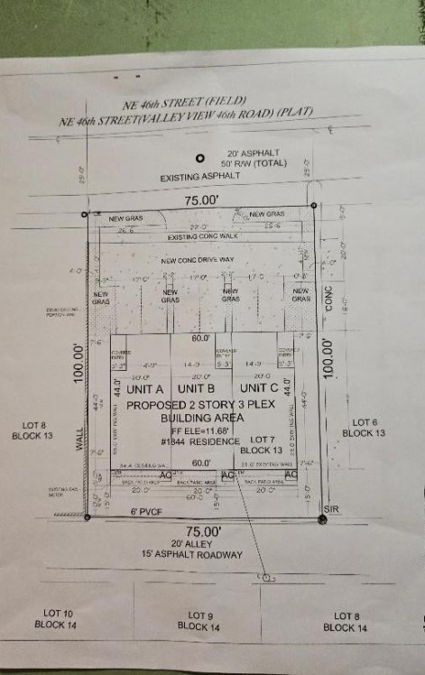 Using 3 existing Walls' & Slab for the new construction of a (3) Three Unit (2) two story, 1760 square feet, gross plans, negotiable, Townhomes with attached Garages.