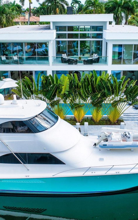 Chic New Construction 7-Bedroom Residence Sited on 85' of Deepwater in Las Olas Isles. Defined by clean lines & a bright open ambience offering water views from every major room, this Las Olas Modern 8,116 ± total sq ft waterfront home encapsulates a sophisticated elegance for a ‘Now’ style of living. Dramatic two-story foyer, faced by wrap-around walls of glass, flows out past the elevator vestibule & main living room to a true Chef's kitchen & waterside formal dining room. Opposite the private loggia is an intimate club room featuring impressive book matched stones, wood paneling, and large-format porcelain tile floors complete the first level. Beautiful white-oak wood floors and integrated LED wall displays lead to a huge upstairs Master Suite, 4 VIP Bedrooms, & a Sunset facing terrace.