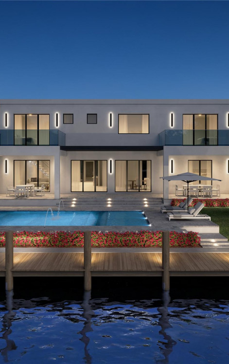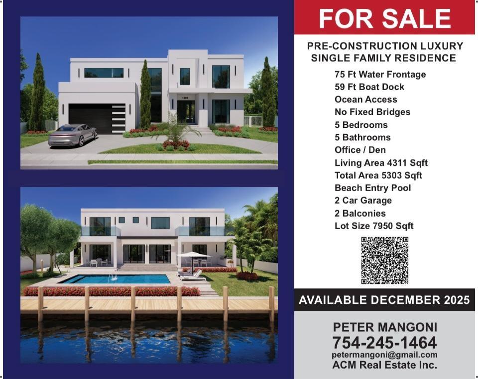 Welcome to your future dream home that will be completed in December 2025. This spectacular pre-construction waterfront home is designed for elegant coastal living. This five bedroom residence, plus a dedicated office/den will offer over the top comfort and modern sophistication. Prime waterfront lot built per the new elevation requirements with direct ocean access and no fixed bridges, this property is a boater’s paradise. Inside the open concept living spaces it will flow seamlessly into a the kitchen outfitted with top-tier appliances. Each of the five spacious bathrooms will be crafted with detail. The expansive sliding glass doors invite indoor and outdoor living to an opening to a resort style backyard with a pool, summer kitchen and water views. The private dock up to a 75 ft boat.