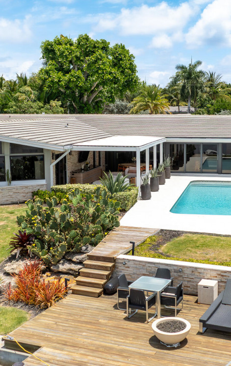 Situated on the Middle River, in the charming neighborhood of Coral Ridge, this home is a one-of-a-kind, mid-century modern masterpiece. The original design by noted architects, Dan Duckham & Chester Trowbridge (1960) was meticulously, restored from the ground up in 2018, embodying a design nod to Frank Lloyd Wright. This single-story paragon features an asymmetrical roofline, expansive glass, and a seamless blend of materials for the interior and exterior construction. Natural light abounds and the unique design details are ubiquitous throughout the dwelling. The thoughtful renovation was completed with impact windows/doors, chef-grade appliances, Italian porcelain tile, and stacked stone, and has enjoyed a high level of care and maintenance since. (continued)