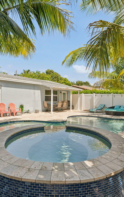Incredible 2 for 1 deal on this 3bed/2bath property. This property has a unique layout with an Owner's Suite (1bd/1ba) with a kitchenette and its own backyard in the back and the main house (2bd/1ba) in the front with a true Smart Heated Pool setup. These two separate entrances give you the freedom to occupy one and rent the other or turn both into income producing units as this house is already AirBnb Ready. With newer roof, newer updated plumbing and newer central A/C, all major ticket items have already been taken care of. The house also features an open concept floor plan with laminate and tile flooring throughout, creating a modern living space with an in-kitchen that has a huge island to sit 3. With a quick 3 minute drive, this home is close to Wilton Downtown, and the Beach.