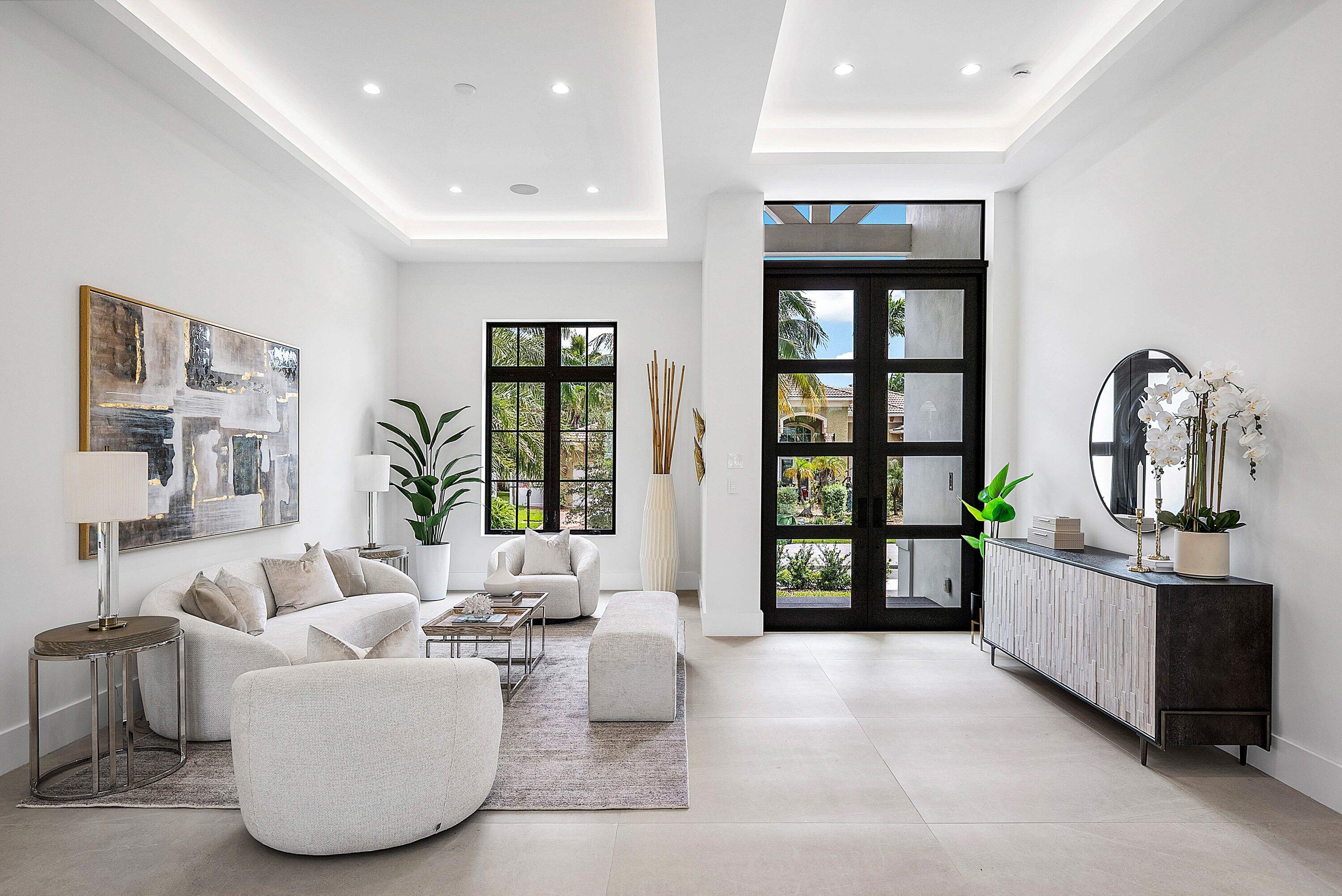 Welcome to 2609 NE 27 Way - coastal luxury in Coral Ridge. This newly constructed home embodies the essence of indoor/outdoor living. With an expansive 30ft retractable glass door leading to a backyard oasis, you'll enjoy the pool, spa and covered patio with automatic screens for ultimate comfort and relaxation. The kitchen has Thermador appliances, a spacious walk-through pantry and a stunning 11ft island. The first floor offers 2 living rooms, dining area, an ensuite bedroom/office/gym, laundry room and cabana bath. The 1st floor primary suite has direct pool access and a luxurious bathroom with a double shower and soaking tub. Ascend to the 2nd floor entertainment loft, wet bar, balcony, laundry room & 3 additional ensuite bedrooms. CRESTRON smart home system. Move-in ready!