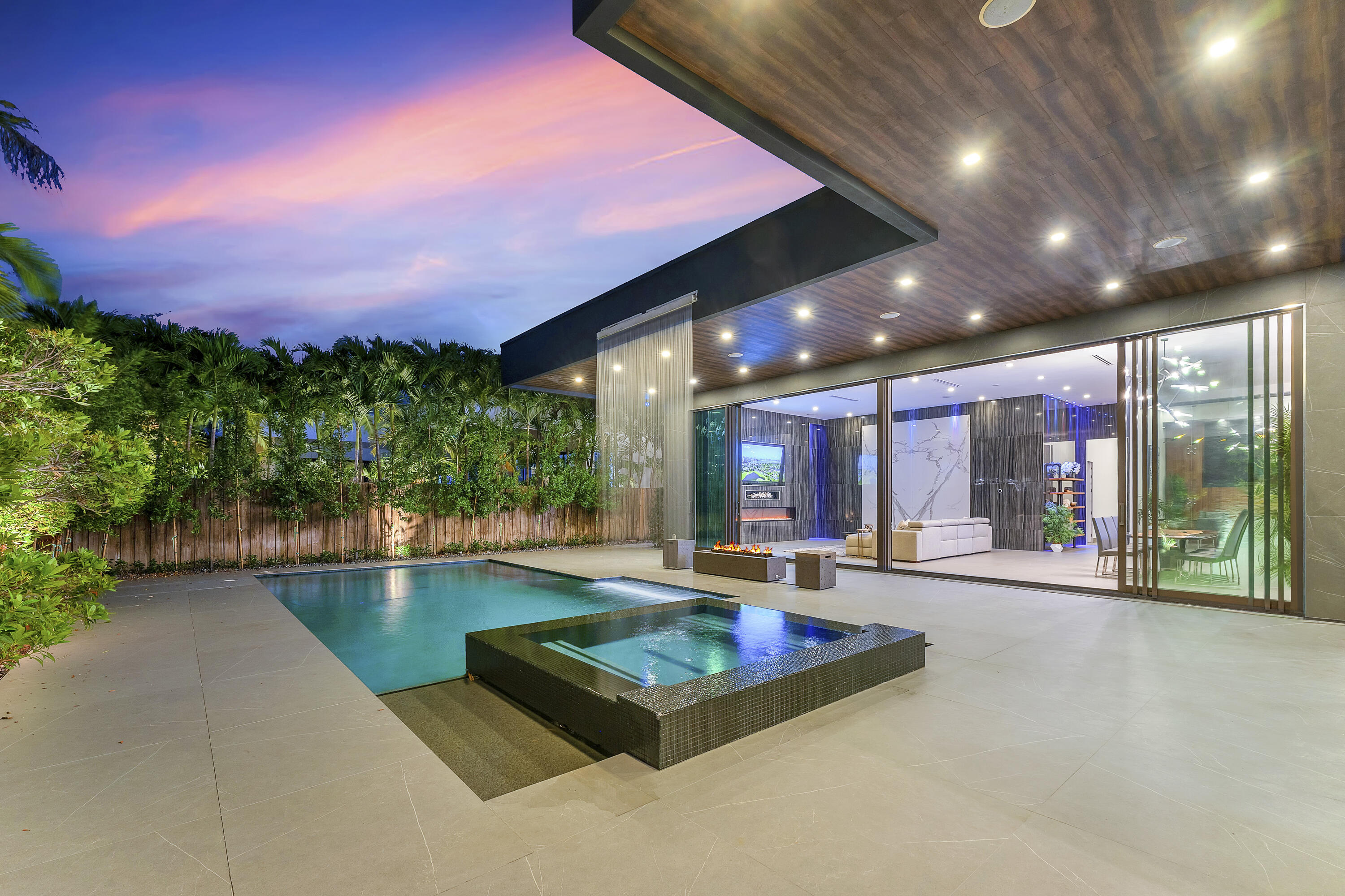 Welcome to the ultimate East Fort Lauderdale gem. This gated estate sits on an oversized lot within close proximity to the intracoastal & beach. This expansive ranch-style home, built by the renowned Prestige Homes, features an ultra-sleek design with meticulous detail and top-tier finishes throughout; completed with imported porcelain tile, bookmatched wall slabs, premium lighting, and a fully integrated Smart Home. The chef's kitchen shines with Sub-Zero appliances, and the spacious open floor plan is complemented by high ceilings and oversized custom doors. This home consists of five bedrooms, six bathrooms, an office, plus a large finished attic/storage room under A/C. Complete smart home featuring smart lighting, A/C, music, pool, gates, security cameras, and a fully finished garage
