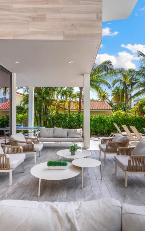 Set within the gated enclave of Golden Isles, this modern residence offers 6 bedrooms, 6 full and 1 half bathrooms across 5,560 SF of interior living on a 12,750 SF lot with 85 feet of canal frontage and direct ocean access with no fixed bridges. Built in 2019, the home delivers a seamless blend of volume and contemporary design, anchored by soaring double-height ceilings and expansive walls of glass that frame the water beyond.
