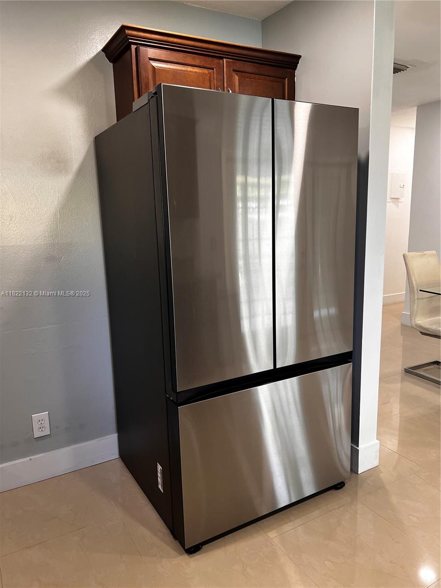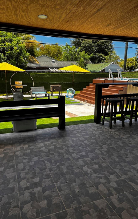 Beautifully maintained 3-bedroom, 2-bath single-family home combining comfort and style. Features a bright open-concept layout with marble-look tile floors throughout. The updated kitchen offers rich wood cabinets, granite countertops, stainless steel appliances, and a built-in beverage cooler. Enjoy a spa-inspired bathroom with sleek finishes, rainfall shower, and frameless glass. The backyard is a true retreat with a covered patio, BBQ area, and an above-ground pool with sun deck, all surrounded by low-maintenance turf and tropical landscaping. Recessed lighting, modern fixtures, and a spacious driveway with room for a boat or RV add to the appeal. Conveniently located near highways, shopping, and schools—perfect for relaxing or entertaining!