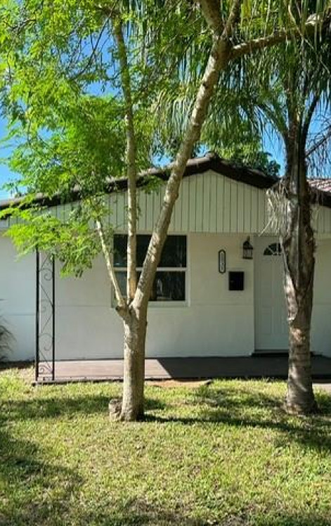 Beautifully newly remodeled 3-Bedroom / 2-Bathroom home offering over 1,200+ Sq Ft of total living space, designed with modern style and flexible living in mind. Step inside to a stunning open-concept layout featuring porcelain tile floors throughout, recessed lighting, and abundant natural light. The gorgeous chef’s kitchen is the heart of the home, showcasing quartz countertops with a waterfall edge, sleek cabinetry, and stainless steel Samsung appliances — perfect for entertaining and everyday living. The home offers a desirable split floorplan, with two bedrooms in the front and a private third bedroom with its own entrance, creating an excellent opportunity for guest quarters, in-laws, or potential dual-income use. The primary suite includes a private bathroom and laundry hookups for added convenience. Additional upgrades include new impact windows and sliding glass doors, a new electrical panel, modern Melrose interior doors, and recessed lighting throughout.