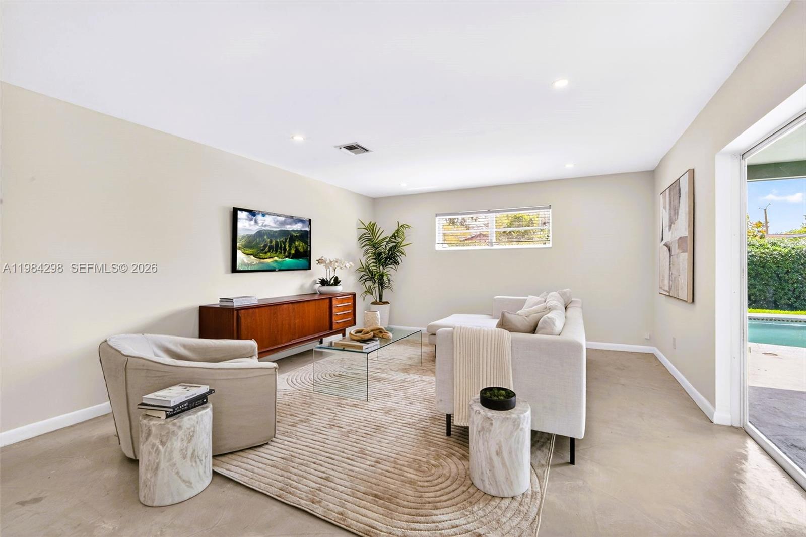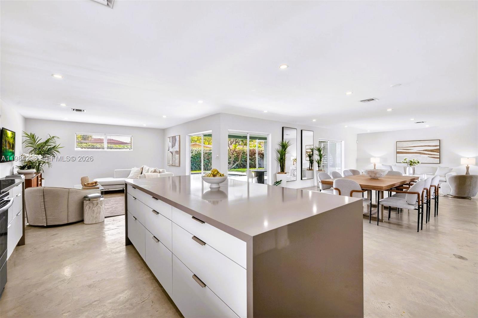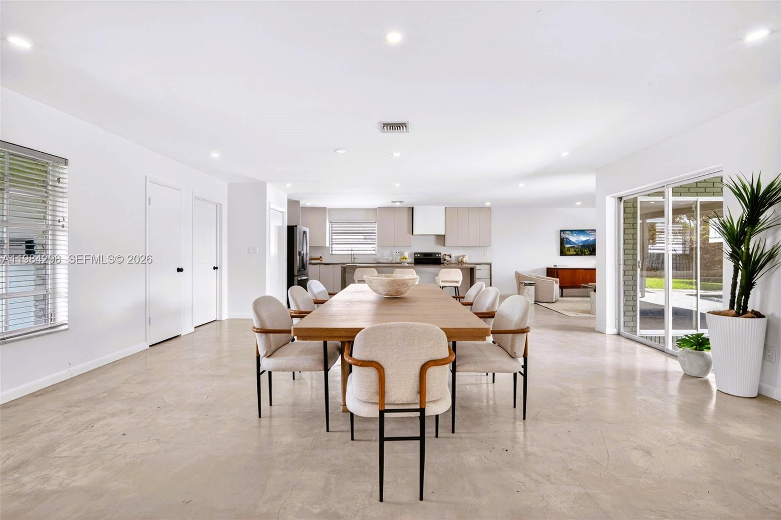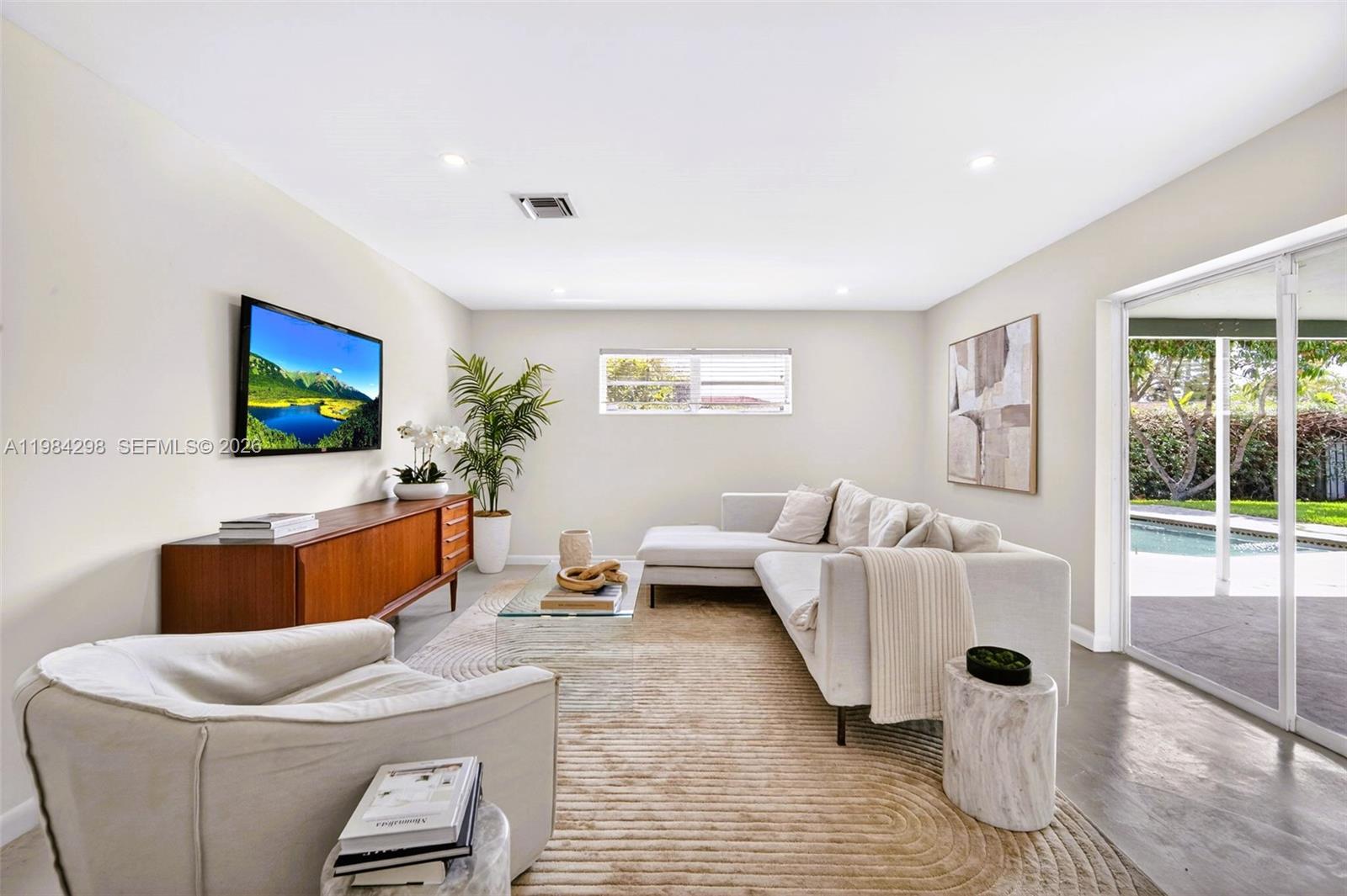 Beautifully updated Hollywood Hills pool home offering over 2,200 square feet of open living space in one of the most centrally located sections of the neighborhood. This spacious 3-bedroom, 2-bath residence features a wide-open layout with expansive living and dining areas that flow seamlessly into the kitchen and out to the pool, creating an ideal home for both everyday living and entertaining.