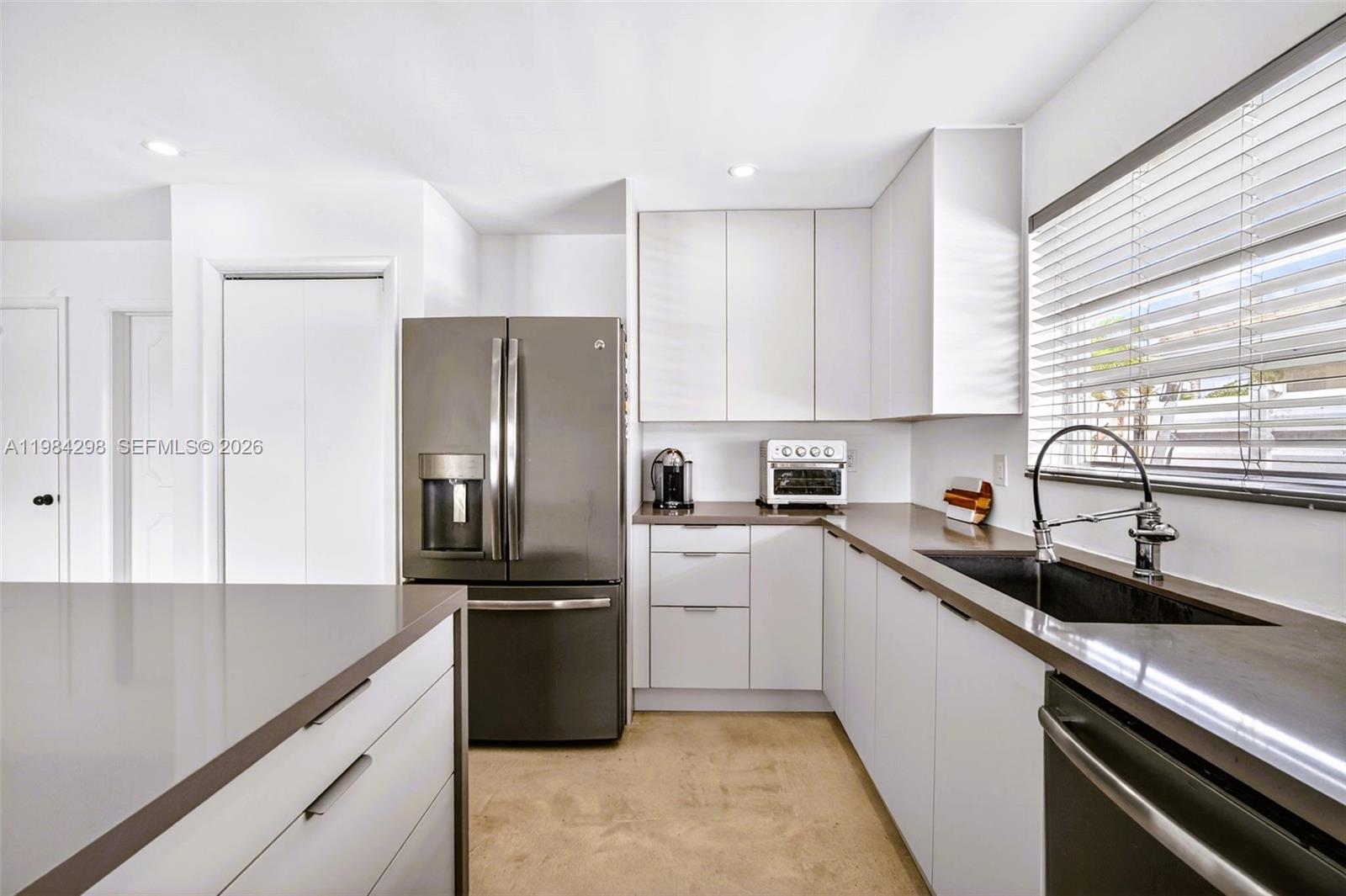 The exterior has been refreshed with new sod, a newly installed sprinkler system, and trimmed landscaping. The private backyard offers a pool and two mature mango trees, creating a true South Florida retreat.