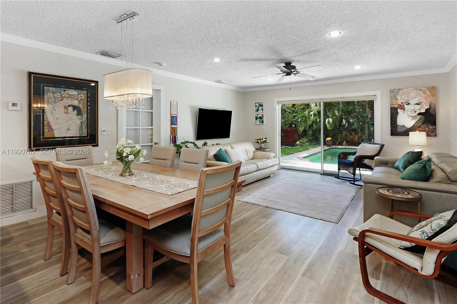 Charming 4-bedroom, 2-bath home offers a thoughtful layout with a spacious family room, cozy den/office, and a welcoming front room—ideal for both relaxing and entertaining. The beautifully upgraded rear extension adds approx. 800 sq ft of comfortable living space, while the 250 sq ft side screened in patio provides the perfect spot to enjoy sunny South Florida days. Original hardwood floors add warmth and character to the front of the home, blending seamlessly with modern upgrades. Take a dip in the impressive 15x34 pool, enjoy dual-zone A/C for year-round comfort, and appreciate newer essentials like a 2-3 year-old water heater. This home truly offers the best of classic charm and updates, just minutes from the beach, vibrant downtown, and Fort Lauderdale-Hollywood International Airport!